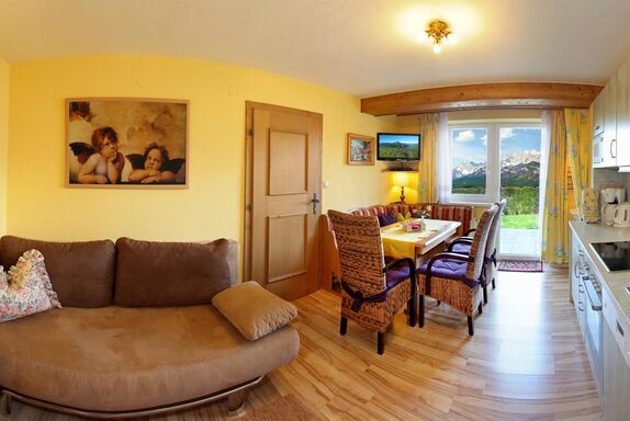 Das Appartement Kalkstein für 3 - 7 Personen ist besonders großzügig gestaltet und dadurch bei größeren Familien mit Großeltern oder Freunden sehr beliebt.