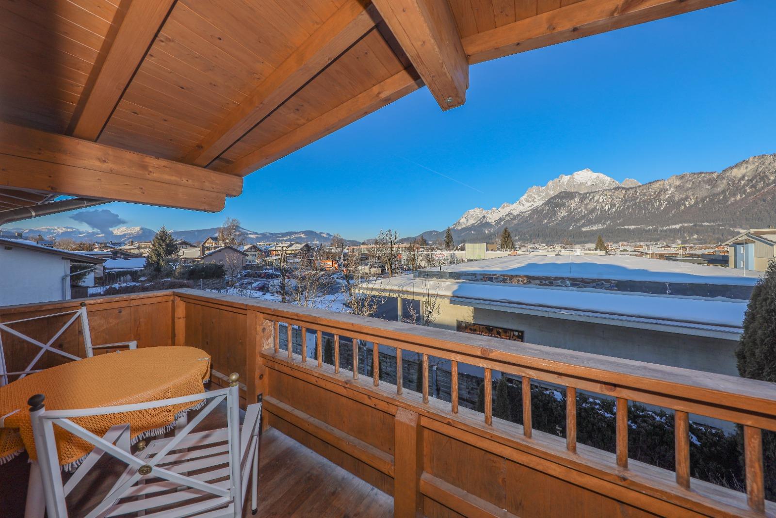 Dieses Appartement verfügt über einen eigenen Balkon mit Blick auf das Kitzbüheler Horn oder den Wilden Kaiser, Badezimmer und TV.