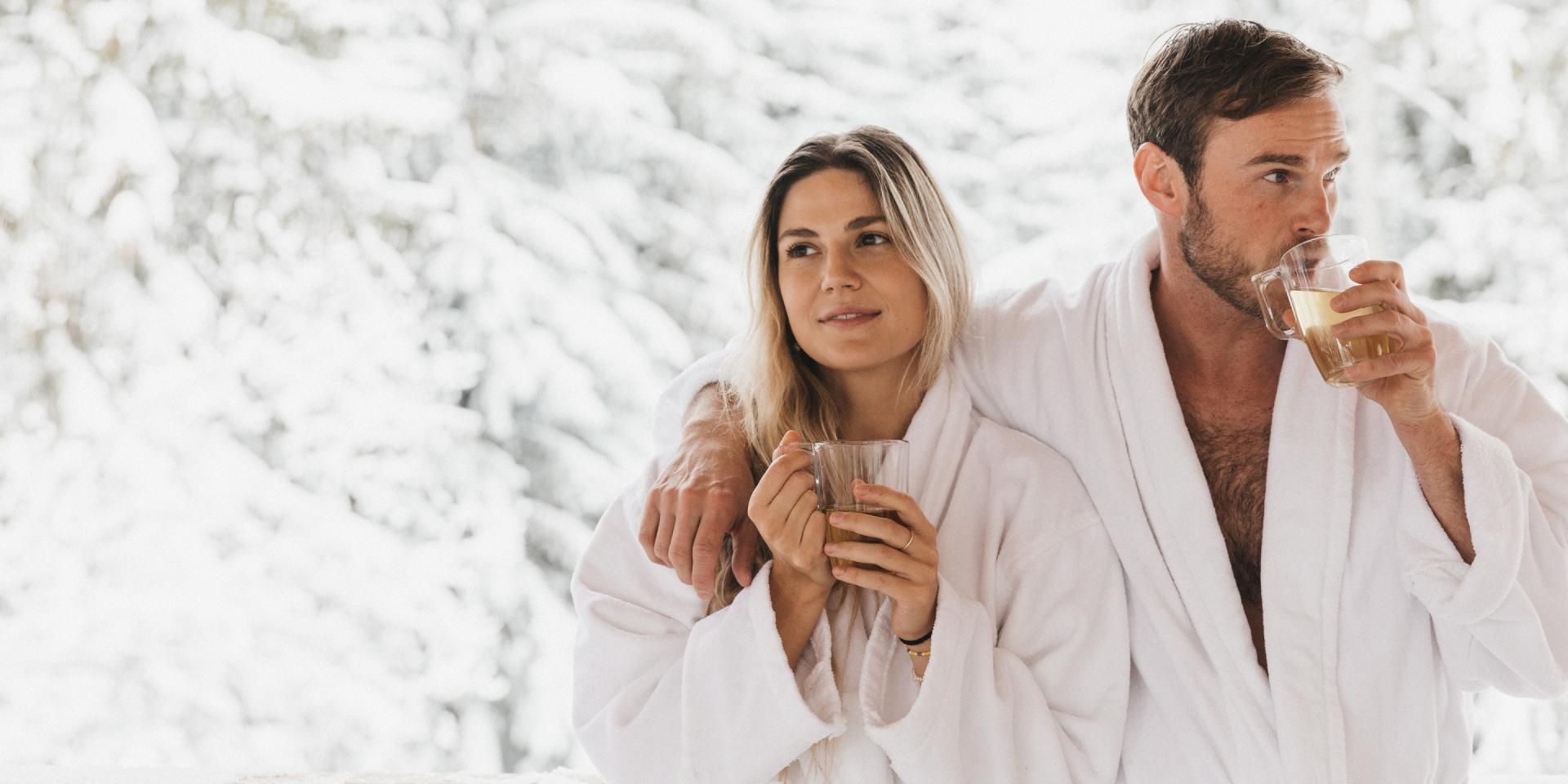 • Wellnesstasche inkl. Bademantel, Badetücher & Badeschuhe