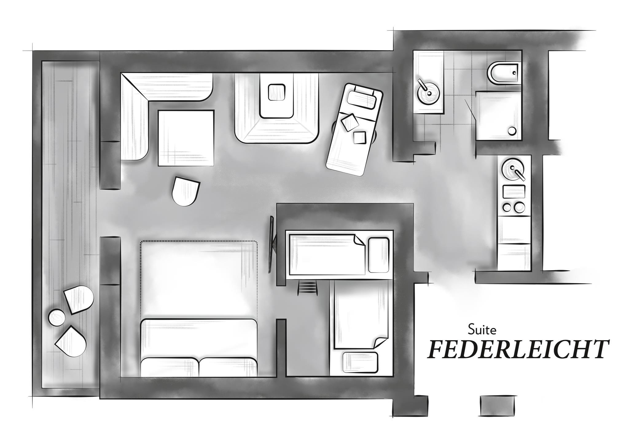 Federleichte Urlaubsmomente in unseren kuscheligen neu, renovierten Suiten genießen. Unsere Suite Federleicht genug Platz für 4 Personen und ist auch für verliebte Pärchen der perfekte Rückzugsort für traute Zweisamkeit.