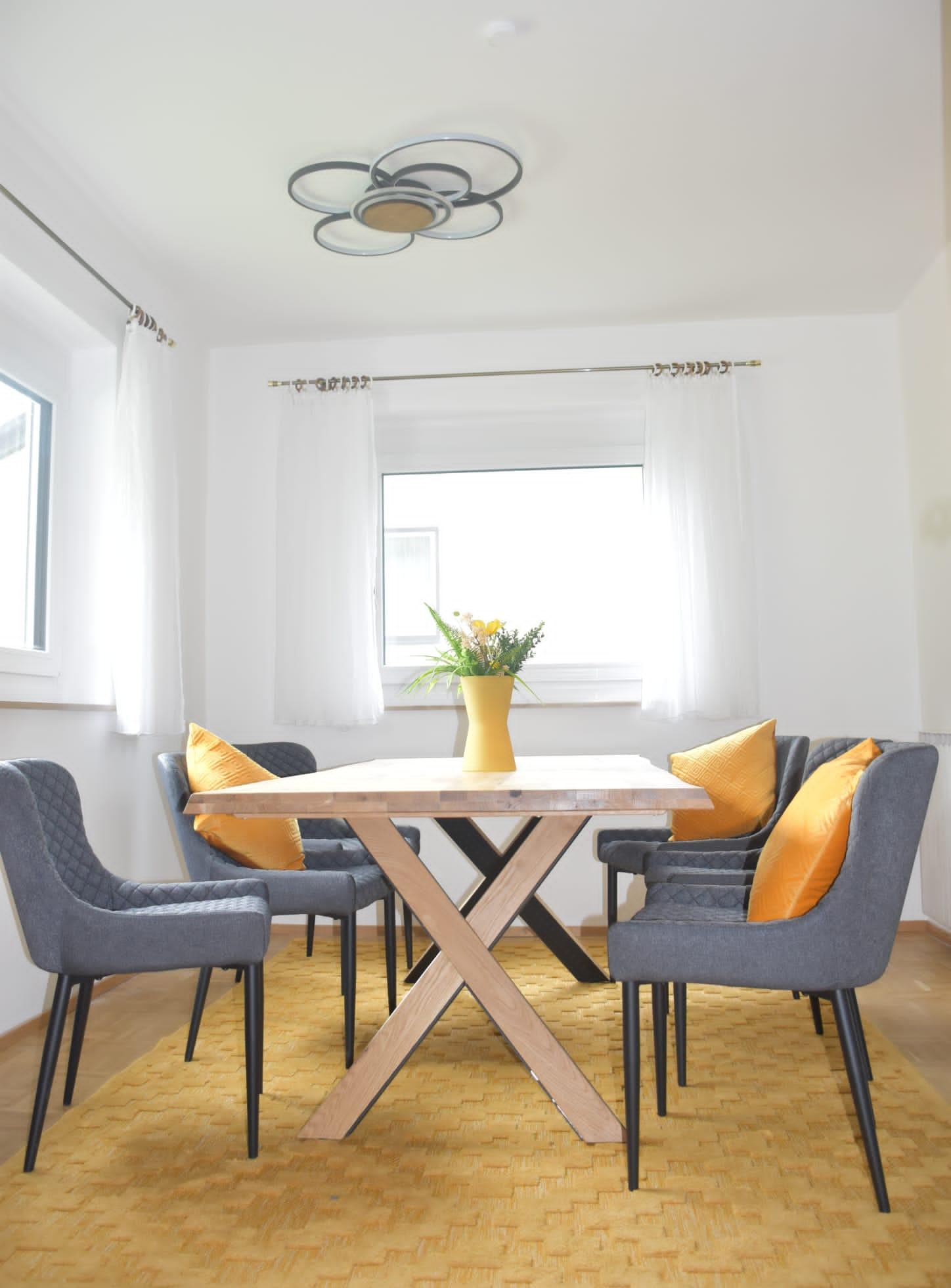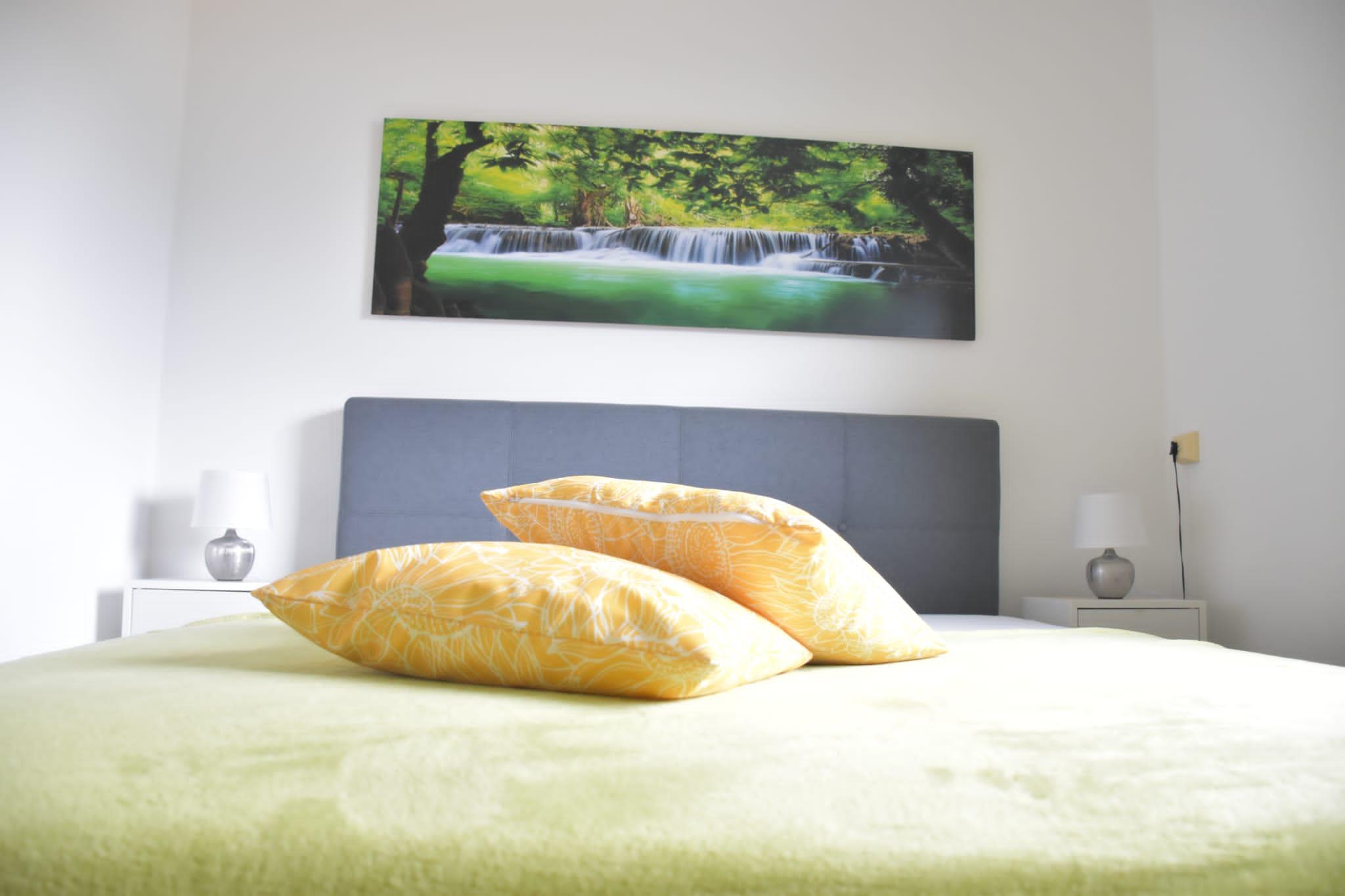 Ferienhaus Julia 140 m ² - komplett neu renoviert: 3 Schlafzimmer mit jeweils 3 Doppelbetten, ein Zimmer mit Balkon, keine Teppichböden,1 Badezimmer mit barrierefreier Dusche im OG, 2 WCs separat, jeweils eines im EG und OG. Neu eingerichtete Küche, separates Esszimmer, separates Wohnzimmer, kleiner Garten, große Terrasse mit Grillmöglichkeit, Parkplatz direkt vor dem Haus. Haustiere sind leider nicht erlaubt.