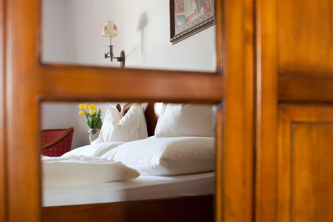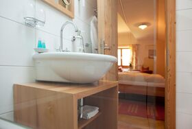Das Doppelzimmer liegt sehr ruhig mit einem schönen Blick auf die Lecher Berge. Die Einrichtung ist besonders heimelig und zeugt vom Können der Tischler aus Vorarlberg. Natürliche Materialien und und warme Farben machen das Zimmer zu einem behaglichen Zuhause für den Urlaub. Das Bad verfügt über Dusche oder Badewanne und WC und bietet allerlei praktische und schöne Details, die Ihren Urlaub angenehm machen.