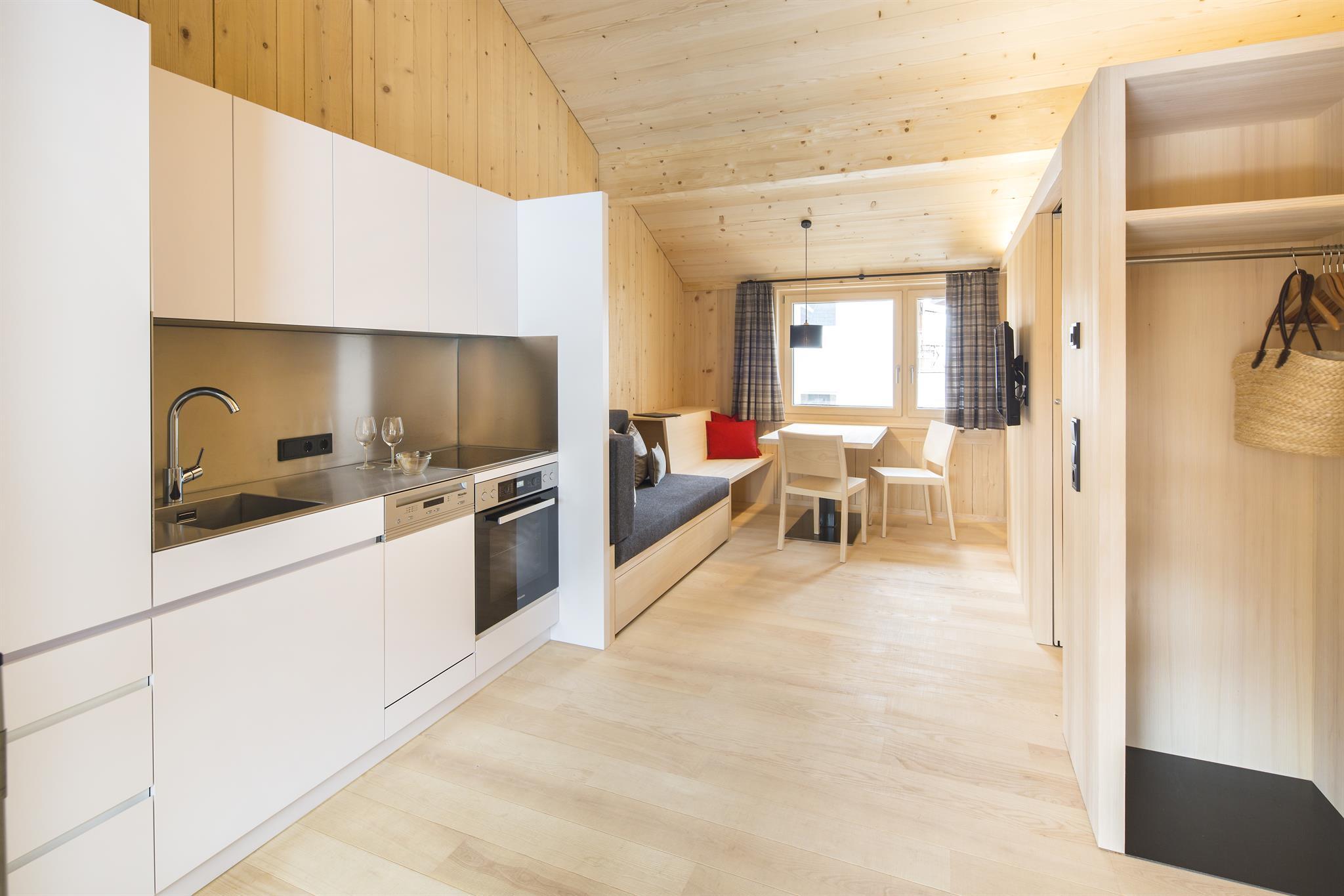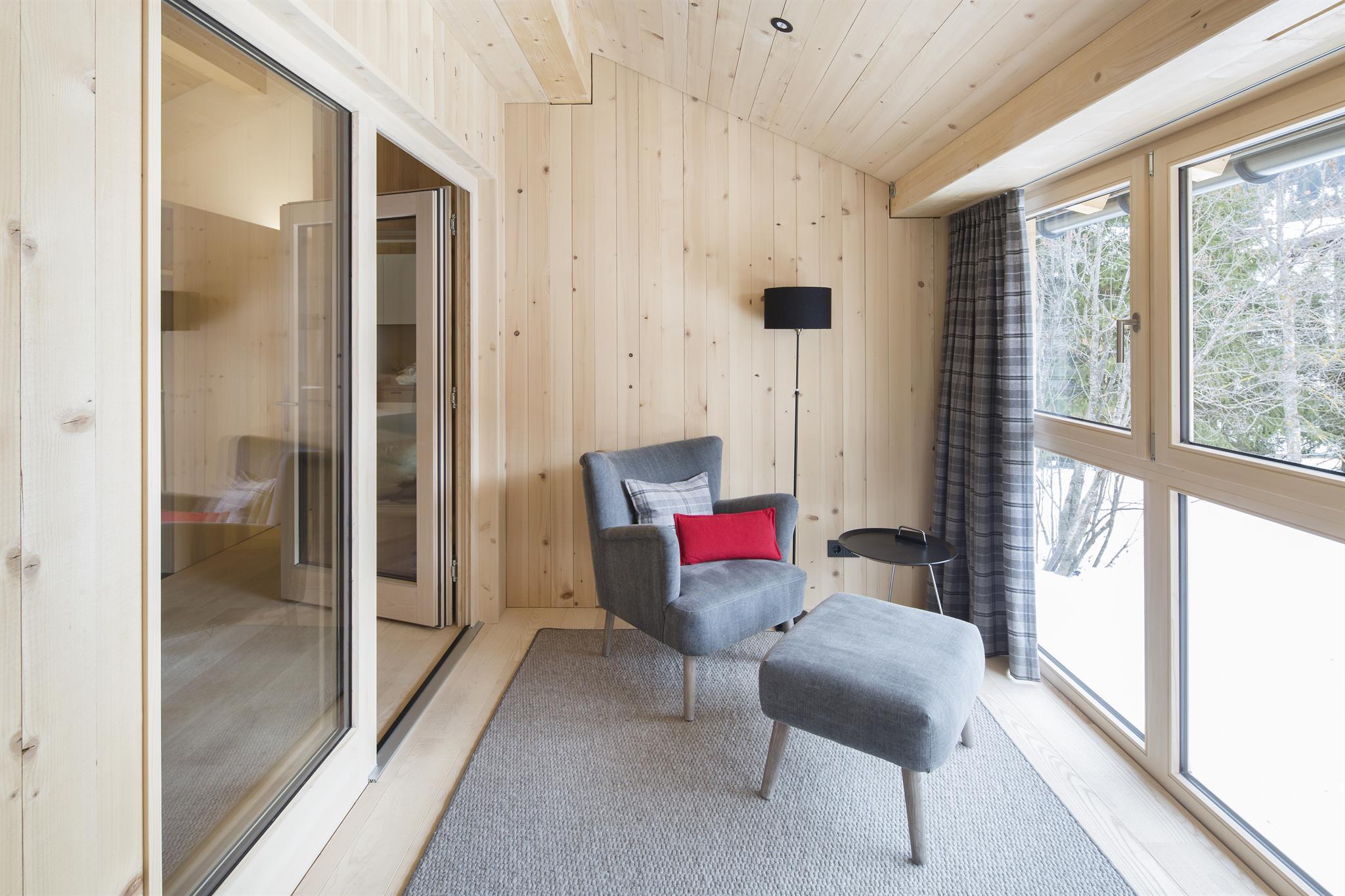 Das Alpina ist das Stammhaus der berühmten Strolz Familie. Im Jahre 2000 musste es einem schmucken Neubau in altem Stil weichen, und so wurde aus einem einfachen Bauernhaus ein feines, kleines, persönlich geführtes Vier-Sterne-Frühstückshotel. Die Gastgeber Andrea und Bruno Strolz setzen dabei auf österreichische Gastlichkeit in bestem Sinne, eine individuelle, herzliche Ansprache in familiärer Atmosphäre. Großer Beliebtheit erfreut sich die von den Gästen selber als „Gästewohnzimmer“ bezeichnete Halle mit dem offenen Kamin, in der am Nachmittag die Teestunde zelebriert und genossen wird. Etwas abseits der Hauptstraße und dennoch nur fünf Gehminuten vom Ortskern und den Skiliften entfernt, liegt das Haus am Ende der berühmten Madlochabfahrt. Die Loipe und der Winterwanderweg beginnen unmittelbar vor der Haustüre. Das Haus Alpina präsentiert sich heute seinen Gästen mit zeitgemäßem Komfort, gleichzeitig aber mit einem traditionellen, behutsam renovierten Interieur und vielen schönen Details. Alle Zimmer und Suiten im Haus Alpina sind liebevoll und individuell eingerichtet, gefallen mit warmen Farben und frischem Blumenschmuck sowie ausgesuchten Möbeln und Materialien. Großer Beliebtheit erfreut sich bei den Gästen auch die großzügige Ferienwohnung, ideal für Familien. Entspannung pur nach einem ausgiebigen Skitag oder einem Tag an der frischen Bergluft bietet nicht nur die Sonnenterrasse oder der Balkon mit Blick auf die wunderbare Bergwelt, sondern auch der Alpina-Wohlfühlbereich mit Sauna, Dampfbad, Infrarot und Ruhebereich.