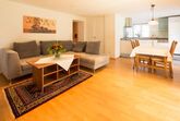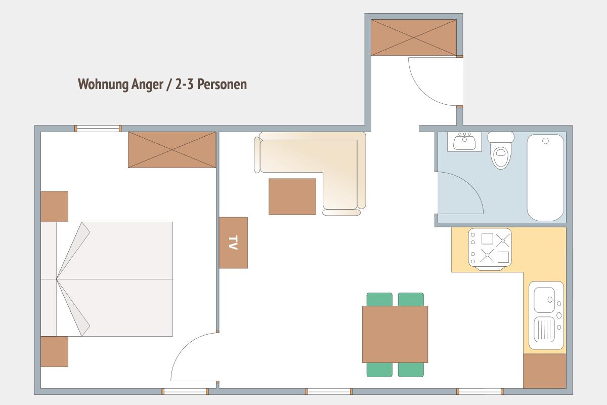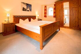Großzügige neuwertige Ferienwohnung für 2-5 Personen bestehend aus 2 Schlafzimmern mit Doppelbett, 1 Wohn-/Schlafzimmer mit Schlafcouch. Große Küche mit Esstisch. Badezimmer mit Badewanne, Waschbecken, WC sowie zweites Bad mit Dusche/WC
