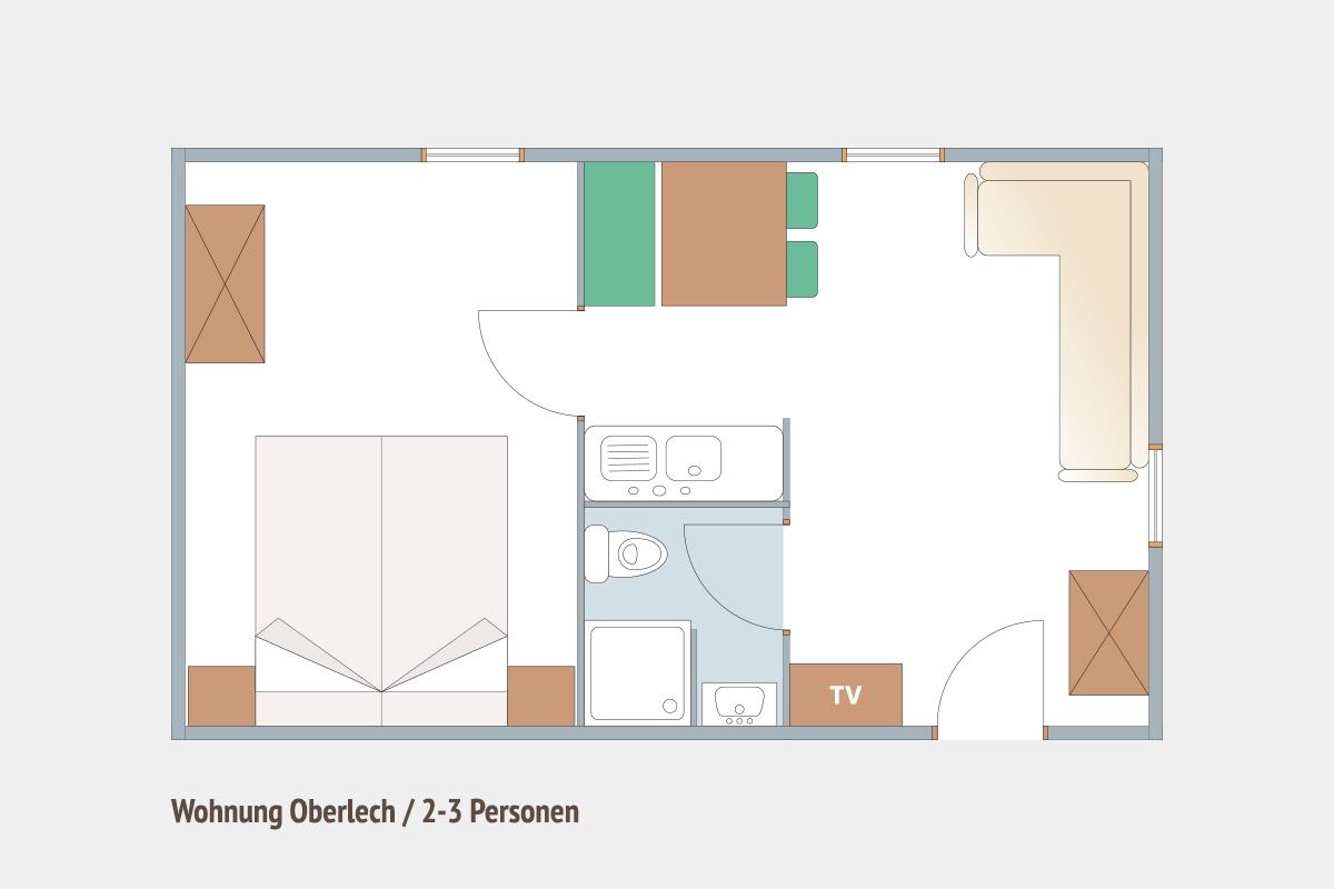 Ferienwohnung Blick Oberlech Gemütliche Ferienwohnung im Walserhausstil für 2-3 Personen: Bestehend aus 1 Schlafzimmer mit Doppelbett, 1 Wohn-/Schlafzimmer mit Doppel-Schlafcouch, Küchenblock, Essecke. Neues Badezimmer mit Dusche und WC.