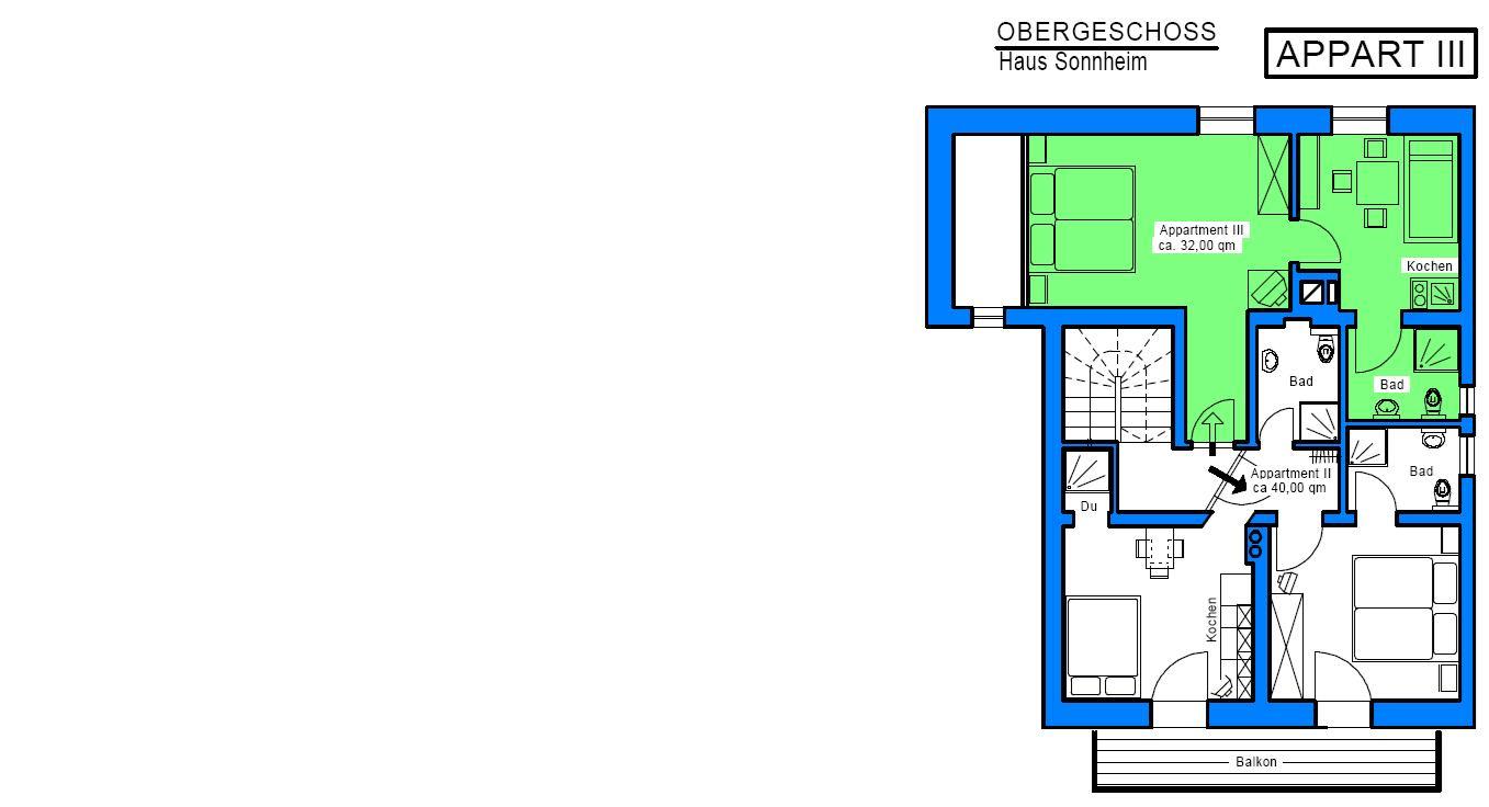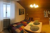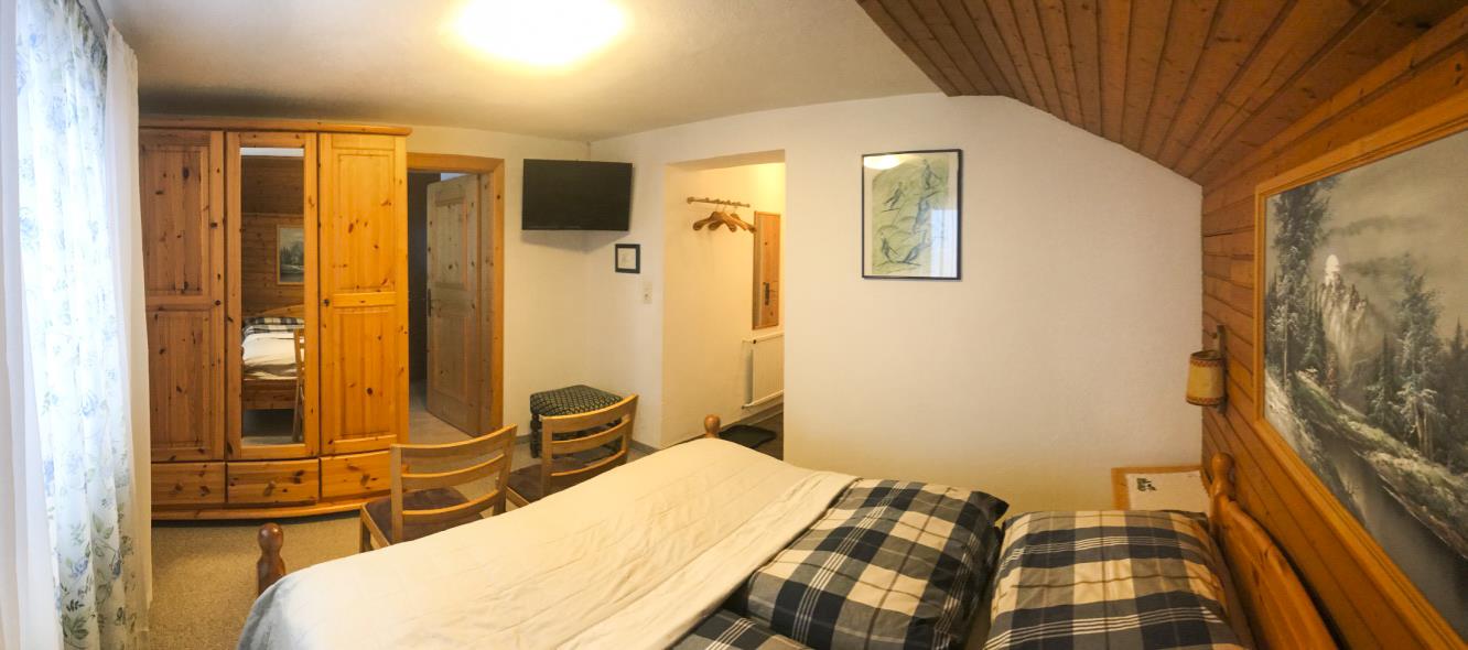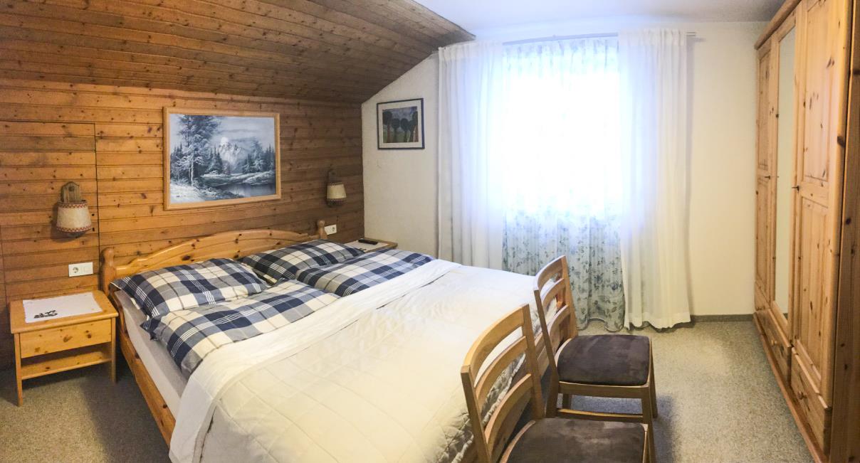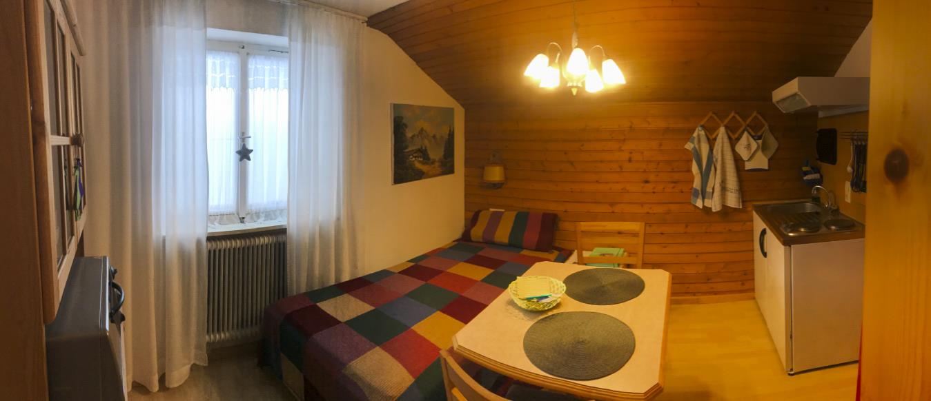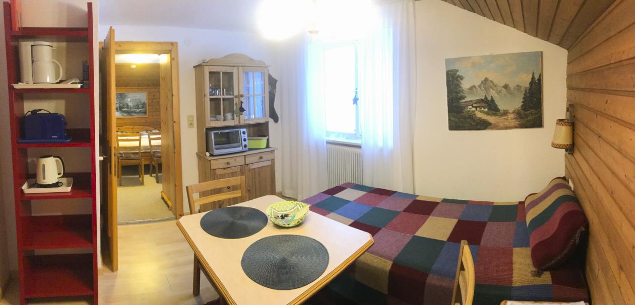 Obergeschoss, 35 m², Standardbelegung mit 2 Personen. 1 Doppelbettzimmer, 1 Aufenthalts-Stübchen mit Kochgelegenheit, 1 Dusche, WC, Kabel-TV, Safe, Internetanschluss über W-Lan. Parkgelegenheit am Haus