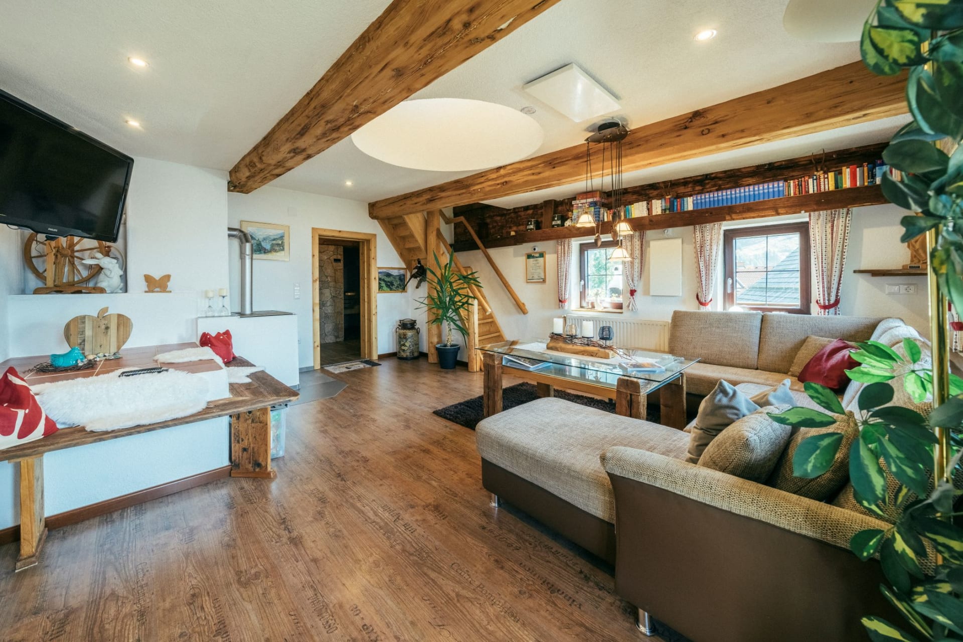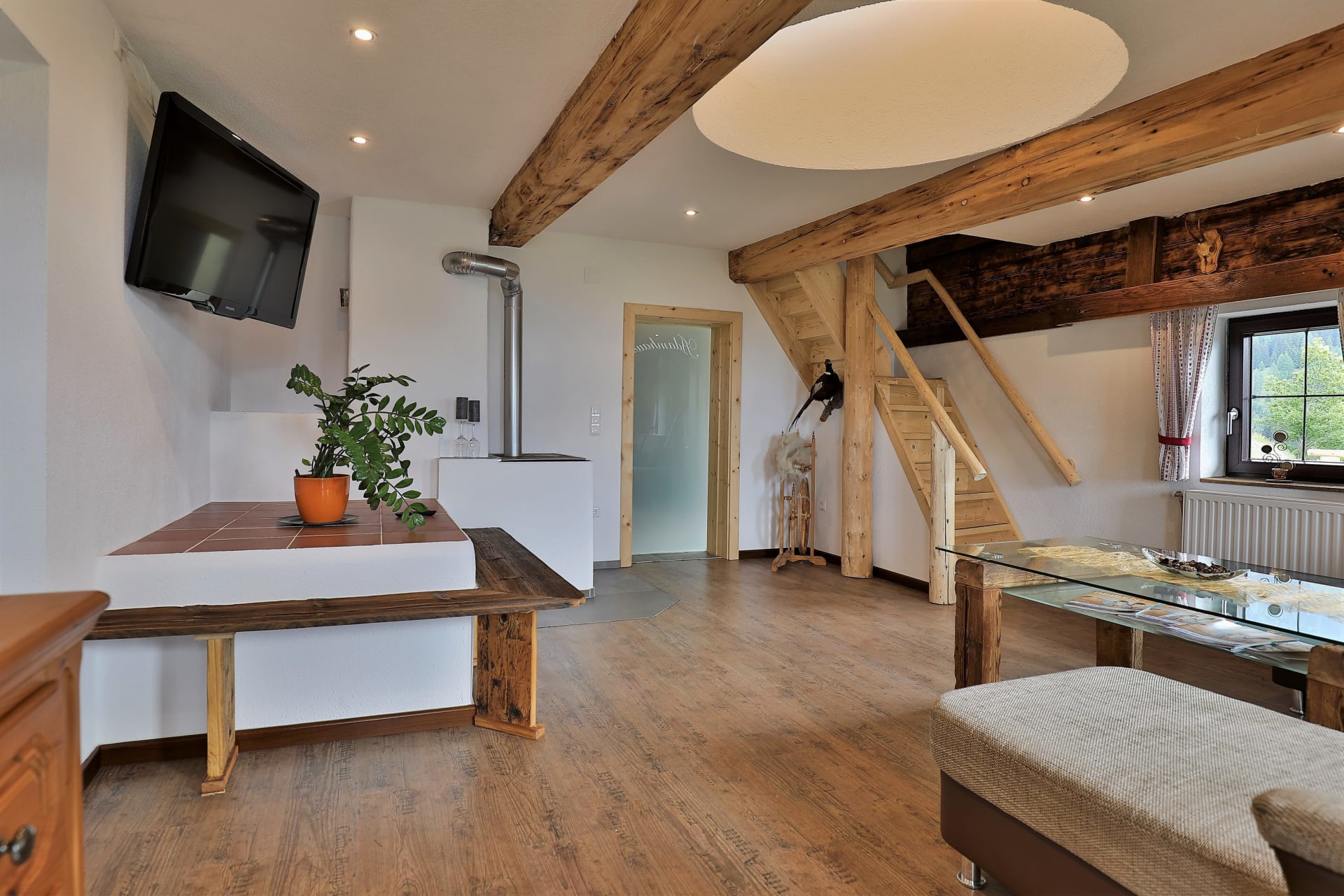 Unser Holzofen und Infrarotheizung sorgen für wohlige, gemütliche Wärme und kuschelige Abende mit Deinen Liebsten.
