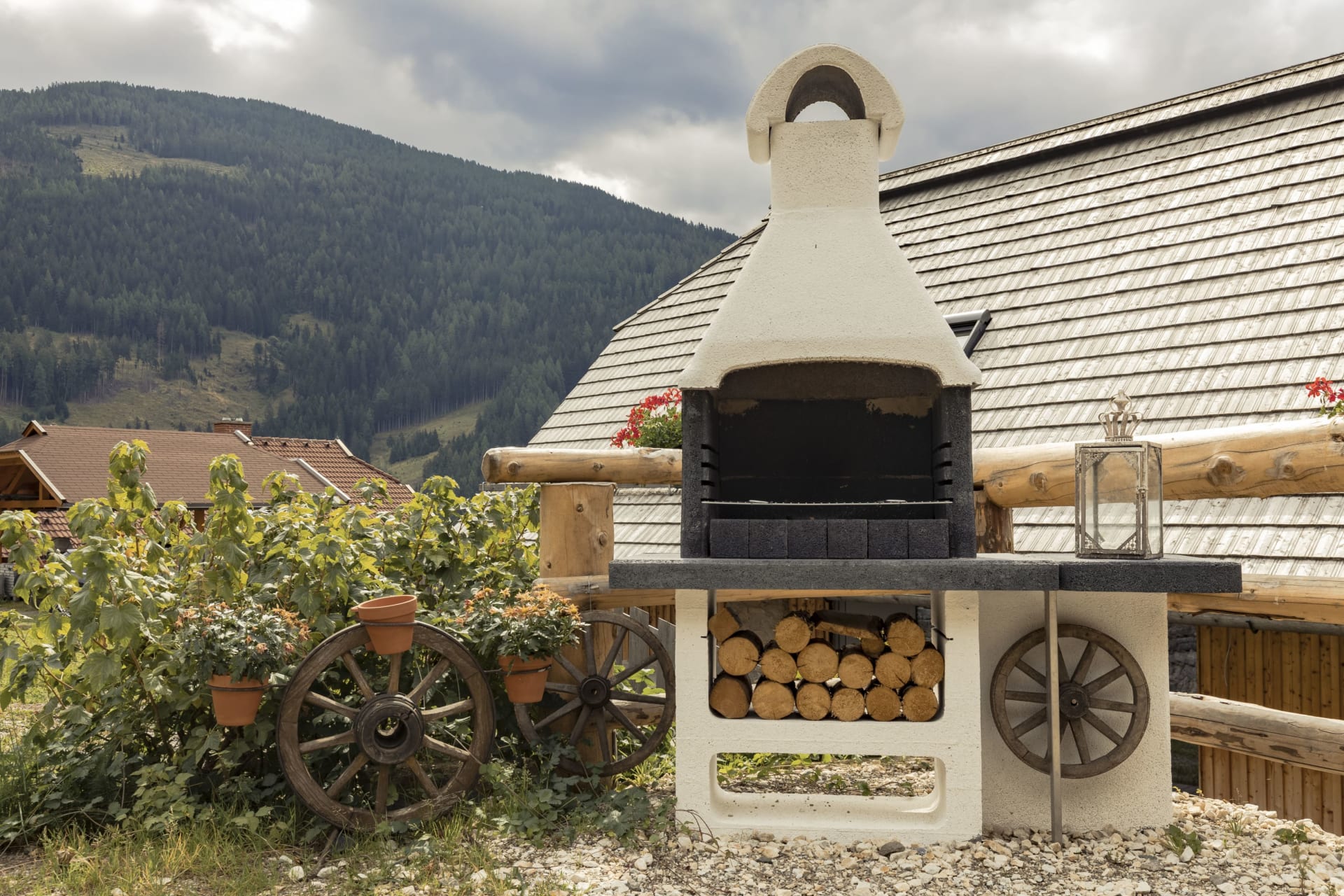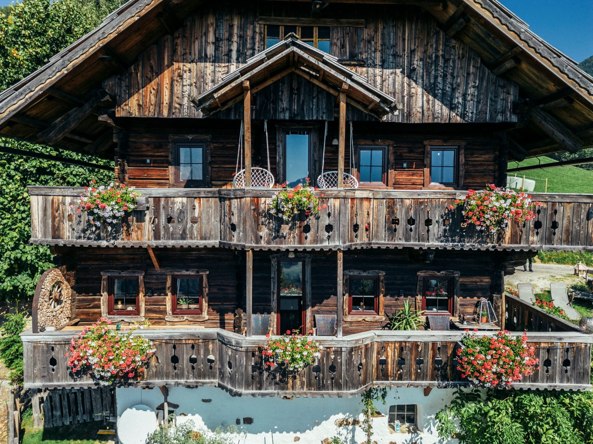 Zwei große Balkone mit Tischen und Bänken sowie sieben Liegestühle und eine Grillstation laden dazu ein, Urlaubszeit ganz gemütlich rund um das Haus zu verbringen.