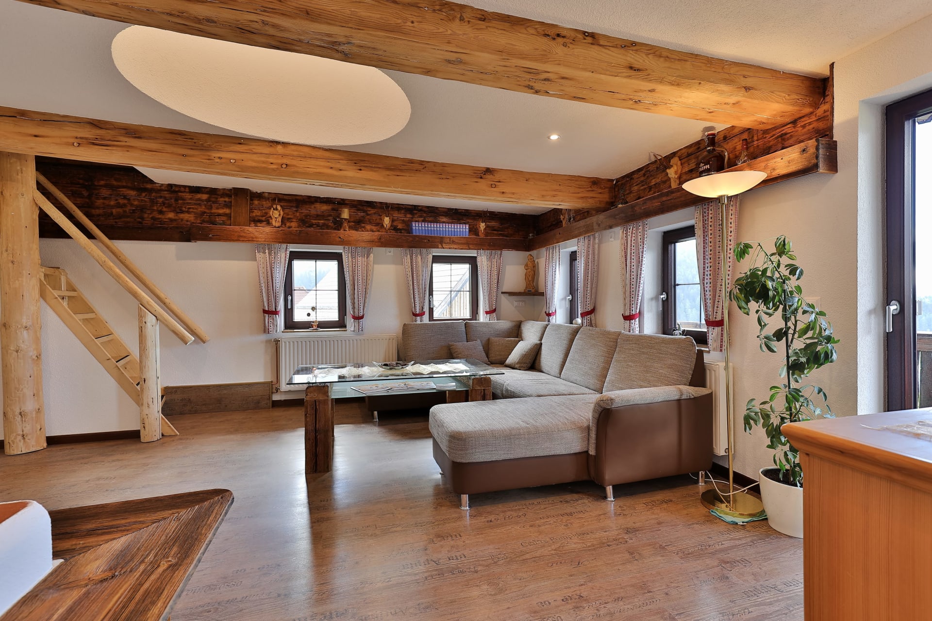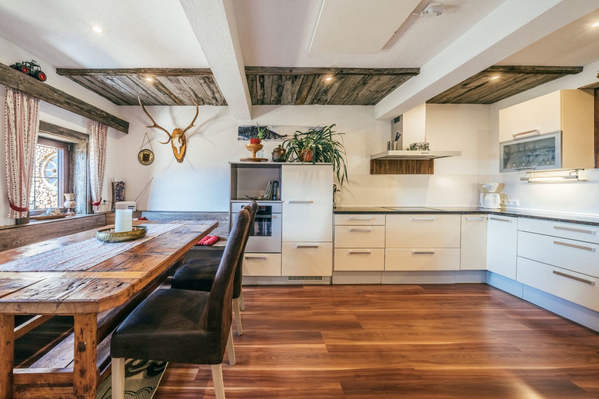 Eine großzügige Wohnküche mit Eckbank ein Wohnzimmer mit geräumiger Couch für gemütliche Abende bieten ausreichend Platz, um sich wohlzufühlen.