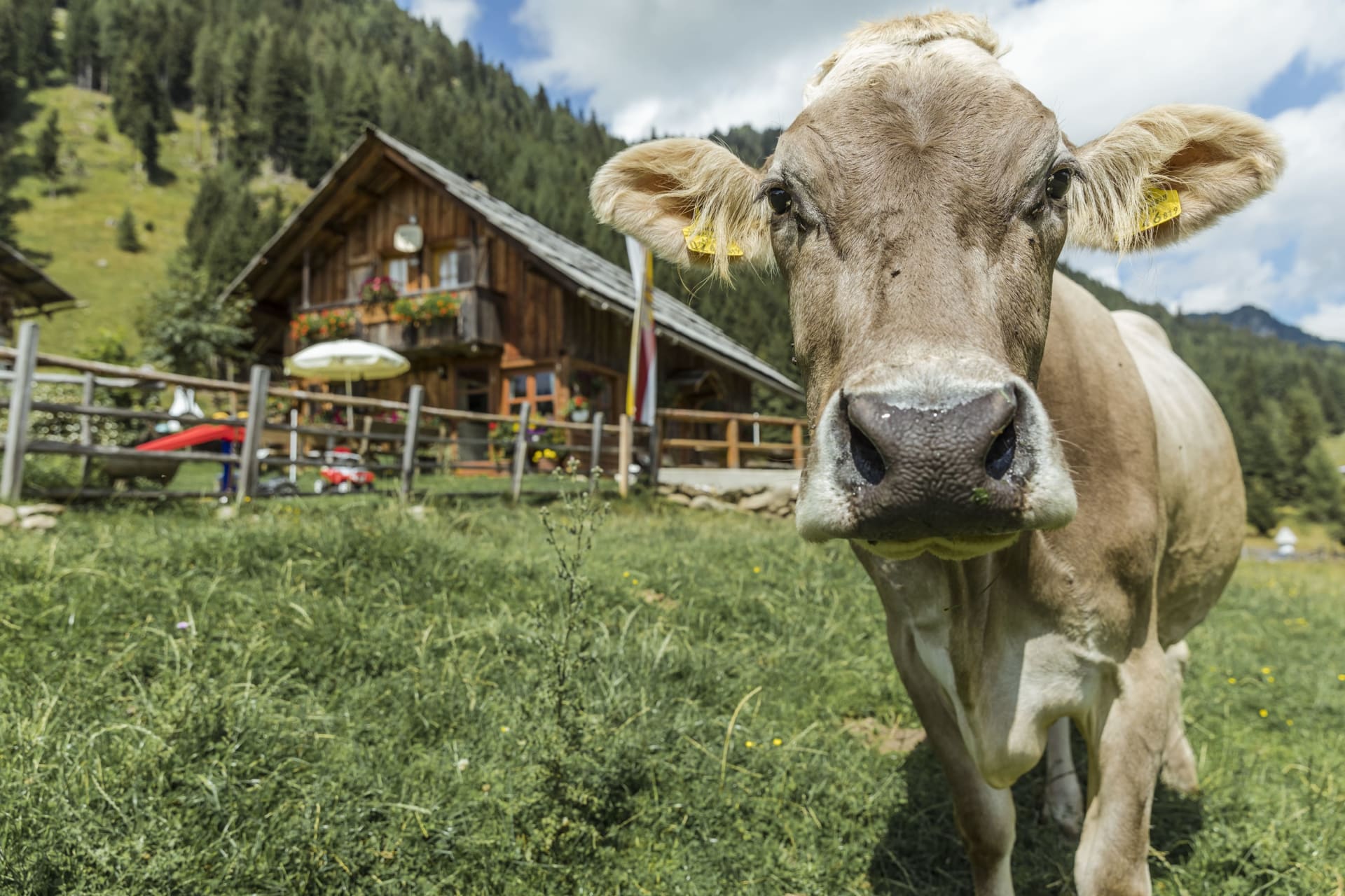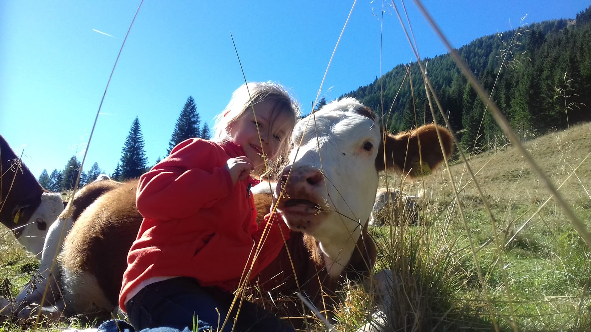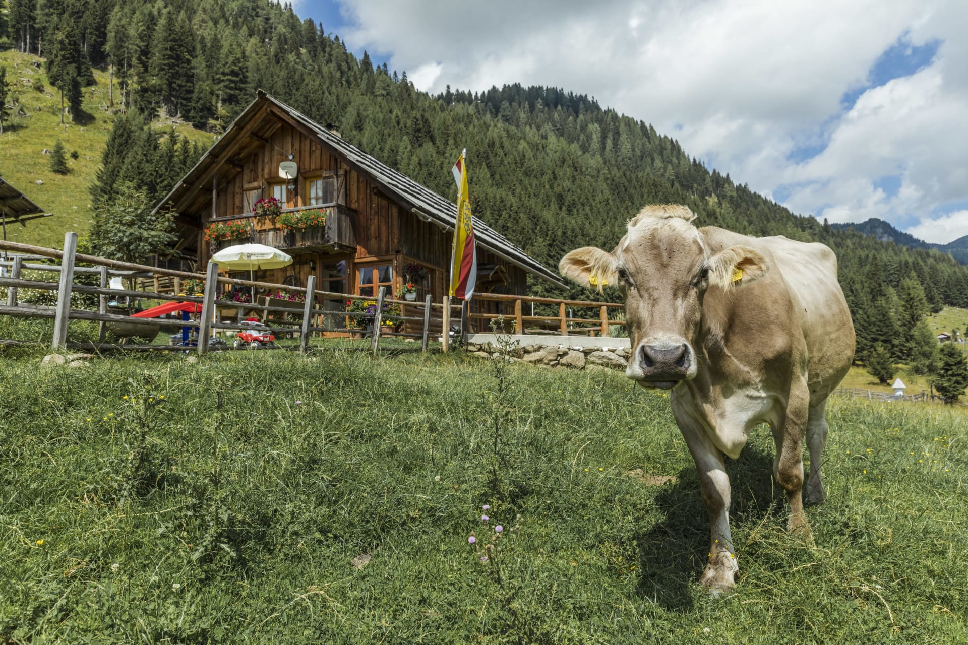 Wir - ihre Gastgeberfamilie Stinig - verbringen den Sommer gemeinsam mit dem Weidevieh auf der Veidlhütte, die ca. 1,5 Stunden (leichte Wanderung) vom Adamhaus entfernt ist. Hier hüten wir das Vieh und wir stellen selbst Milchprodukte und Käse her. Auf der Veidlütte gibt es auch eine gute Jause für unsere Besucher. Unsere Gäste haben die Möglichkeit mit dem Auto zu uns auf die Alm, ins Langalmtal, zu fahren (10 min.). Die Mautkarte dafür stellen wir gratis zur Verfügung.