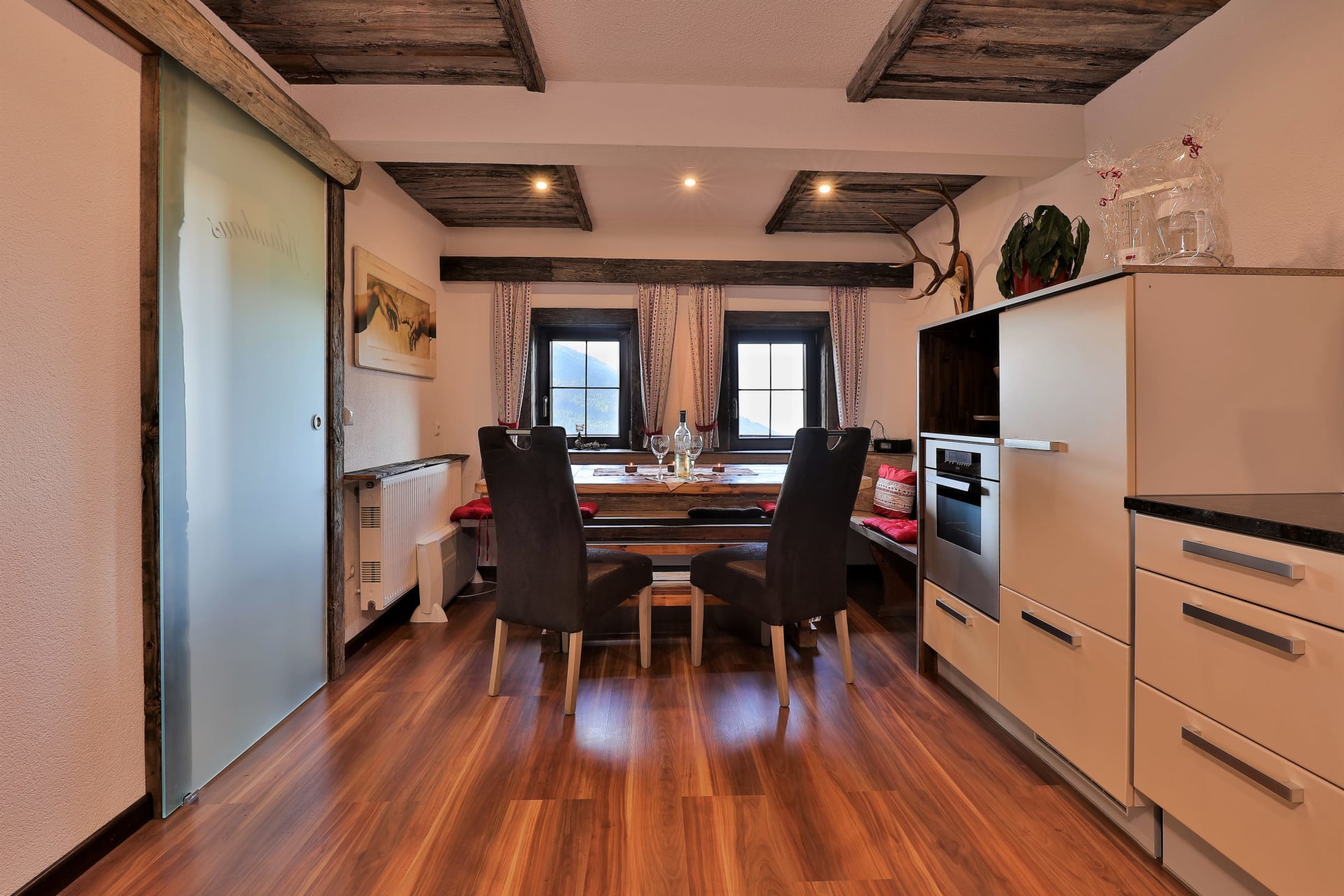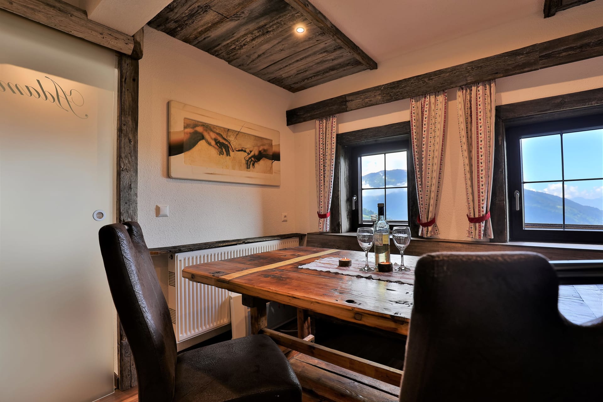 Wie im Märchen der Gebrüder Grimm befinden sich im Adamhaus sieben Bettchen, sieben Tellerchen, sieben Löffelchen und vieles mehr. Vier geschmackvoll eingerichtete Schlafzimmer bieten Platz für sieben Personen. Zwei WC Anlagen und ein großzügiges Badezimmer mit Bodenheizung - so kann man den Urlaub richtig genießen.