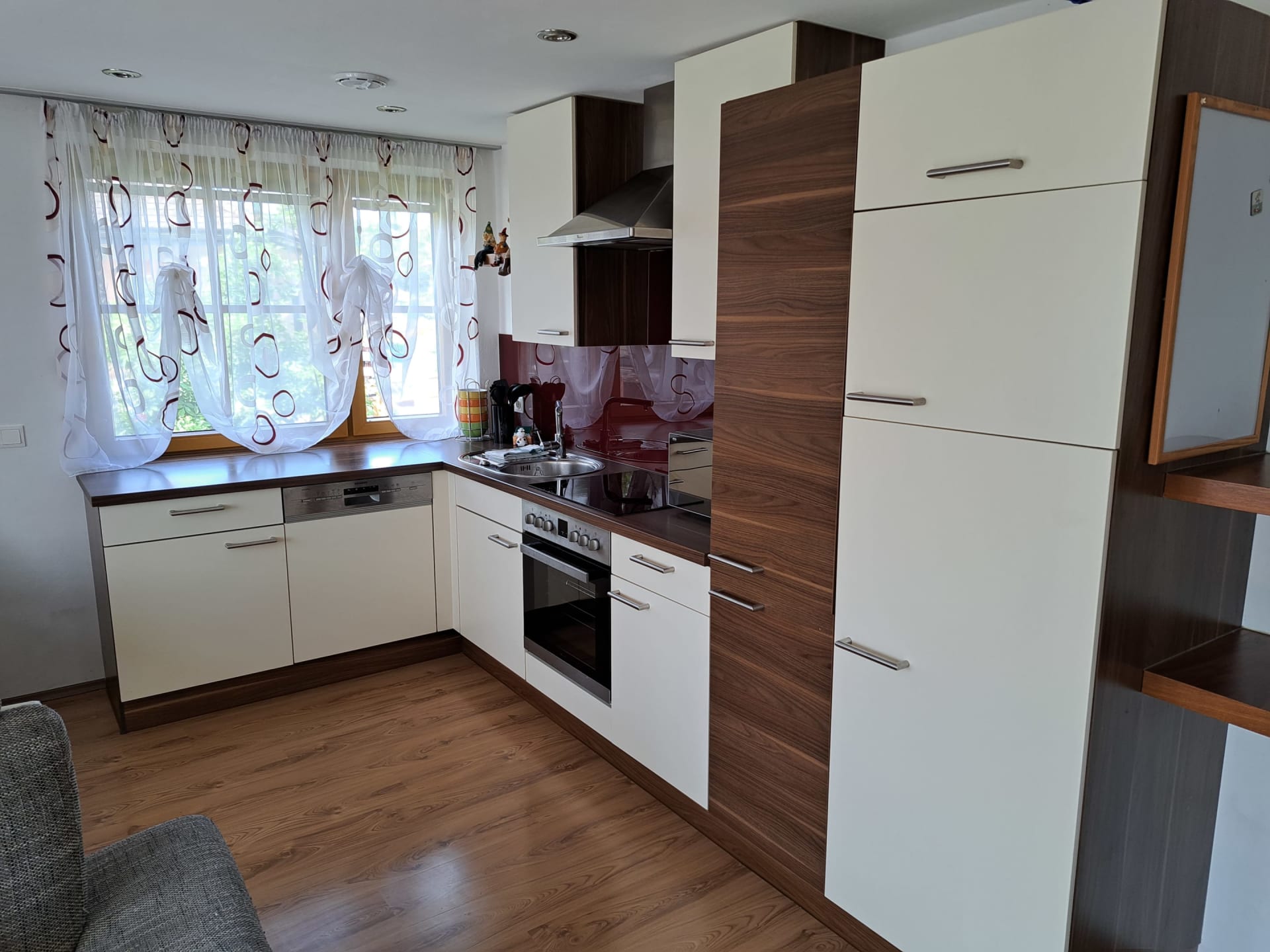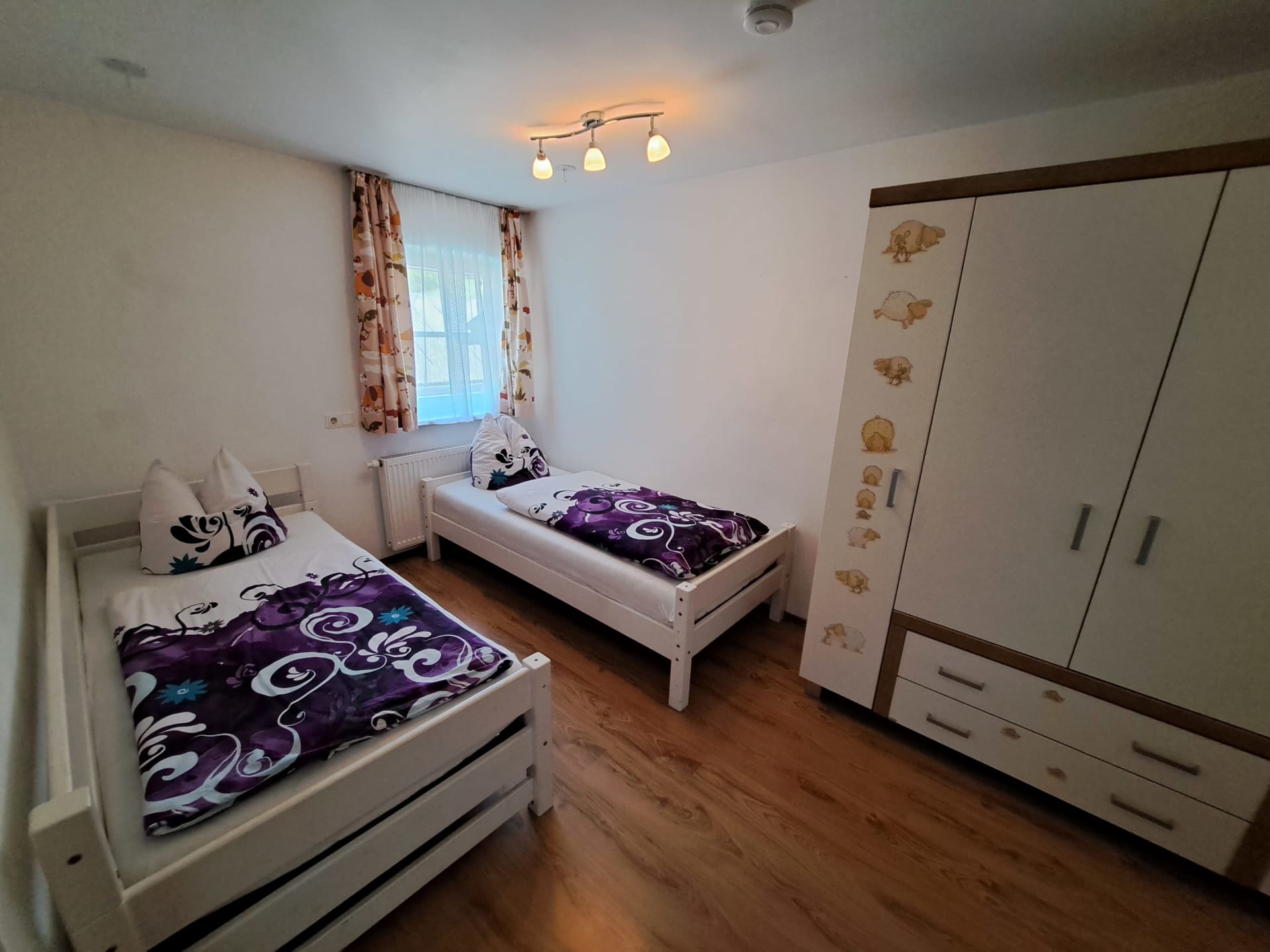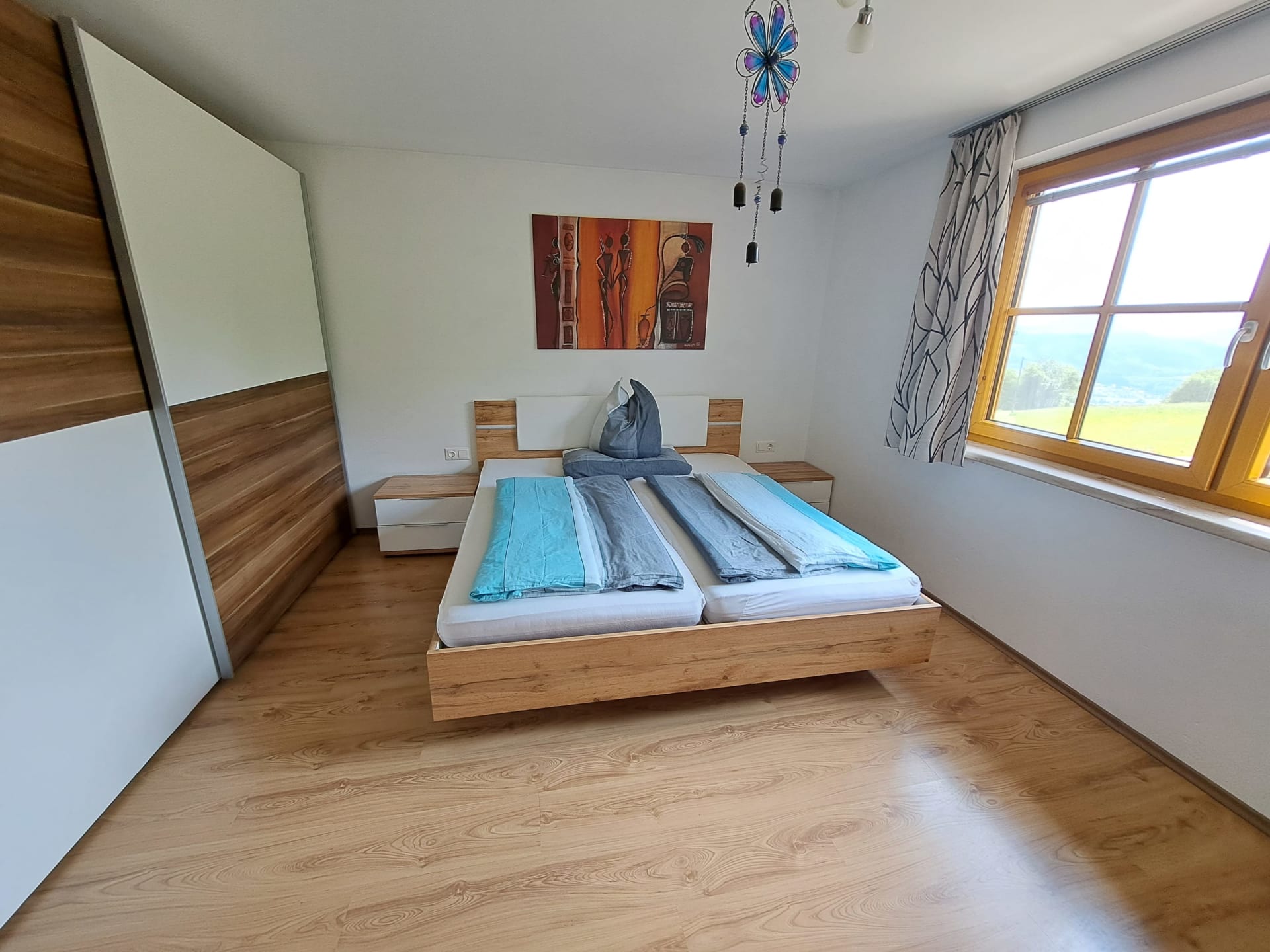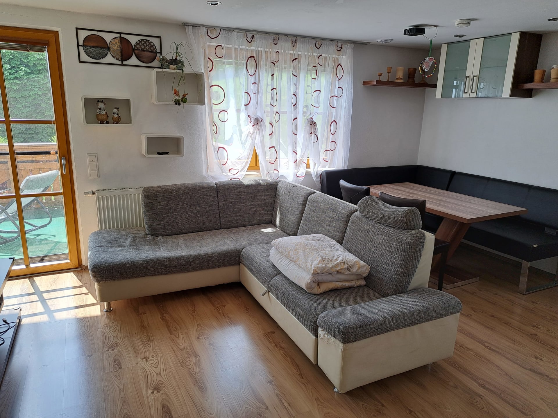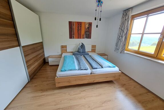 Geräumige und liebevoll eingerichtete Ferienwohnung mit zwei Schlafzimmern. Ein Zimmer mit Doppelbett und ein Zimmer mit Stockbett. Eine große komplett eingerichtete Wohnküche mit Ausziehcouch, Fernseher und CD/Radio laden zum gemütlichen beisammen sein ein. WC und Badezimmer mit Dusche, großer Badewanne und Haartrockner sind getrennt. Auf dem großen Balkon mit wunderschönem Blick ins Tal können sie ihre Seele baumeln lassen. Nichtraucherwohnung. Bettwäsche, Handtücher, Geschirrtücher und Toilettenpapier werden von uns zur Verfügung gestellt.