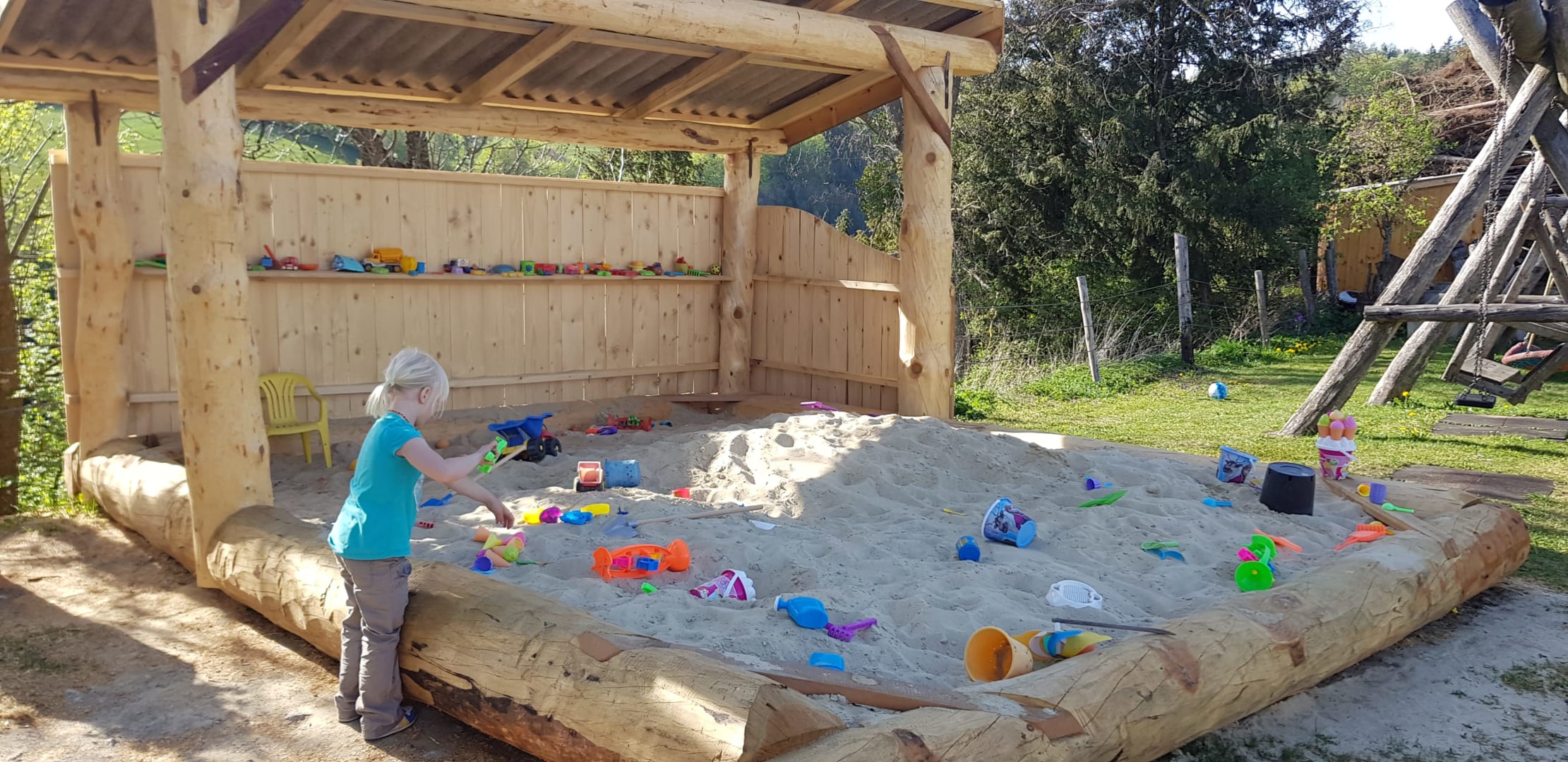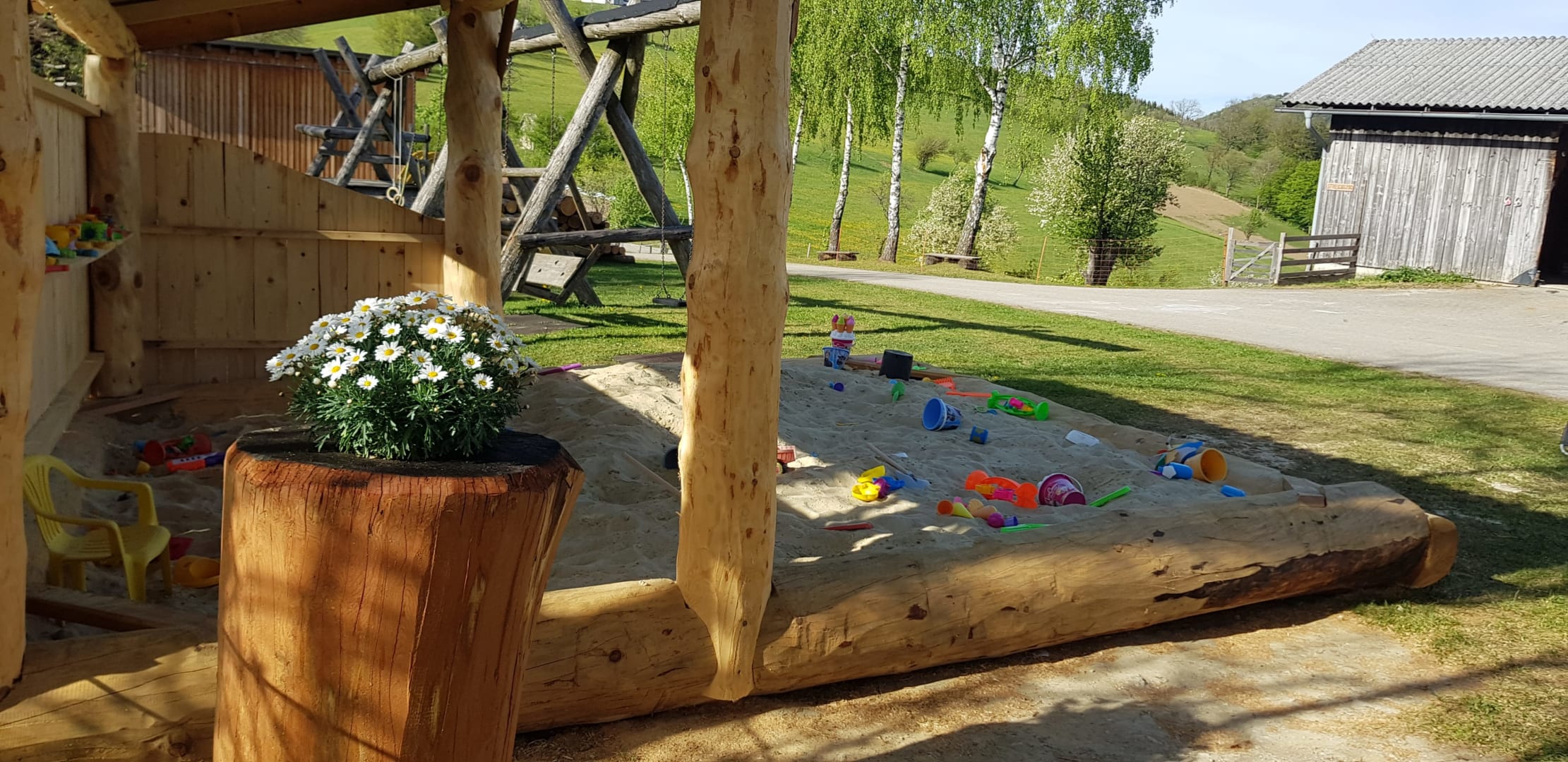 Hoftypische Besonderheiten: Unsere Gäste lieben die Produkte aus unserer eigenen Landwirtschaft. Auf die kleinen Gäste warten eine Menge Tiere die alle gestreichelt werden möchten. Der große Spielplatz lädt zu toben ein. Zufriedene Eltern relaxen auf der Hollywoodschaukel und haben die Kleinen immer im Blick.