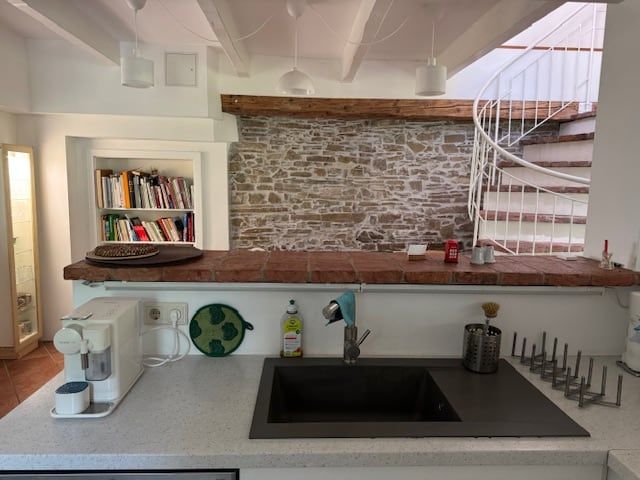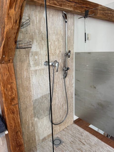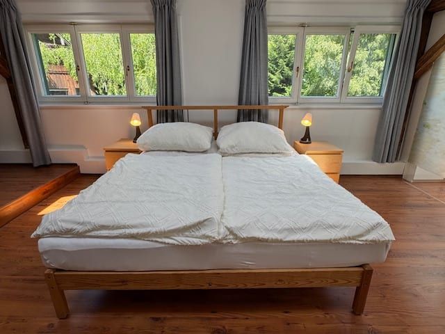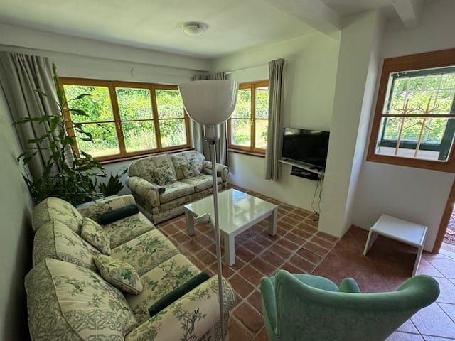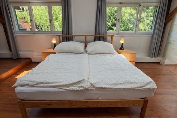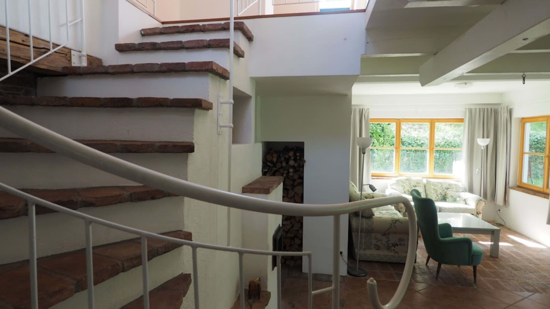Inmitten des Biosphärenparks Wienerwald liegt das 400 Jahre alte Schmuckstück Landhof Ott. Ein idyllischer Platz umgeben von Wiesen und Wäldern in absoluter Ruhelage. Eine kleine überdachte Terrasse bietet Platz um den Morgen mit einem Frühstück im Freien zu beginnen. Anschließend lädt der Wintergarten mit gemütlicher Sitzgruppe/Leseecke und Schreibtisch zum Verweilen ein. Eine Garderobe und ein WC befindet sich im Wintergarten. Das Erdgeschoß gliedert sich in Küchenbereich mit einer großzügigen Kücheninsel (gut ausgestattet), einen gemütlichen Wohnbereich mit Sitzgarnitur und der Kamin* soll an kälteren Tage für angenehme Wärme sorgen. Fernseher, Radio und W-Lan gehören zur Standardausstattung. *Holz für Kamin vorhanden Eine kleine Bibliothek mit einer bunten Mischung an Büchern lädt zum Verweilen und entspannen ein. Die Treppe ins Obergeschoß führt in den Schlafbereich. Das gesamte Obergeschoß ist offen und gliedert sich in Schlafbereich mit gemütlichem Doppelbett, einer ausziehbaren Couch zum Faulenzen und über eine Leiter gelangen Sie in das Hochbett. Die Ferienwohnung bietet Platz für 2 bis 5 Personen. Dusche und WC ist ebenfalls im Raum vorhanden. Biobetrieb: BIOS zertifizierter Betrieb