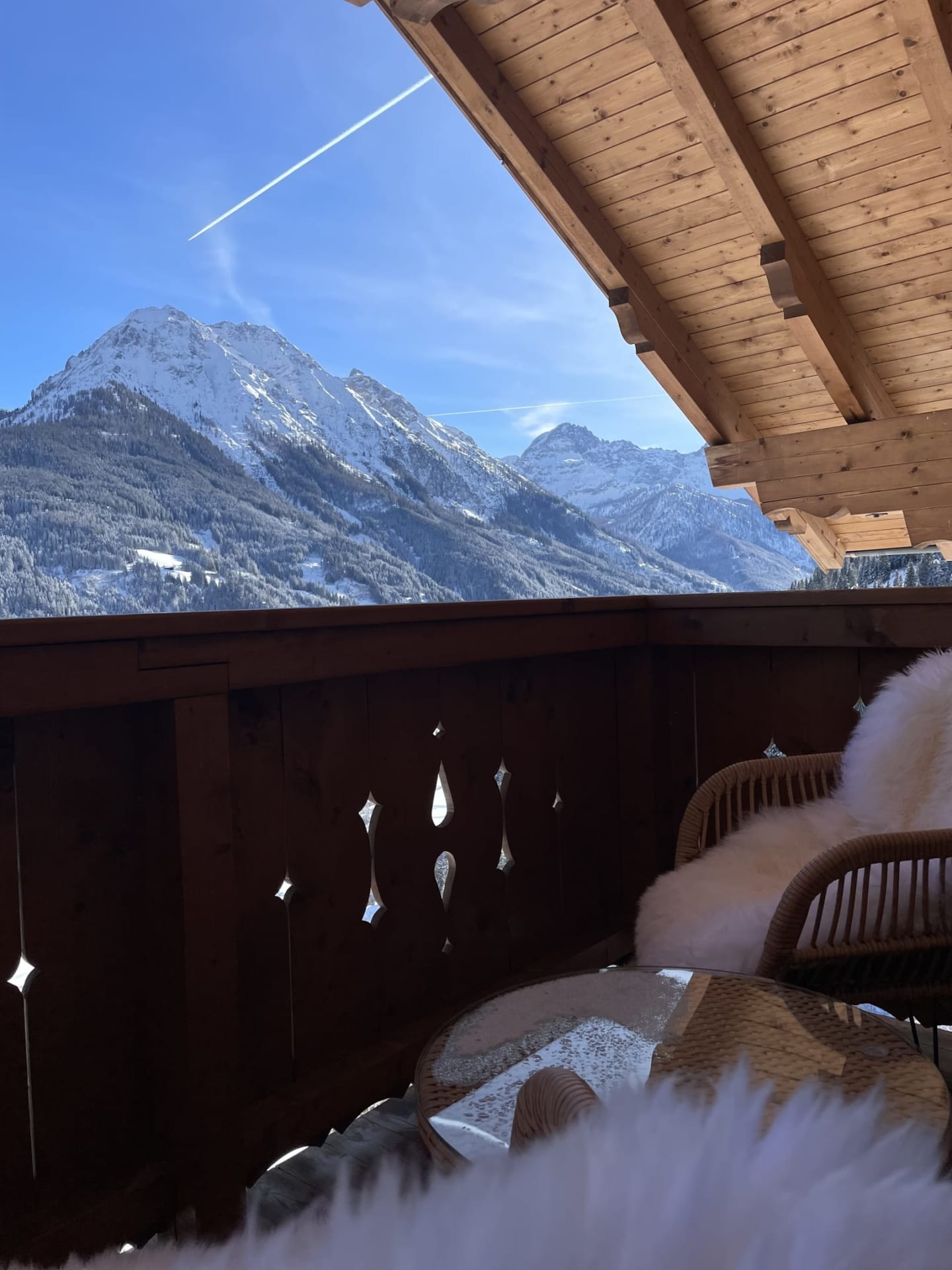 Der Weg zur Außensauna führt über das Wohnzimmer zum Balkon, welche ein Wellnessprogramm der Extraklasse verspricht.