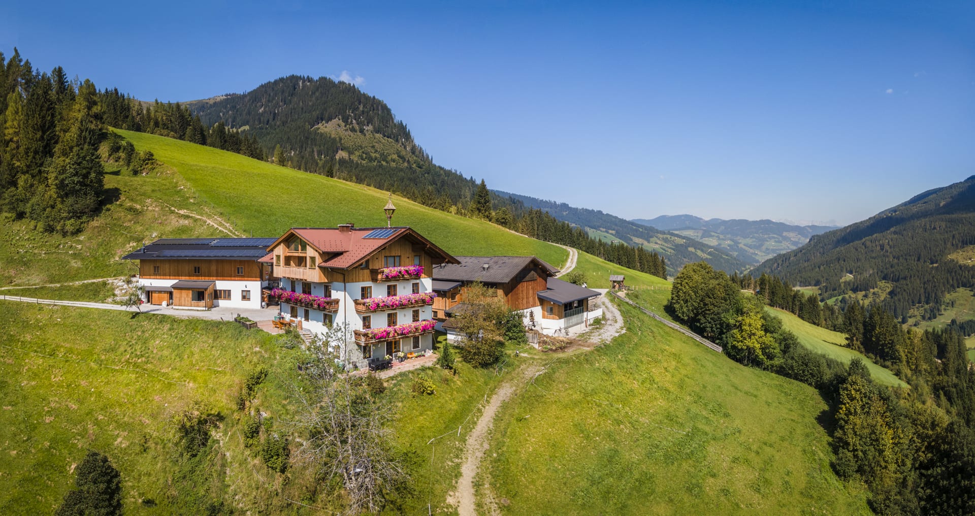Unser idyllisch gelegener Hof auf 1.200 Metern Seehöhe bietet eine einzigartige Alleinlage mit Panoramablick auf die beeindruckende Bergwelt. Ob Sommerurlaub oder Winterurlaub, bei uns genießt du Natur pur, Erholung und unvergessliche Erlebnisse.