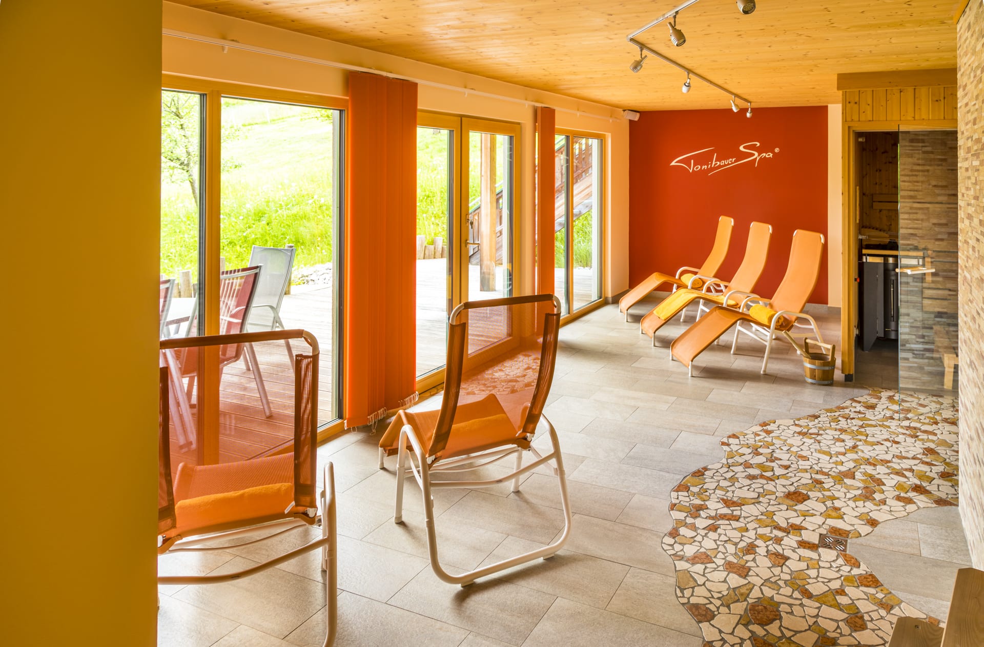 Wellnessoase Tonibauer Spa: Es ist das Herzstück und die Erholungsoase unseres Hauses. Im Sanarium (Dampfbad und finnische Sauna kombinierbar) oder in der Infrarotkabine kann man ausspannen, bevor man sich in den HotPot (Abkühlbecken) oder unter die Schwallbrause begibt.