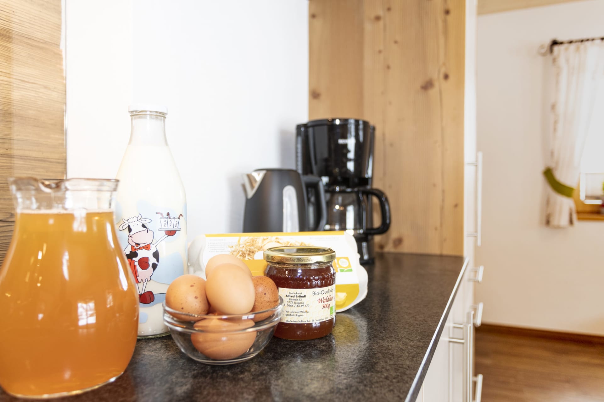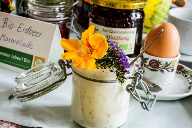 Beginnen Sie jeden Tag mit unserem einzigartigen 'Salzburger-BIO-Frühstück', das zu 100% aus biologischen Produkten besteht – viele davon direkt von unserem Hof, wie frische Eier, Milch, selbstgemachte Marmelade und Apfelsaft. Entdecken Sie auch unseren vielfältigen Kräutergarten mit über 30 Heil- und Küchenkräutern sowie einen Naschgarten mit Beeren. Nach Absprache können Sie an Kräuterworkshops teilnehmen!