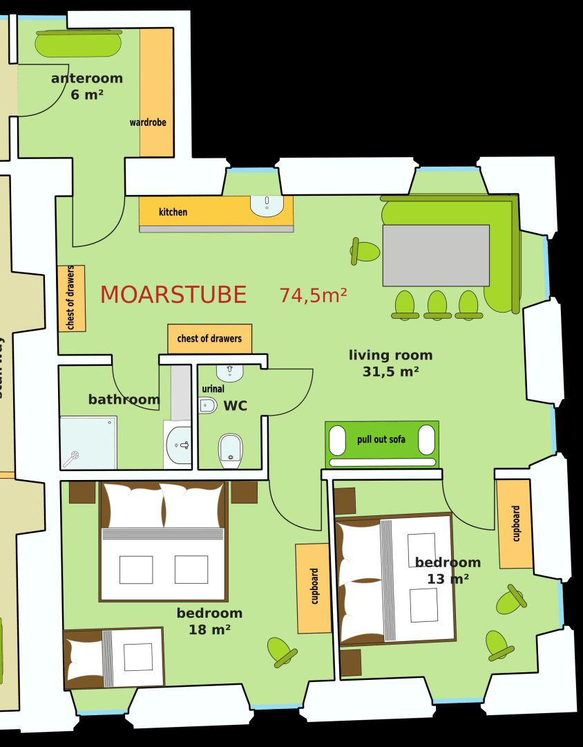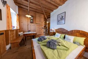 Du wirst dich sofort um ein paar hundert Jahre in der Zeit zurückversetzt fühlen: Lass den rustikalen Charme des wunderschön ausgetäfelten Ritterzimmers auf dich einwirken: Rustikale und gediegene Altholzdielen und Decke, eine Holzsitzecke sowie eine handgetischlerte Küchenzeile lassen nichts vermissen. Als Namensgeber hängt ein Karikatur des einsamen Ritters „Don Quichote von Cervantes“ an der Wand.