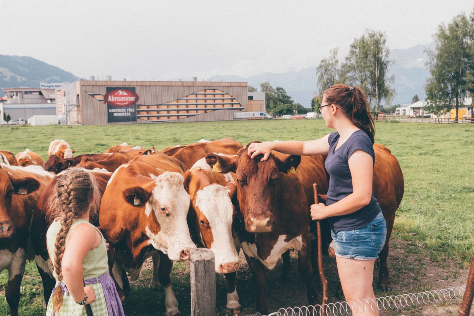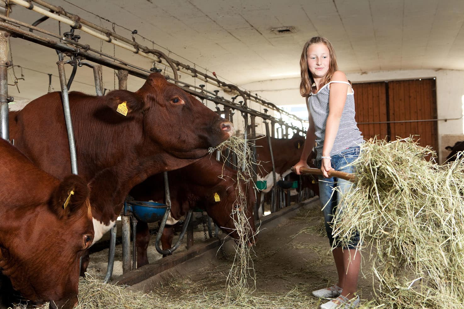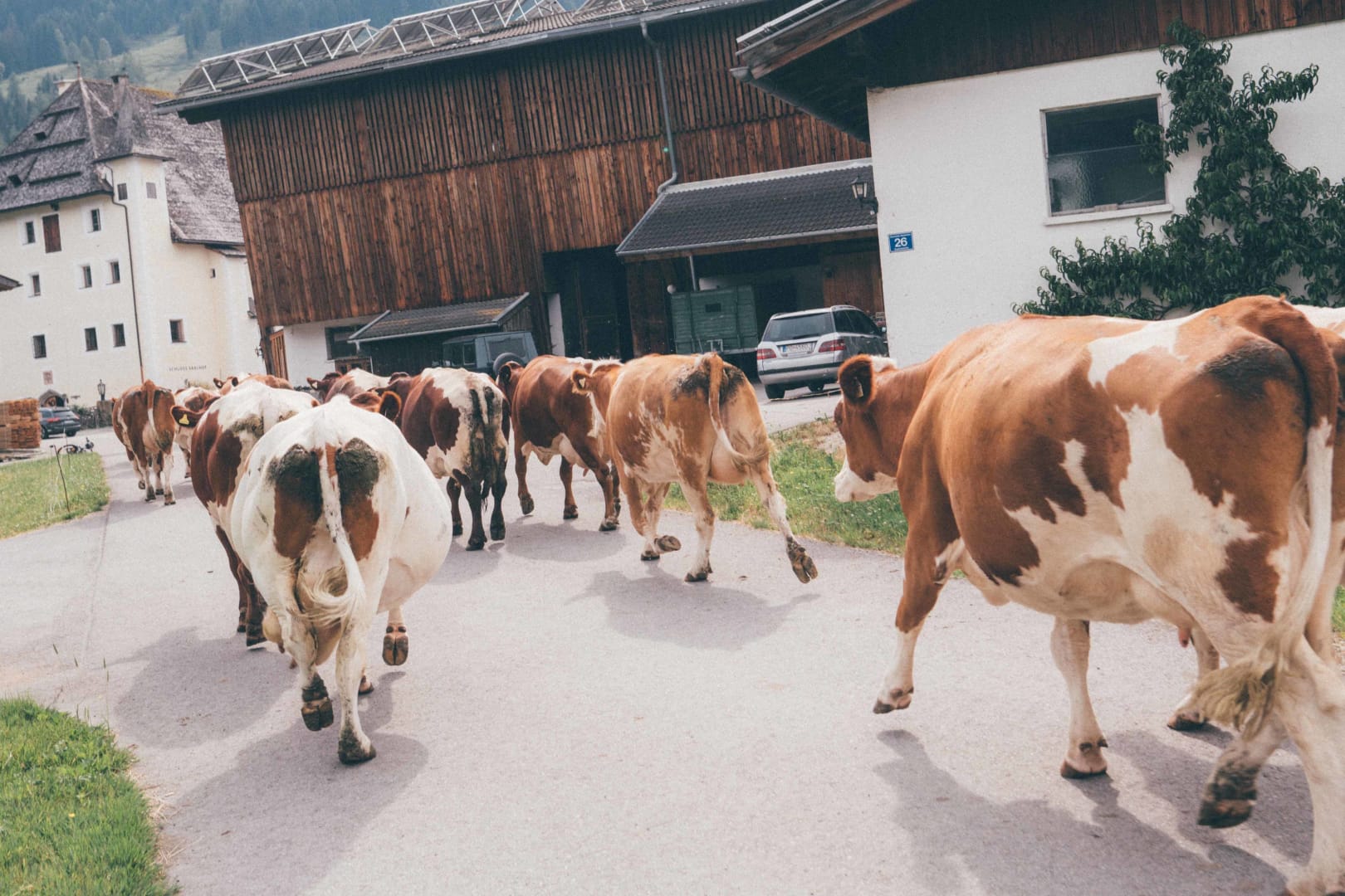 • Helft mit beim täglichen Kühetreiben von der Weide in den Stall um 17 Uhr