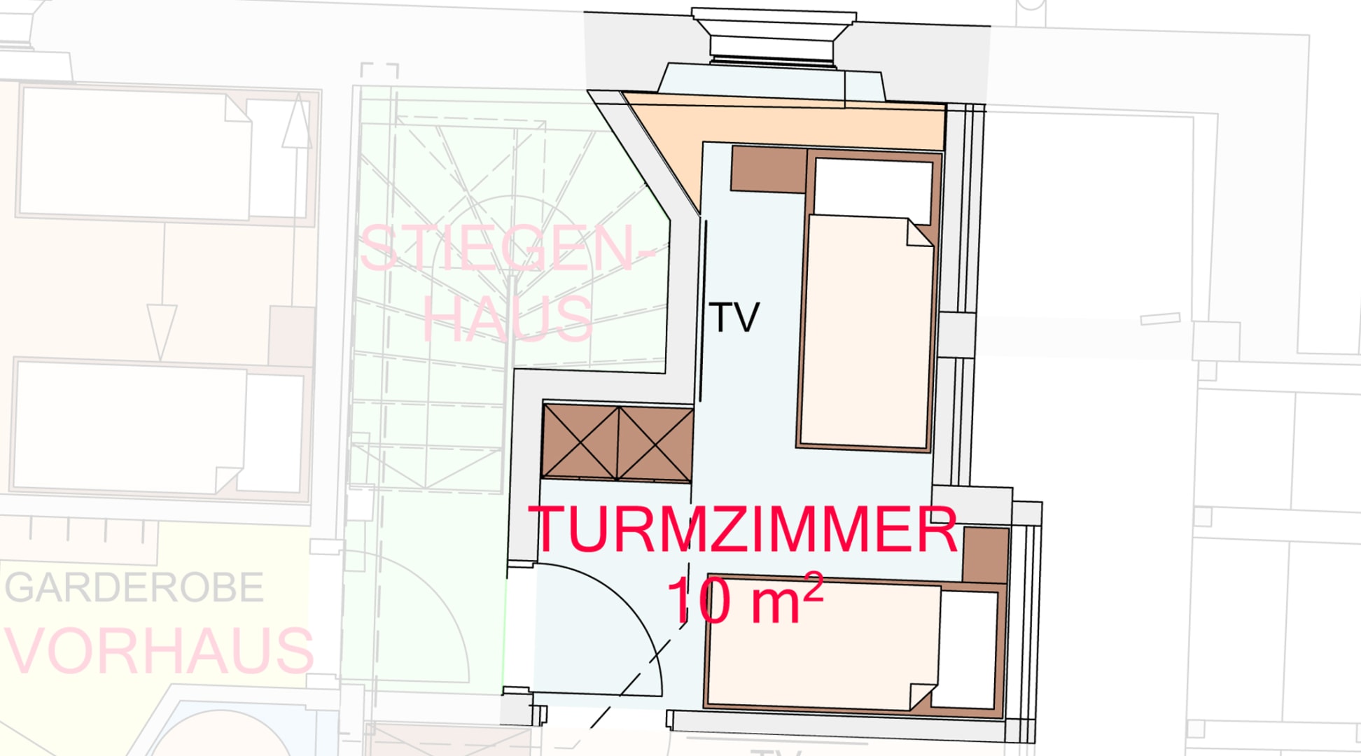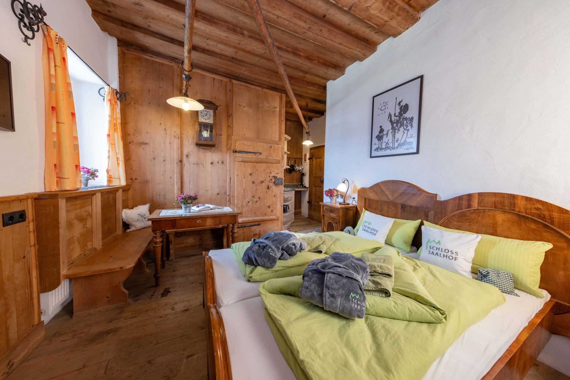 Unser rustikales Studio Ritterzimmer für 1-2 Personen liegt in der 2. Etage von Schloss Saalhof.