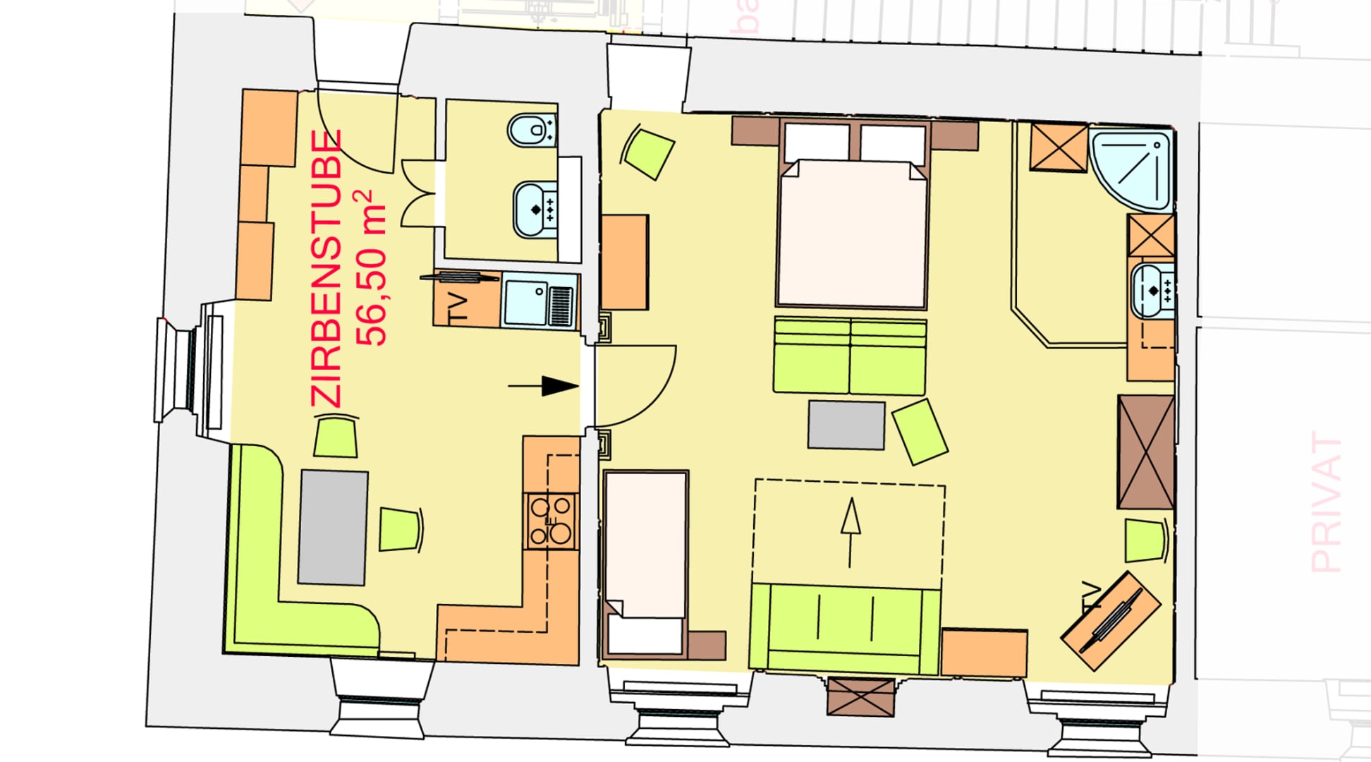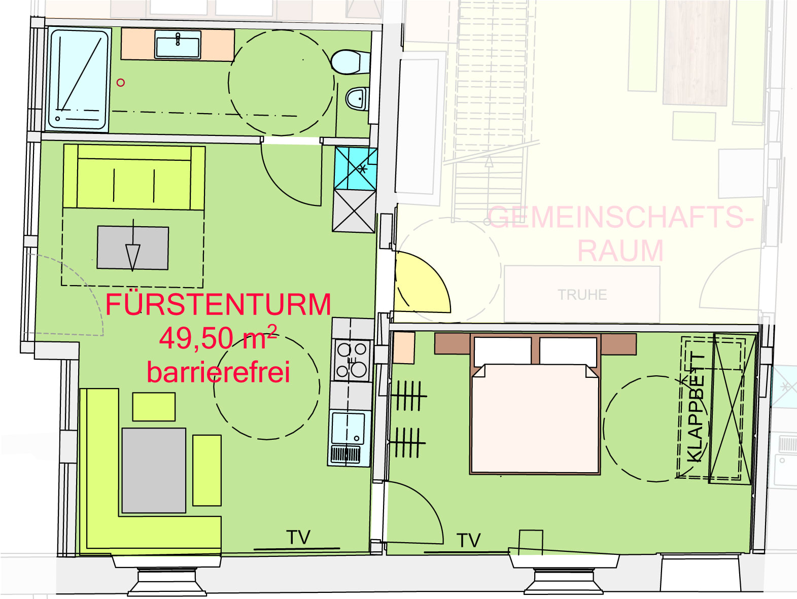 • Bad mit DU, WC und Fußbodenheizung, Schminkspiegel und Fön, Handtücher, Shampoo, Seife
