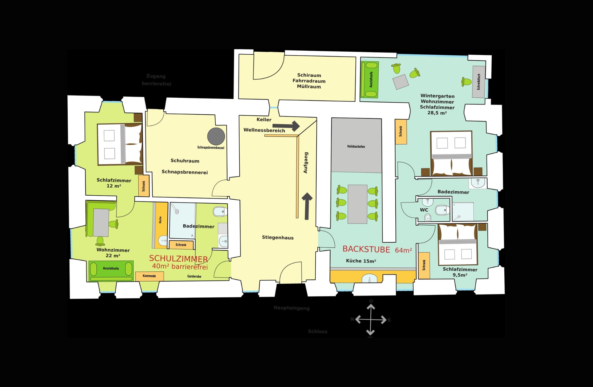 • Originale Schlossausstattung: Vollholzmöbel (in Altholz)