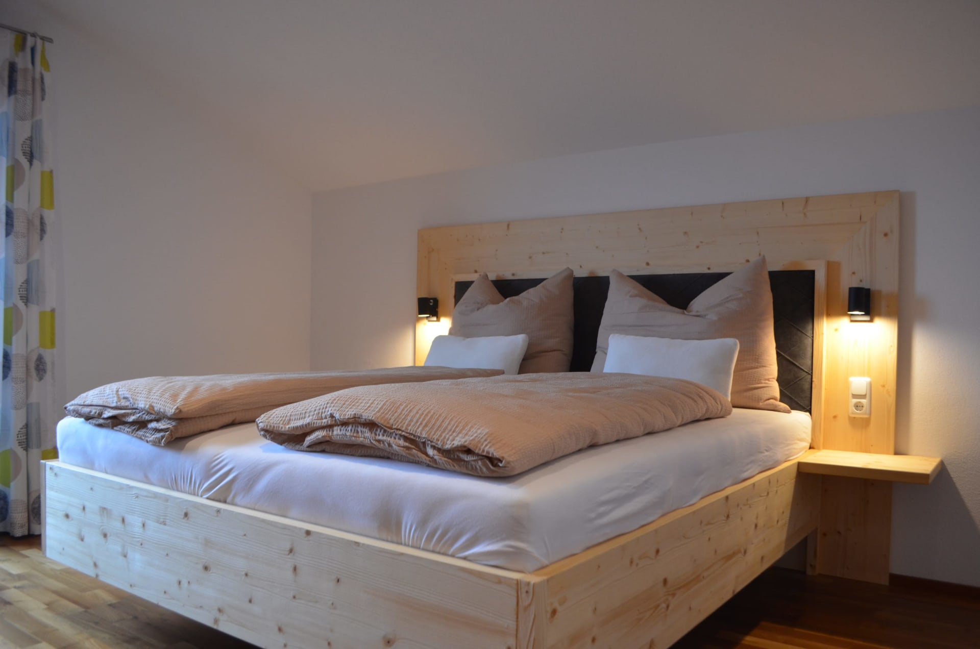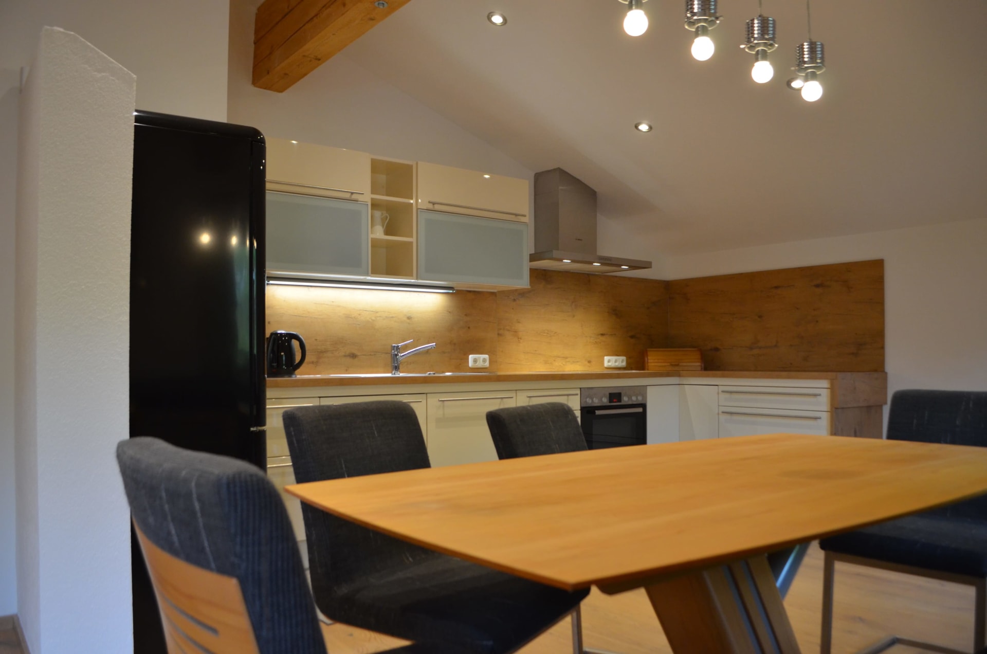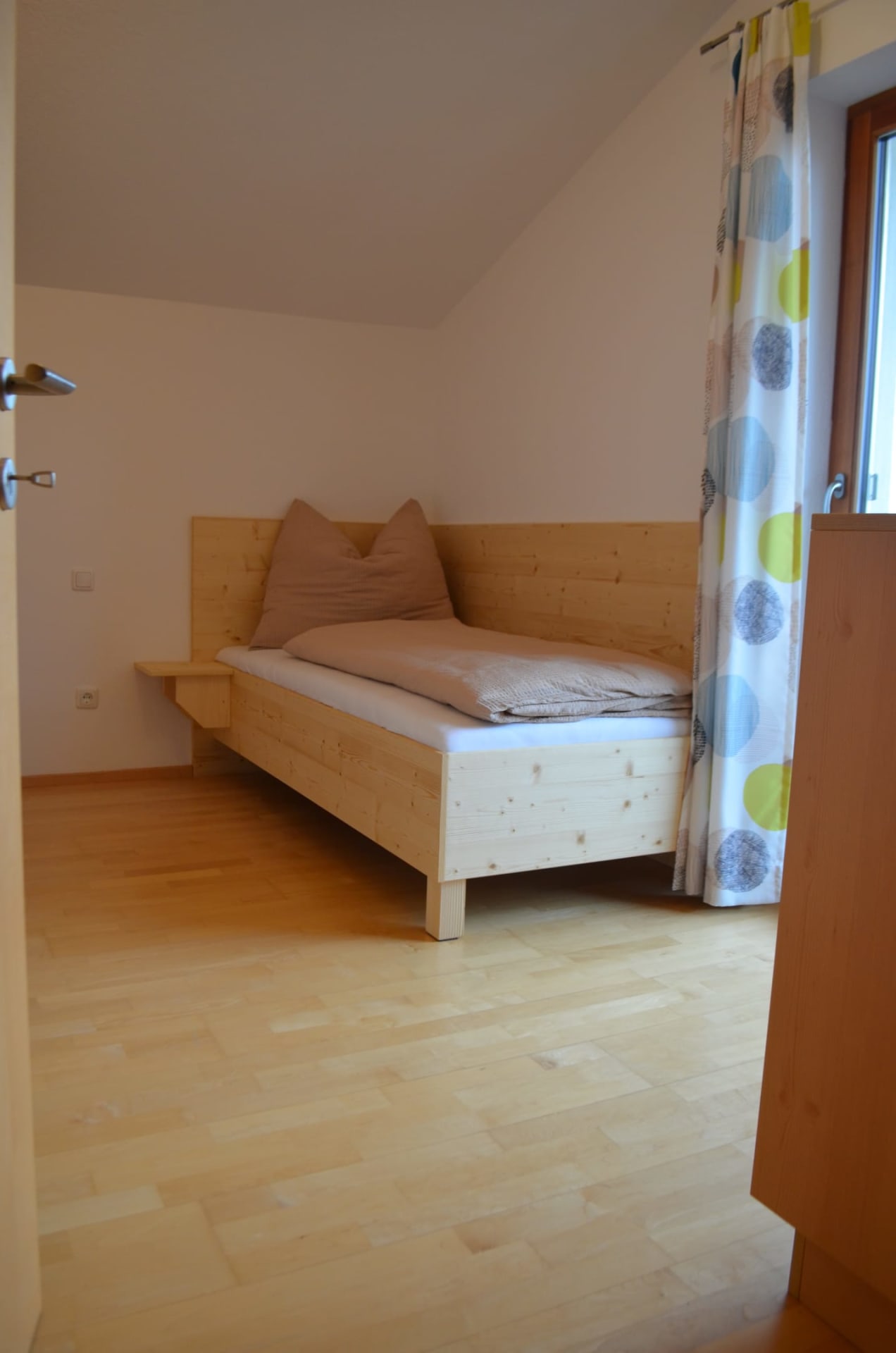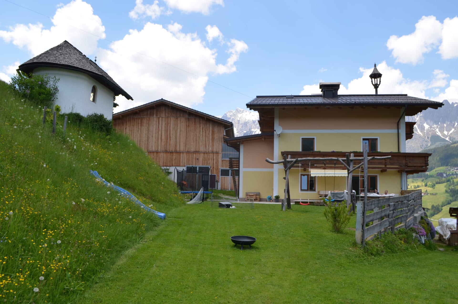 Wir haben eine neu renovierte Ferienwohnung auf unserem Hof, die für bis zu 7 Personen Platz bietet. Die Wohnung hat einen separaten Eingang und wurde mit hochwertigen Möbeln ausgestattet. Im Garten sorgen die Schaukel, Rutsche, das Trampolin und der Sandkasten für Abwechslung bei unseren jüngeren Besuchern.