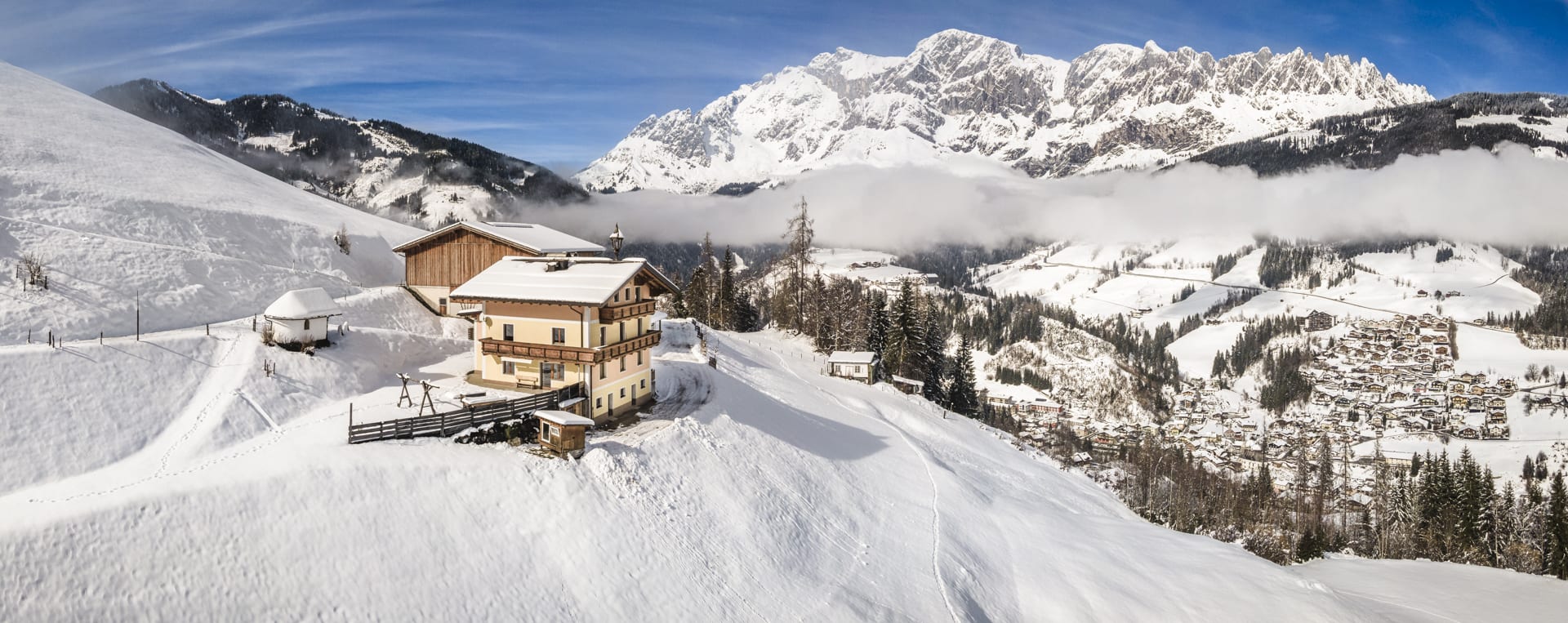 Unser Bergbauernhof liegt idyllisch und ruhig am Ende der Bergstraße hoch oben über Mühlbach. Ihr genießt bei uns den Ausblick über das ganze Tal und das Hochkönig Gebirge. Mühlbach ist ca. 3 km von uns entfernt.