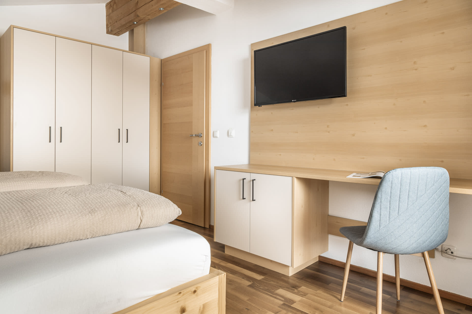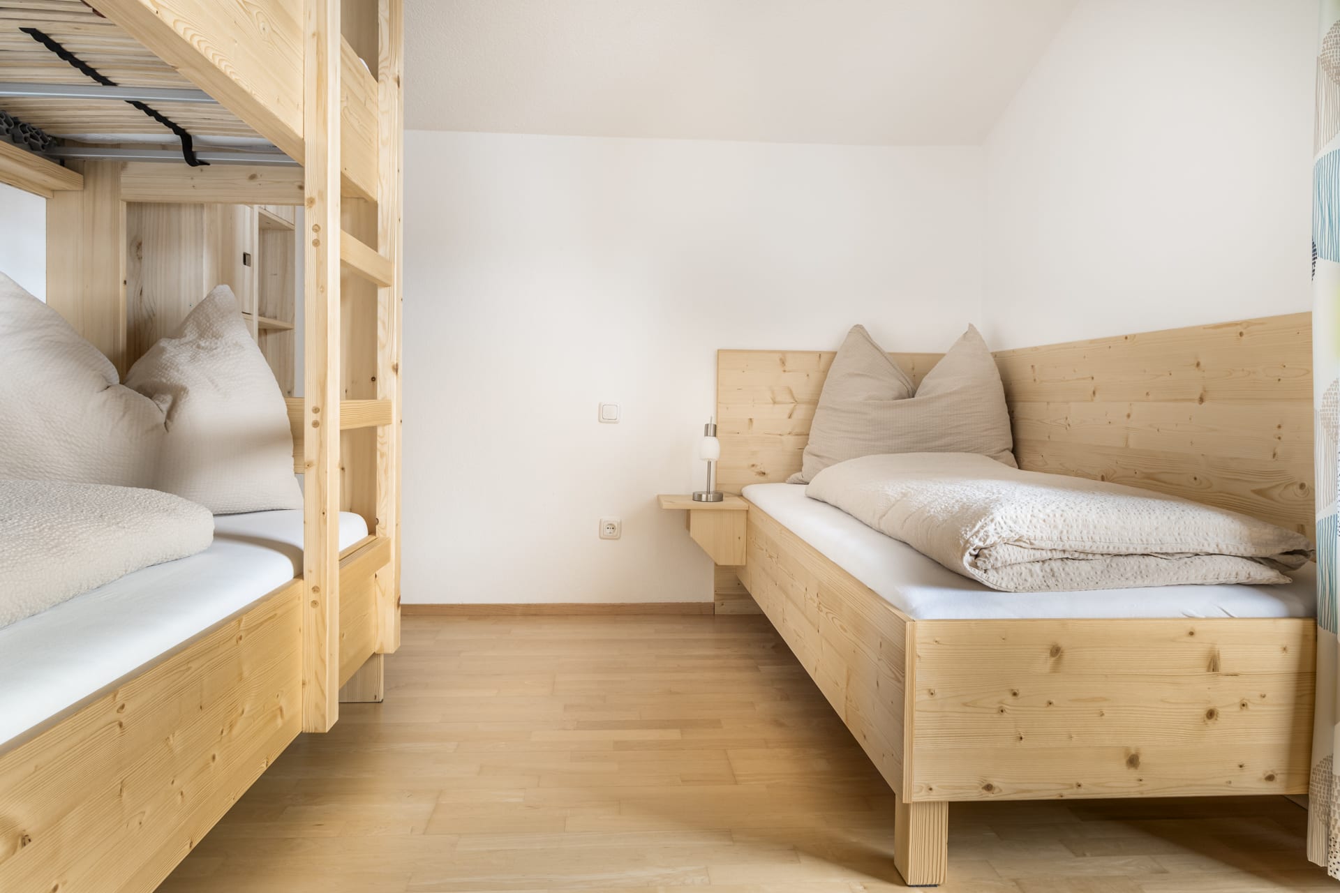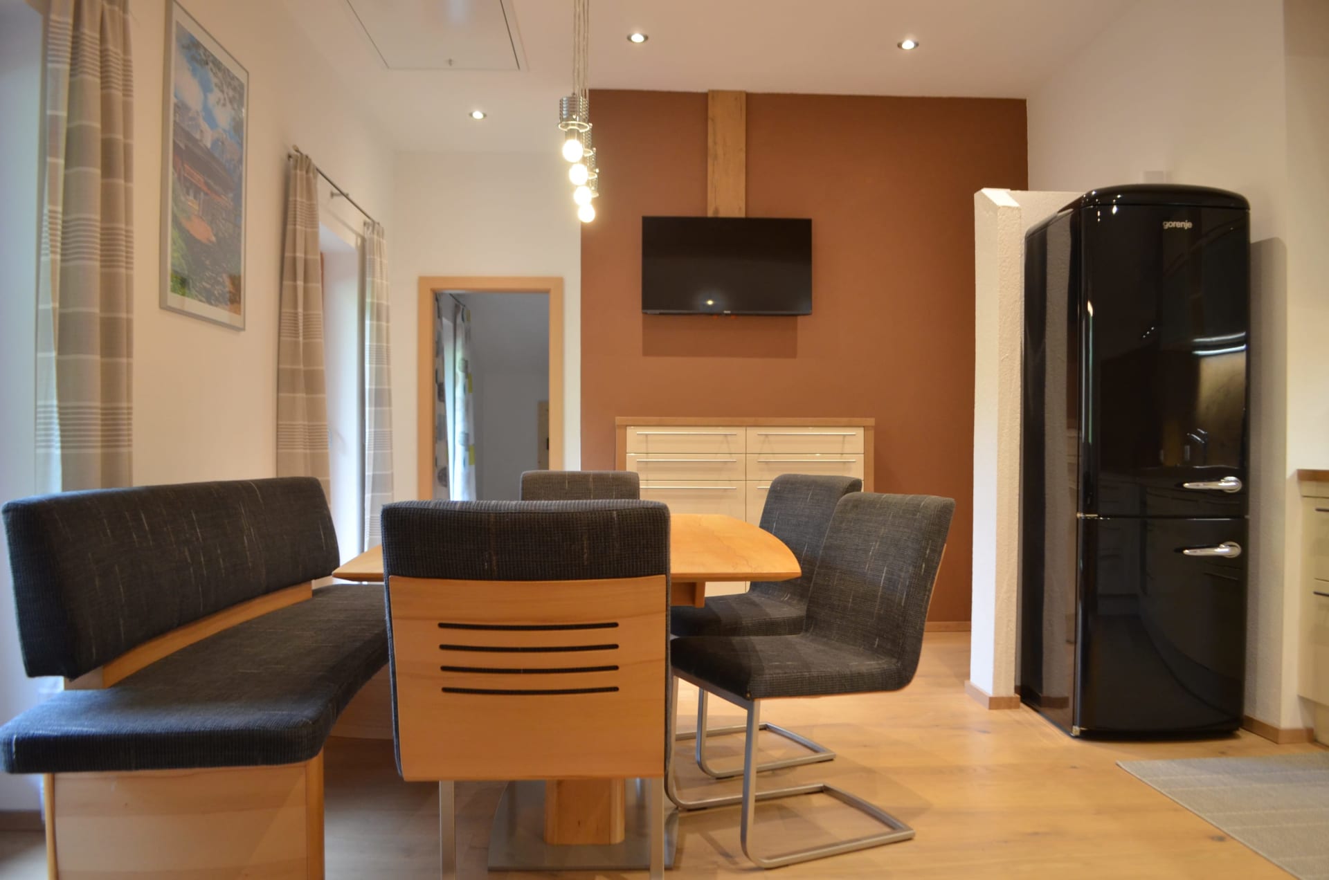 Neu renoviertes Appartement mit separatem Aufgang. Das Appartement mit Echtholzboden ist 92m² groß und bietet Platz für 2- 7 Personen. Es beinhaltet zwei getrennte Doppelbett- Schlafzimmer mit TV und ein Zimmer mit einem Einzelbett und einem Stockbett. Zudem gibt es eine große geräumige Wohnküche mit SAT- TV und einer gemütlichen Couch. Bad und WC sind getrennt. Kostenloses Wlan im Appartement vorhanden.