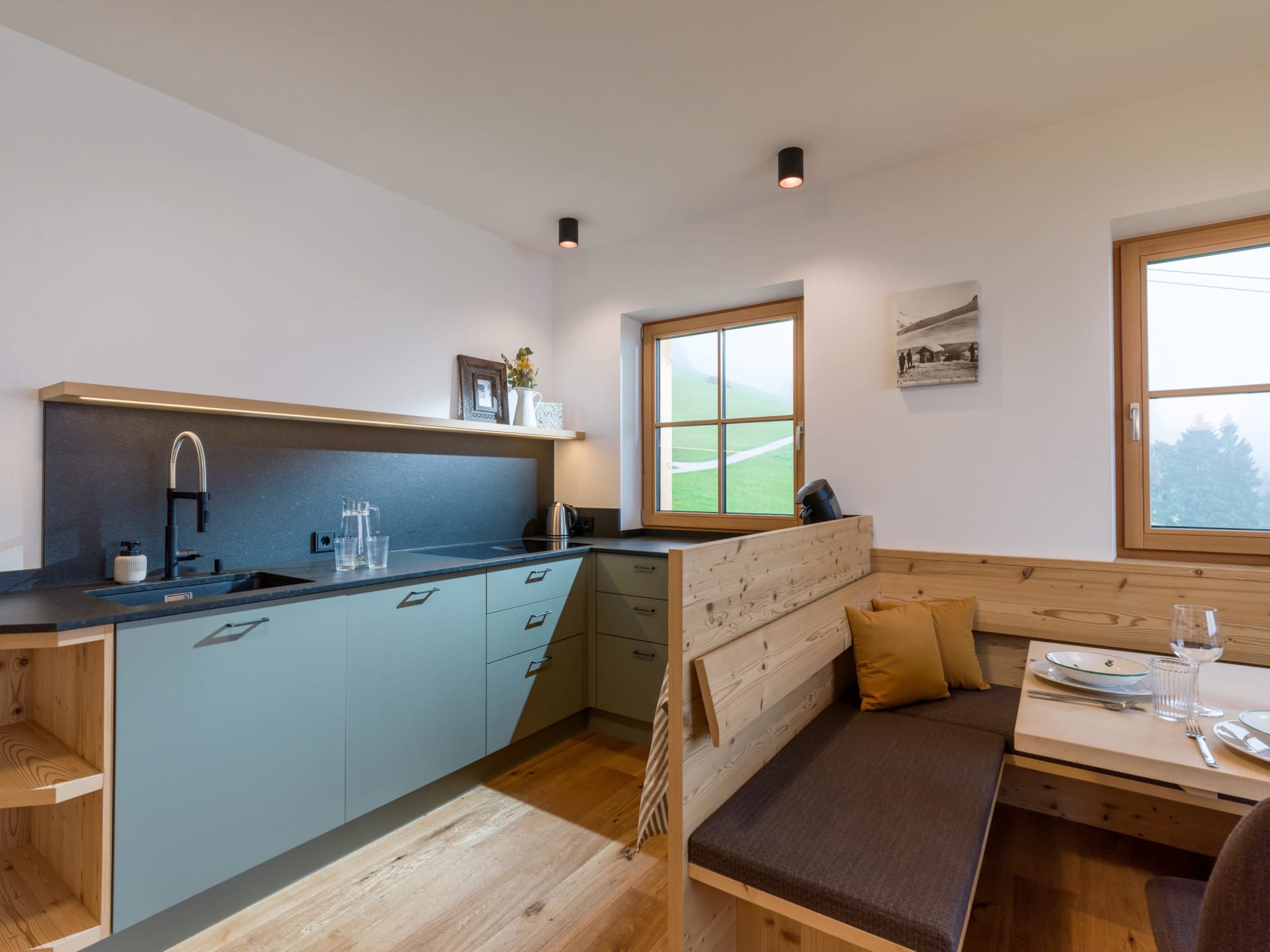 Das Appartement befindet sich mit ebenerdigem Zugang im obersten Stockwerk des Bauernhauses und zeichnet sich durch hochwertige Materialien und Liebe zum Detail aus.