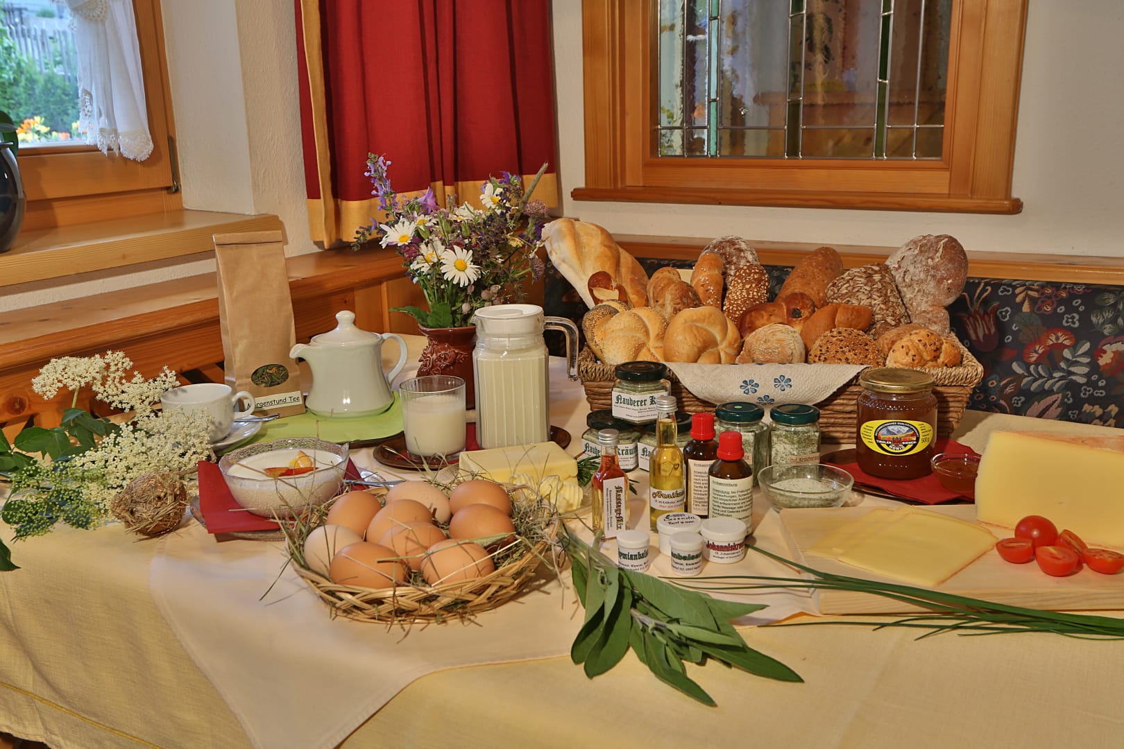 Kulinarisch verwöhnen wir Euch vom umfangreichen Brötchenservice, über die Genuss-Ecke bis zum Frühstückskorb à la Carte, den Ihr täglich nach Euren individuellen Wünschen mit hauseigenen bzw. regionalen Köstlichkeiten bestücken könnt.