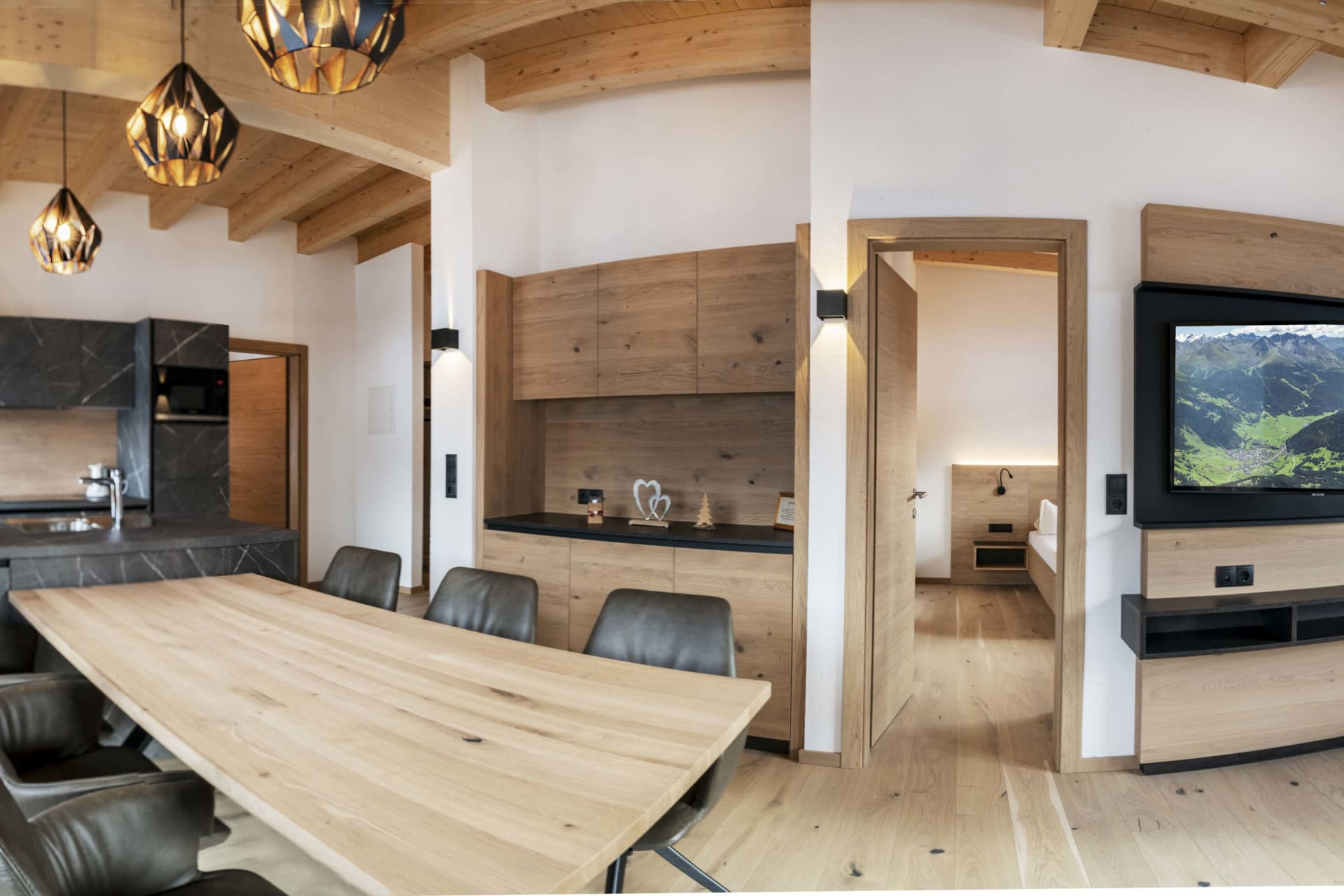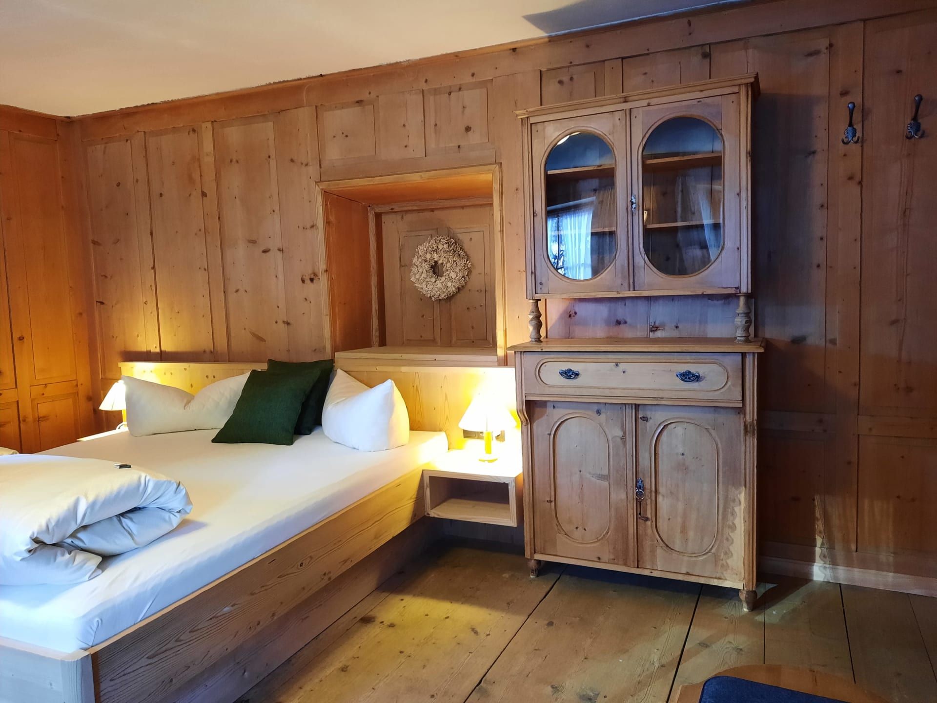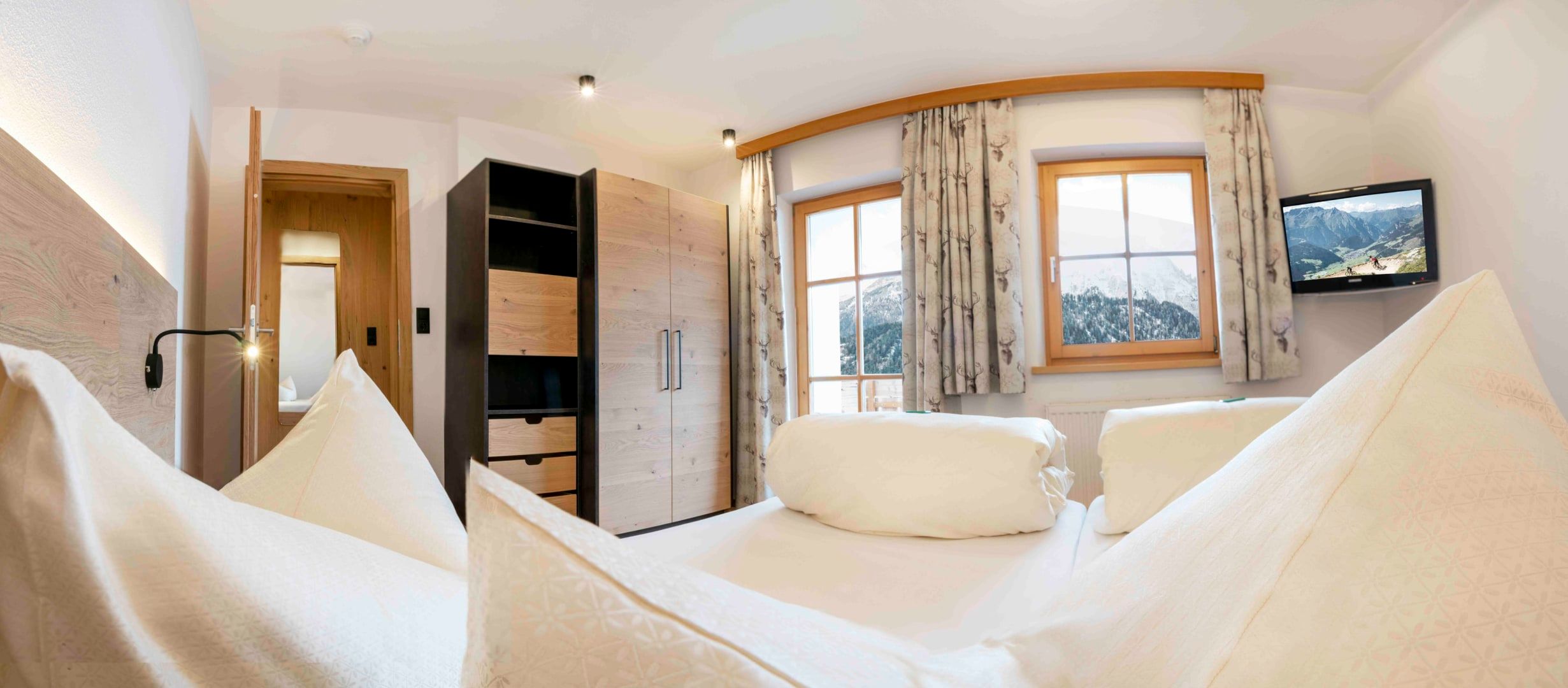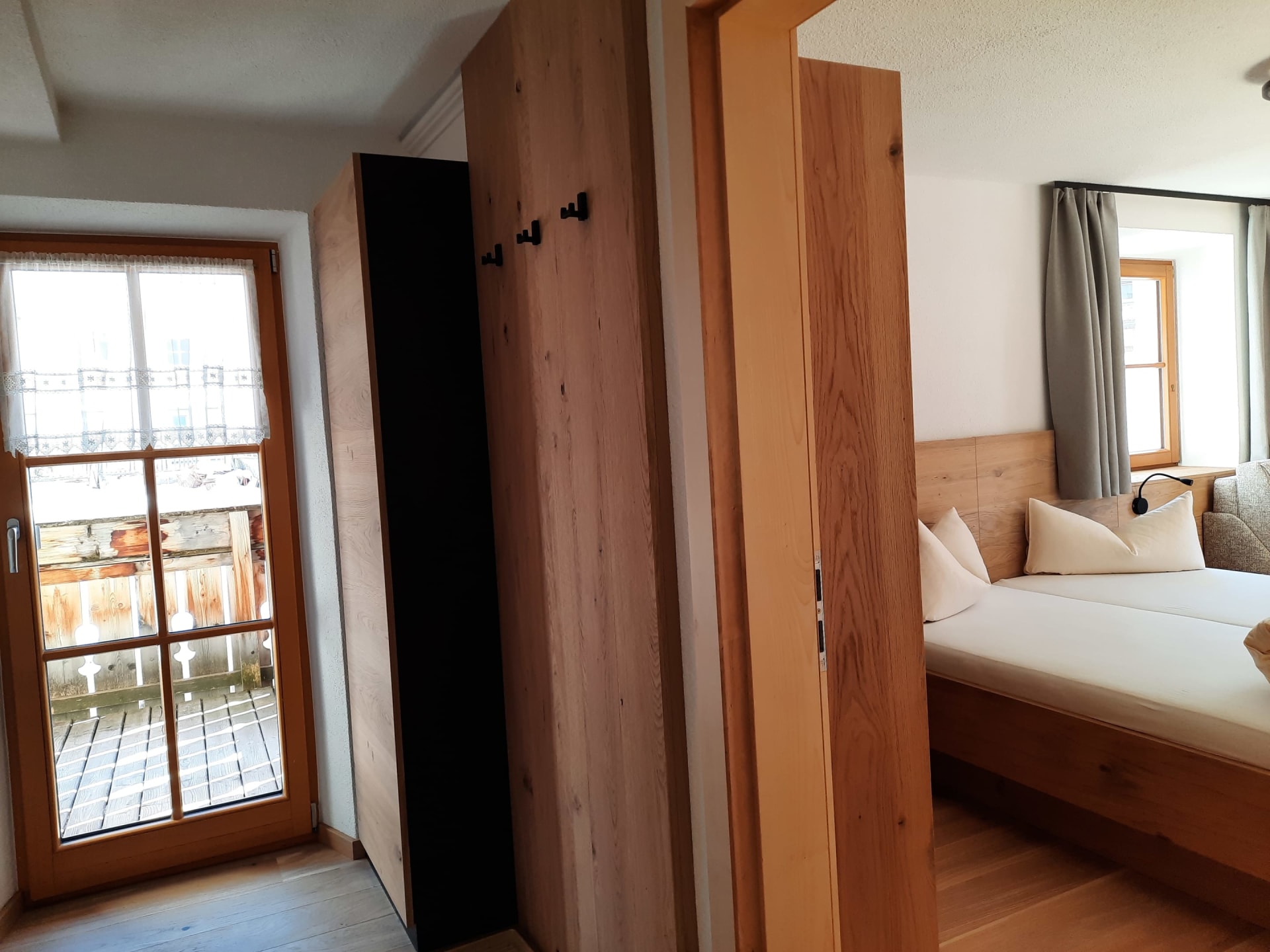 Sie beeindruckt mit ihrer historischen Tiroler Stube aus wohltuendem Fichten- und Zirbenholz und urigem Holzboden. Dort findest du ein Doppelbett und ein hochwertiges Schlafsofa für 2 weitere Personen, eine großzügige Schrankecke und einen TV. Von der Tiroler Stube aus kommst du auf den Westbalkon, wo du die Mittag- und Nachmittagssonne genießen kannst und den Blick auf die Berge.