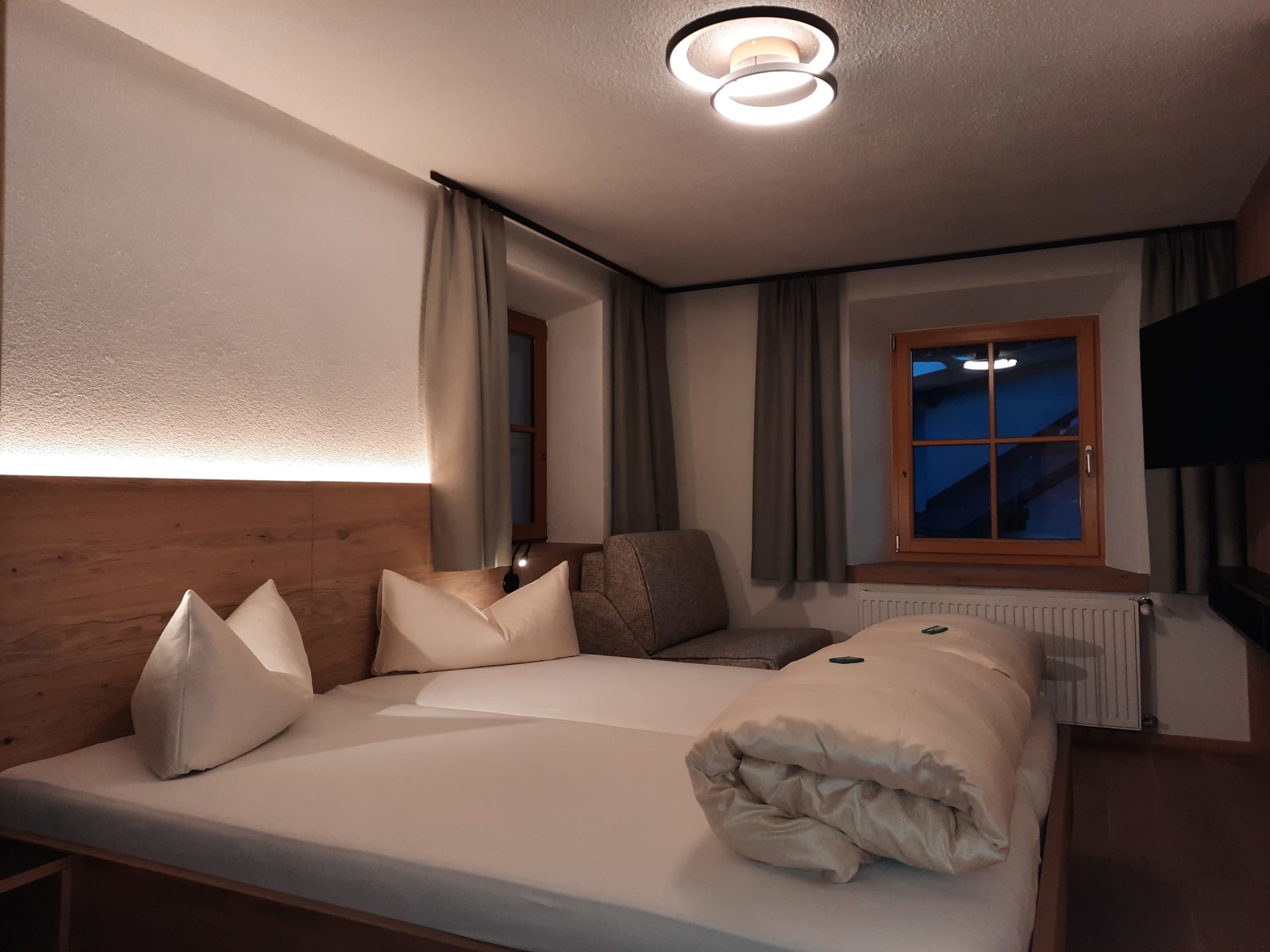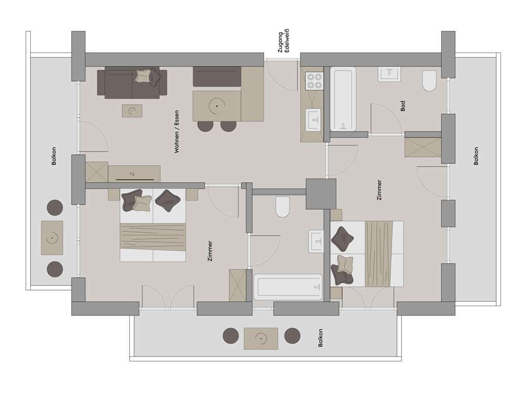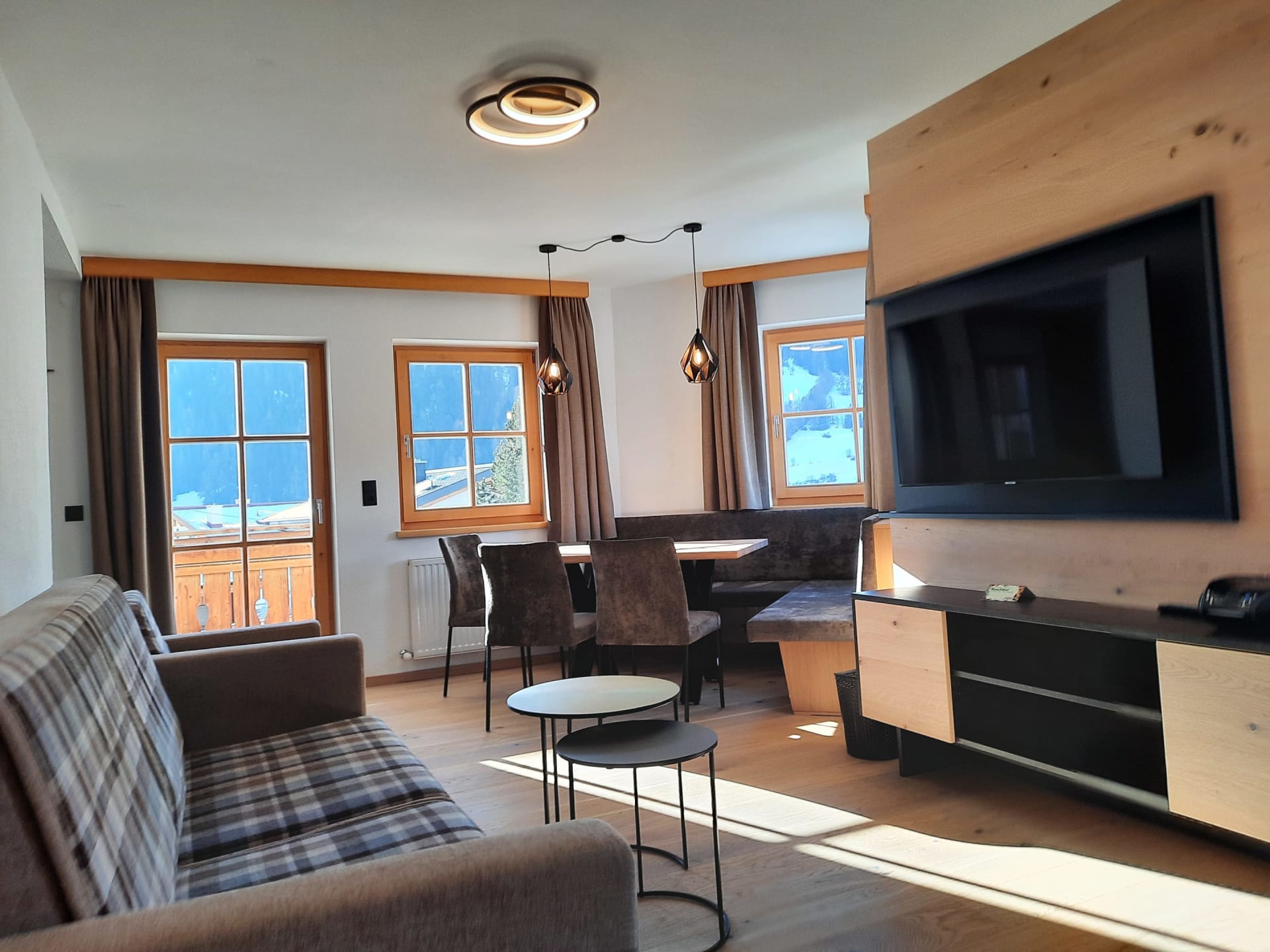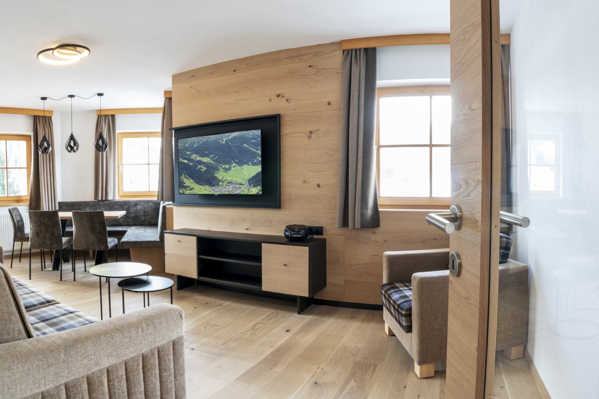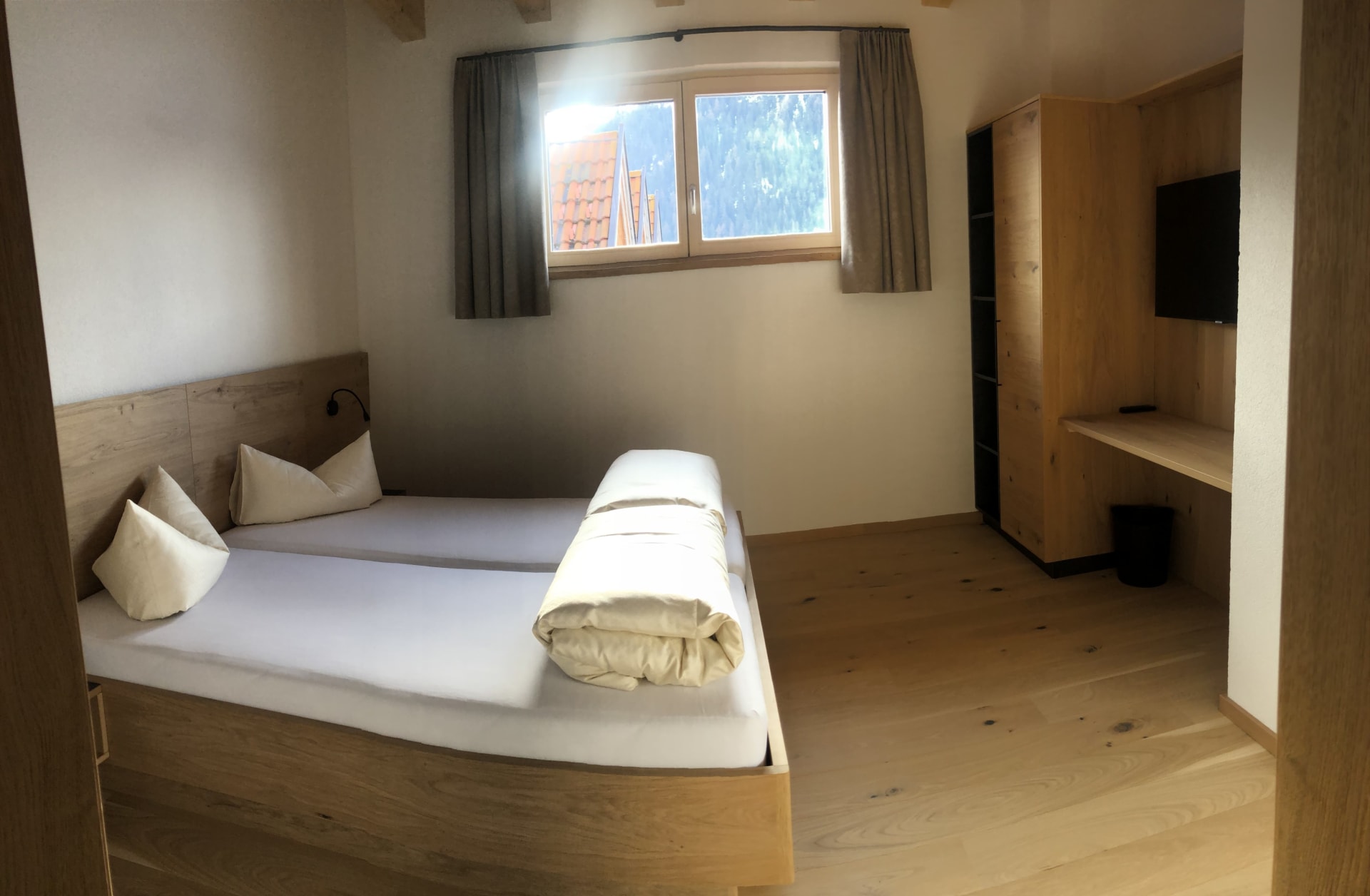 Sie beeindruckt mit ihrer historischen Tiroler Stube aus wohltuendem Fichten- und Zirbenholz und urigem Holzboden. Dort findest du ein Doppelbett und ein hochwertiges Schlafsofa für 2 weitere Personen, eine großzügige Schrankecke und einen TV. Von der Tiroler Stube aus kommst du auf den Westbalkon, wo du die Mittag- und Nachmittagssonne genießen kannst und den Blick auf die Berge.