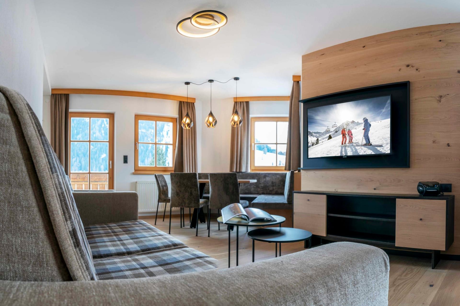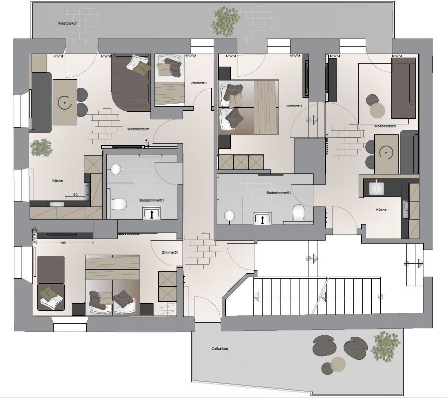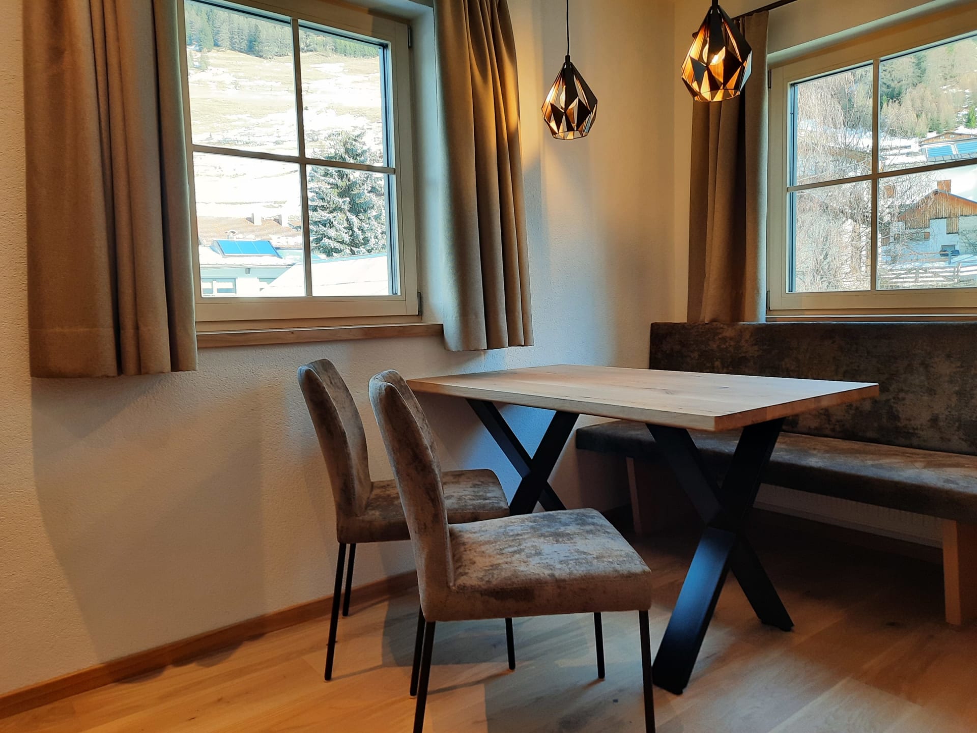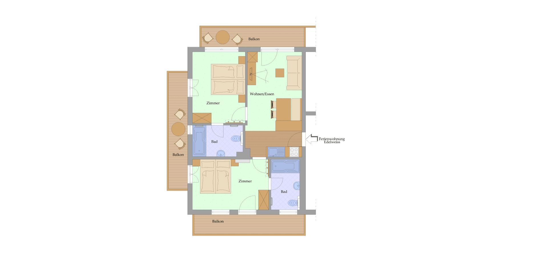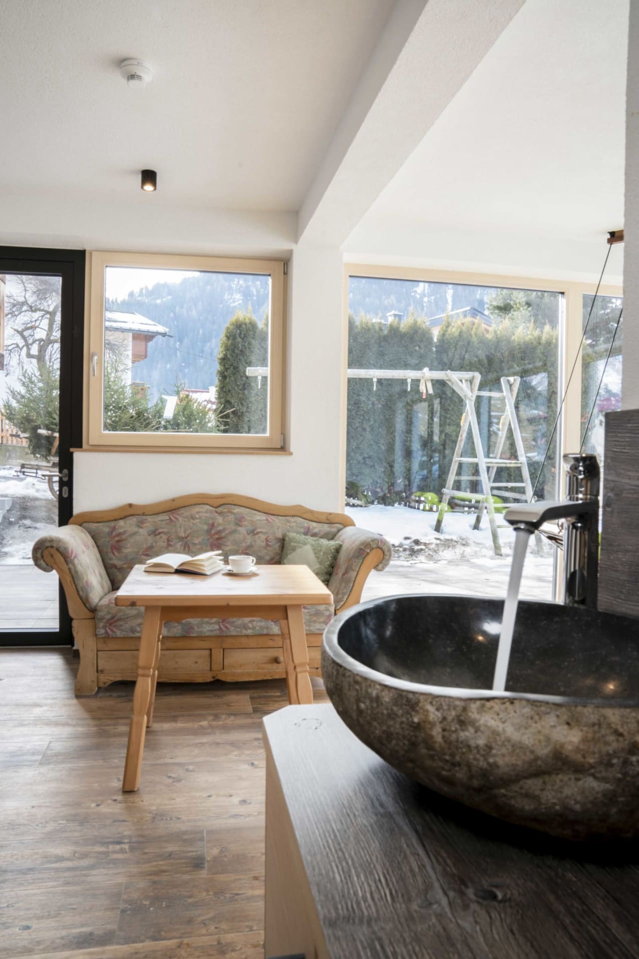 Sie beeindruckt mit ihrer historischen Tiroler Stube aus wohltuendem Fichten- und Zirbenholz und urigem Holzboden. Dort findest du ein Doppelbett und ein hochwertiges Schlafsofa für 2 weitere Personen, eine großzügige Schrankecke und einen TV. Von der Tiroler Stube aus kommst du auf den Westbalkon, wo du die Mittag- und Nachmittagssonne genießen kannst und den Blick auf die Berge.