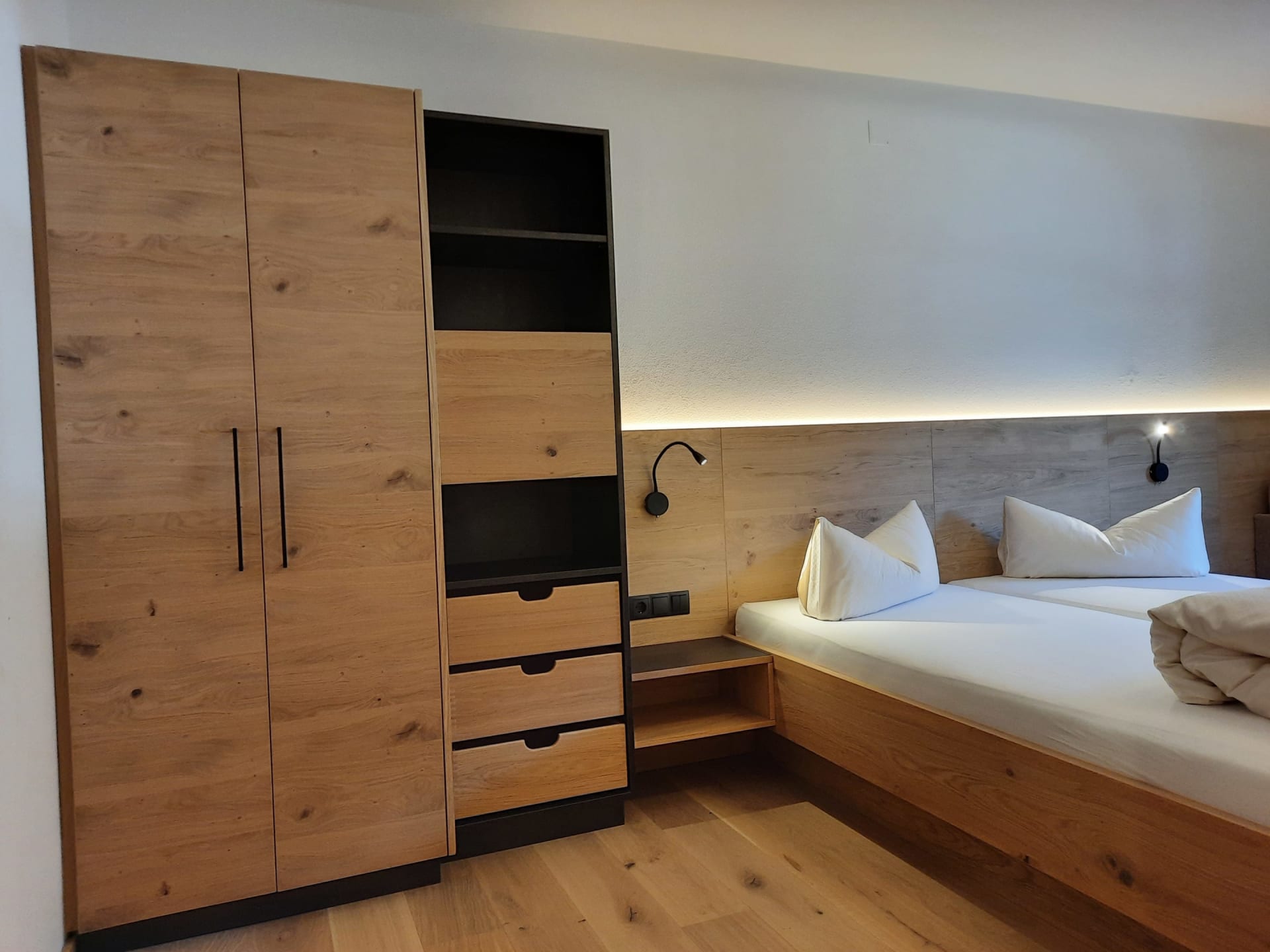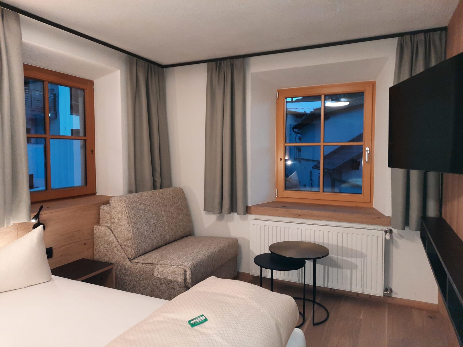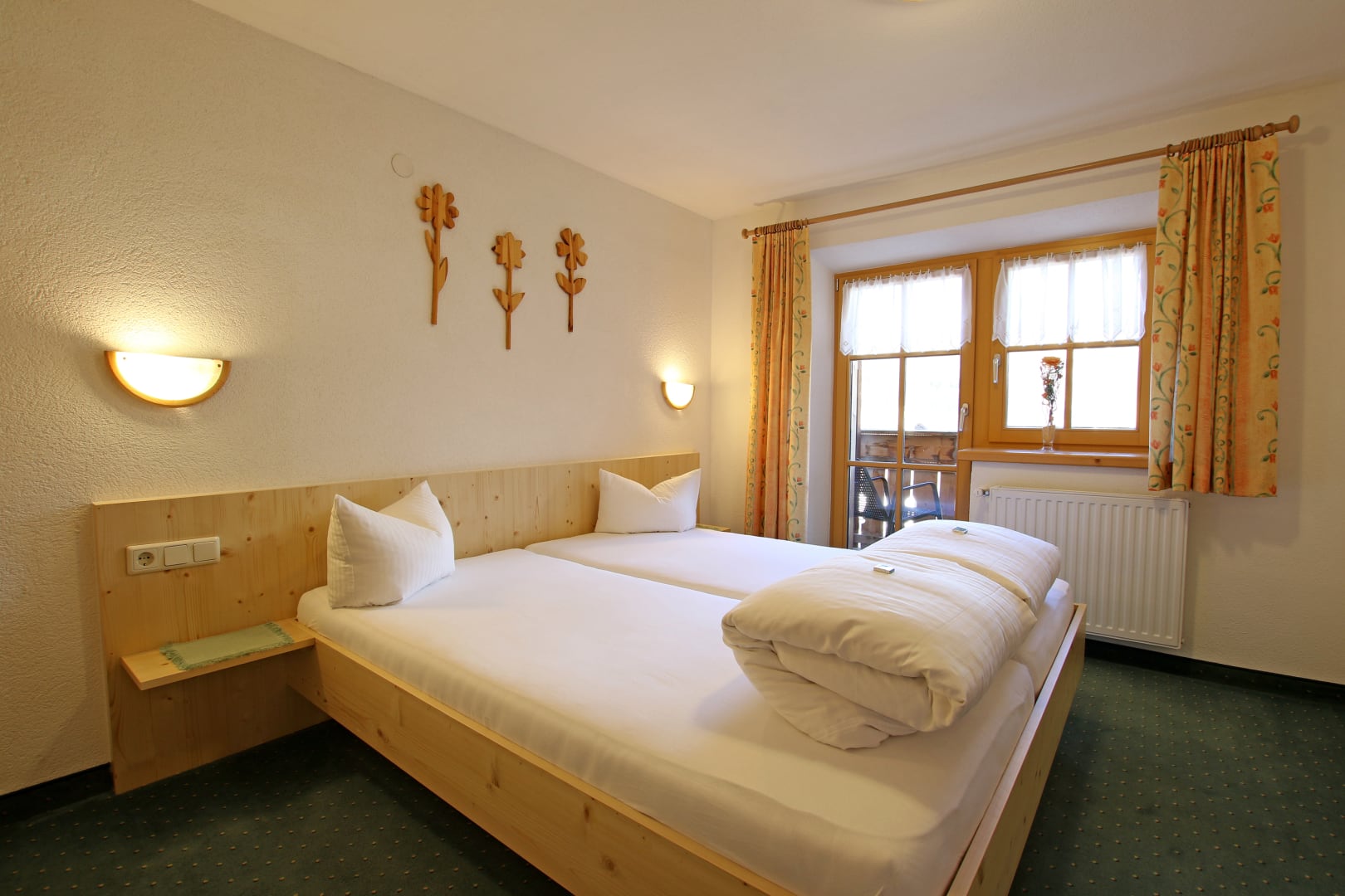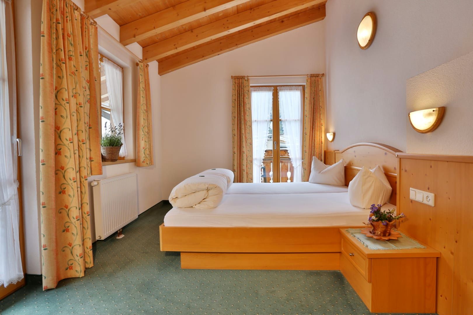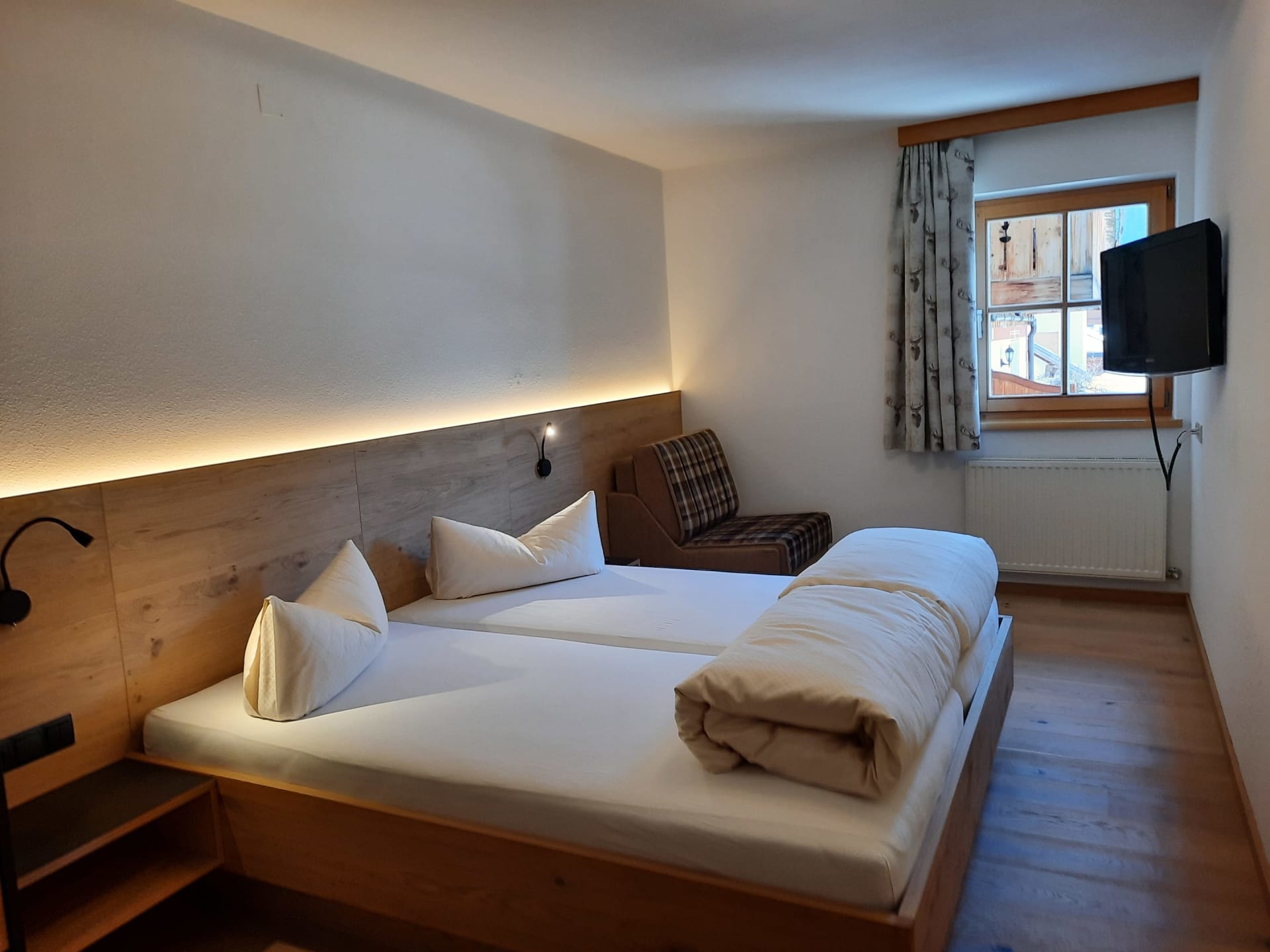 Sie beeindruckt mit ihrer historischen Tiroler Stube aus wohltuendem Fichten- und Zirbenholz und urigem Holzboden. Dort findest du ein Doppelbett und ein hochwertiges Schlafsofa für 2 weitere Personen, eine großzügige Schrankecke und einen TV. Von der Tiroler Stube aus kommst du auf den Westbalkon, wo du die Mittag- und Nachmittagssonne genießen kannst und den Blick auf die Berge.