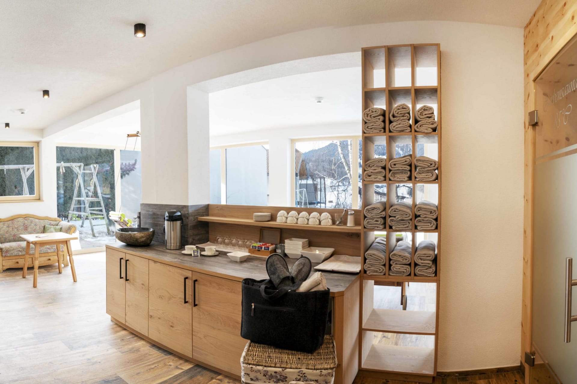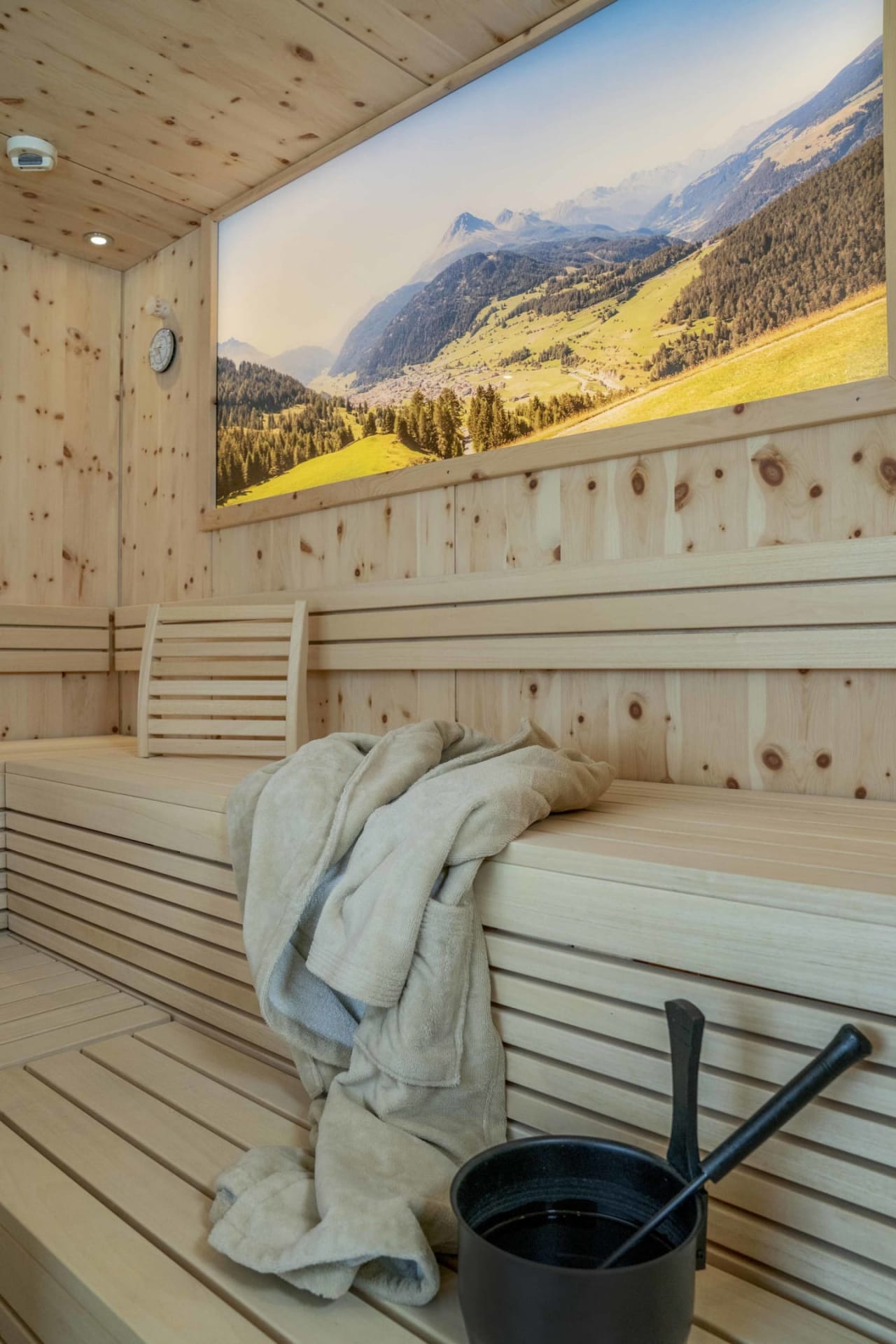 Im neu geschaffenen Wellnessbereich lasst Ihr den Tag ausklingen mit der wohltuenden Wärme der Infrarotkabine, in der duftenden finnischen Sauna aus Zirbenholz und im Ruheraum mit Entspannungsliegen und herrlichem Panoramablick.