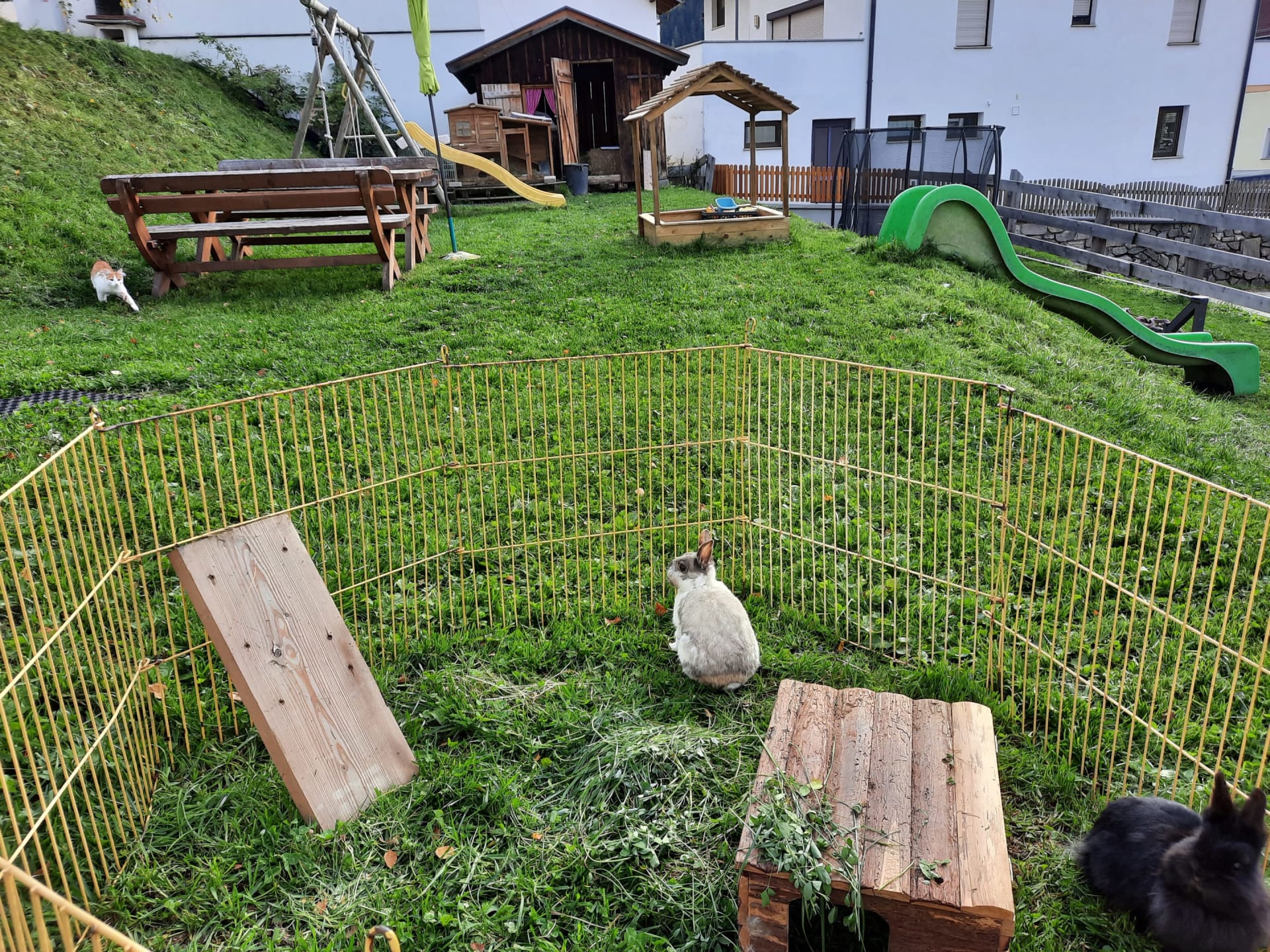 Eure Kinder finden Spaß im Spielzimmer mit vielen Spielsachen, auf der Spielwiese mit Trampolin und Heuhütte sowie beim Besuch unserer Tiere im Stall und auf der Hofweide. Der Höhepunkt ist immer das wöchentliche Ponyreiten.