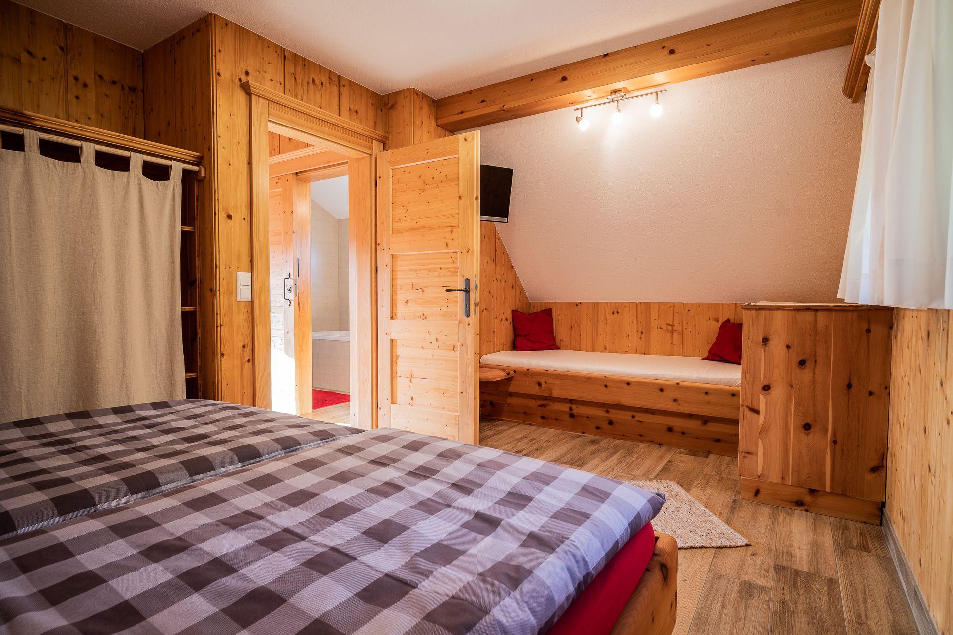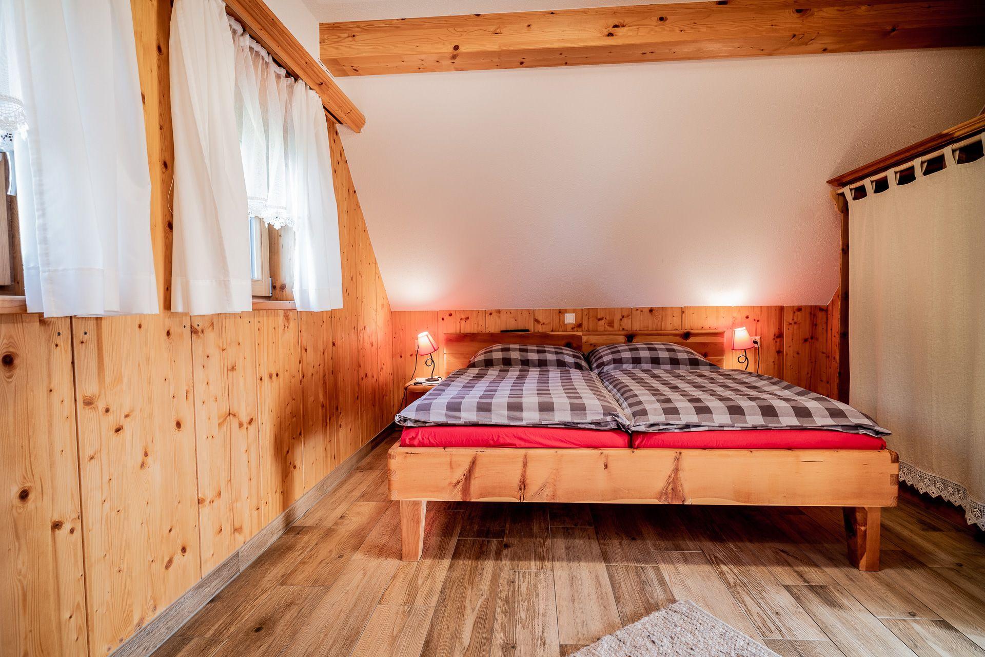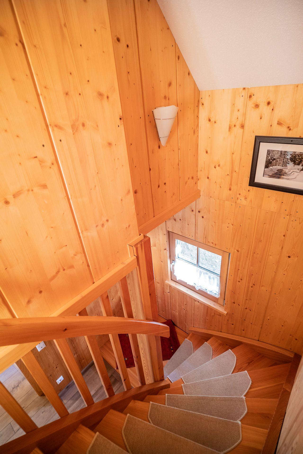 Der Außenbereich des Ferienhauses ist ebenso beeindruckend und lädt mit einer großzügigen Terrasse, ausgestattet mit bequemen Holzliegen und einem Sonnenschirm, zum Verweilen im Freien ein. Der Balkon bietet eine zusätzliche Möglichkeit, die ruhige Umgebung und die schöne Aussicht ins Tal zu genießen. Ein großer Garten zur alleinigen Nutzung und ausreichende Parkmöglichkeiten runden das Bild ab und machen das Haus zu einem wahren Juwel inmitten der Natur.