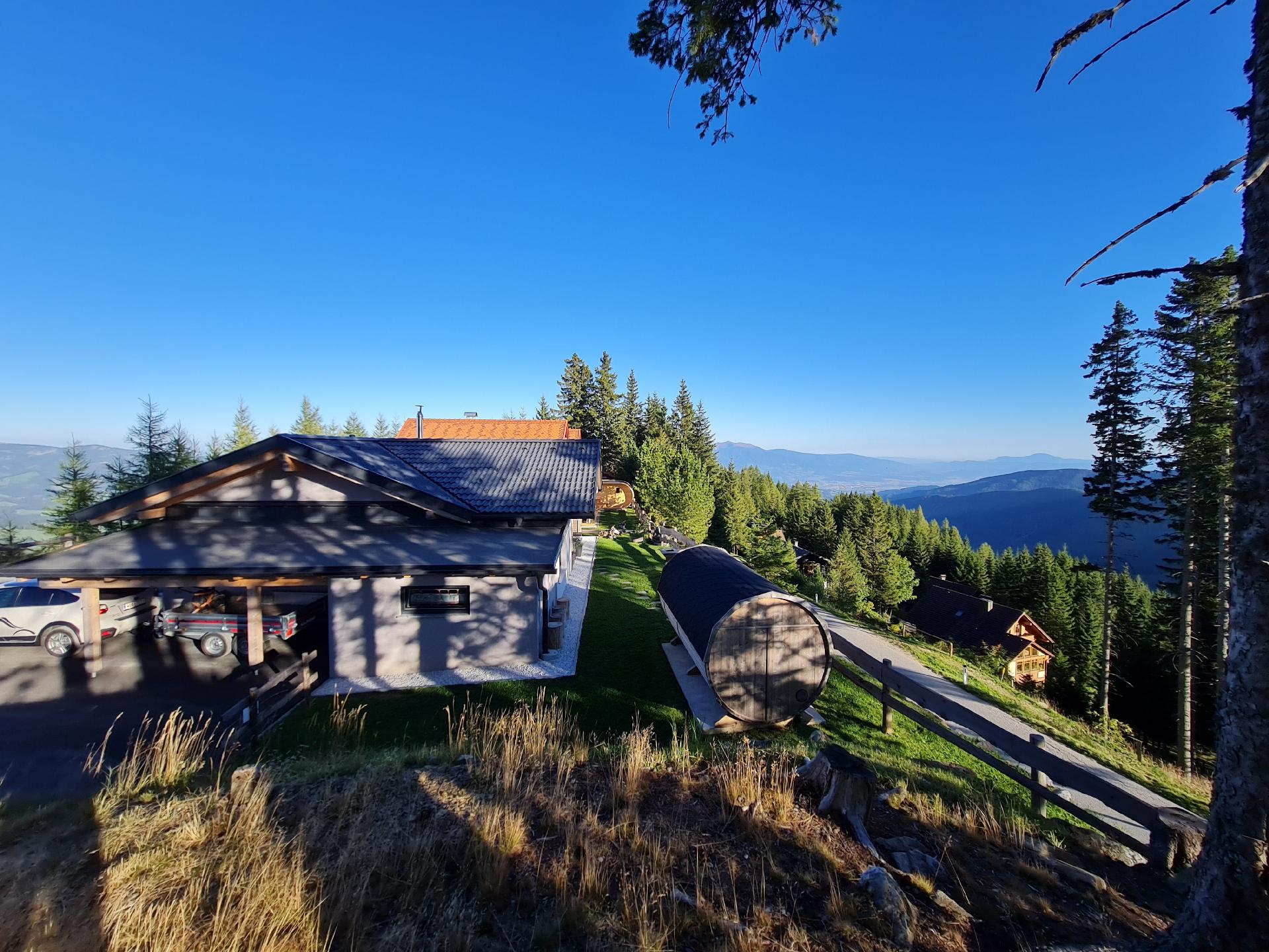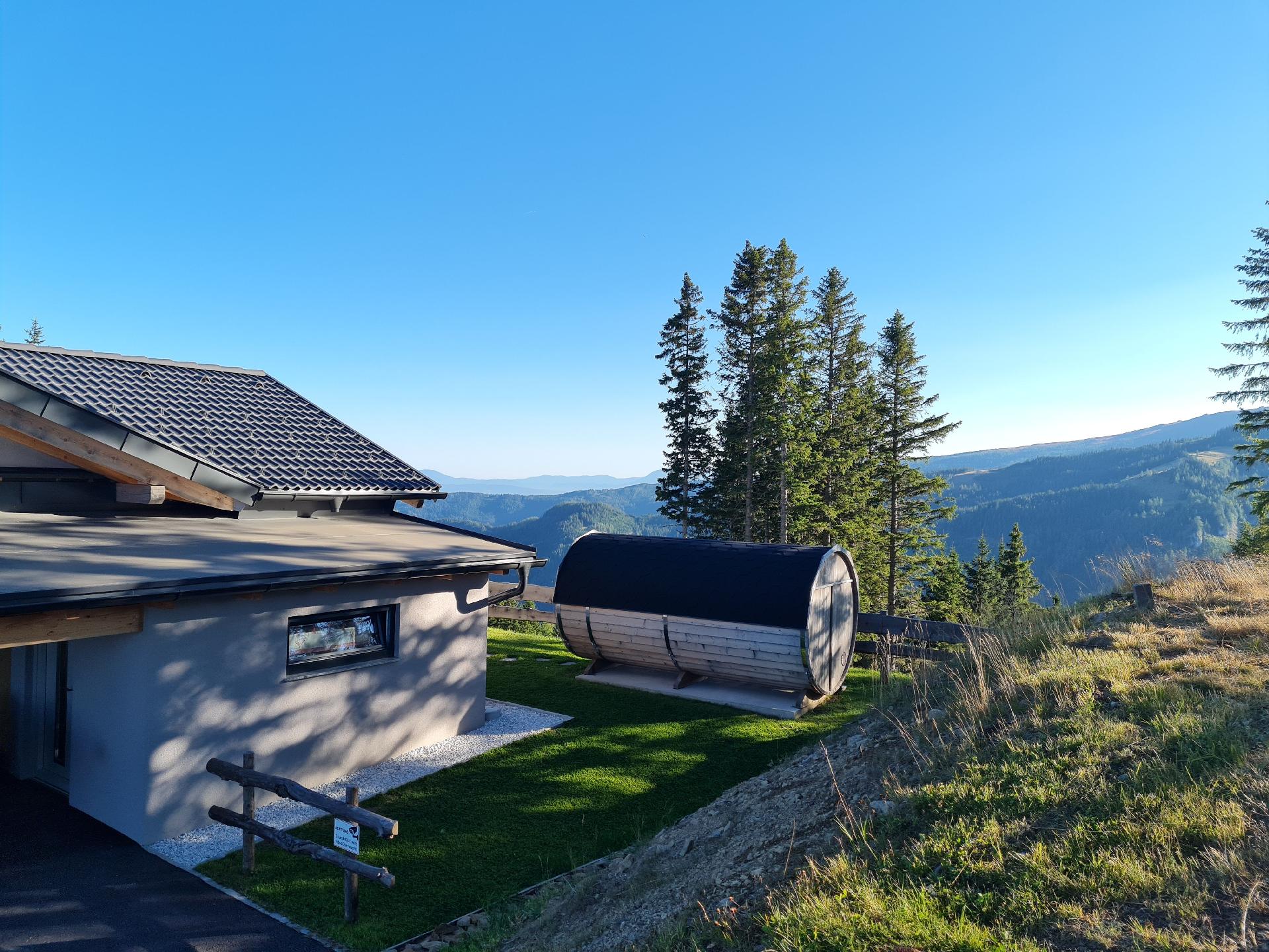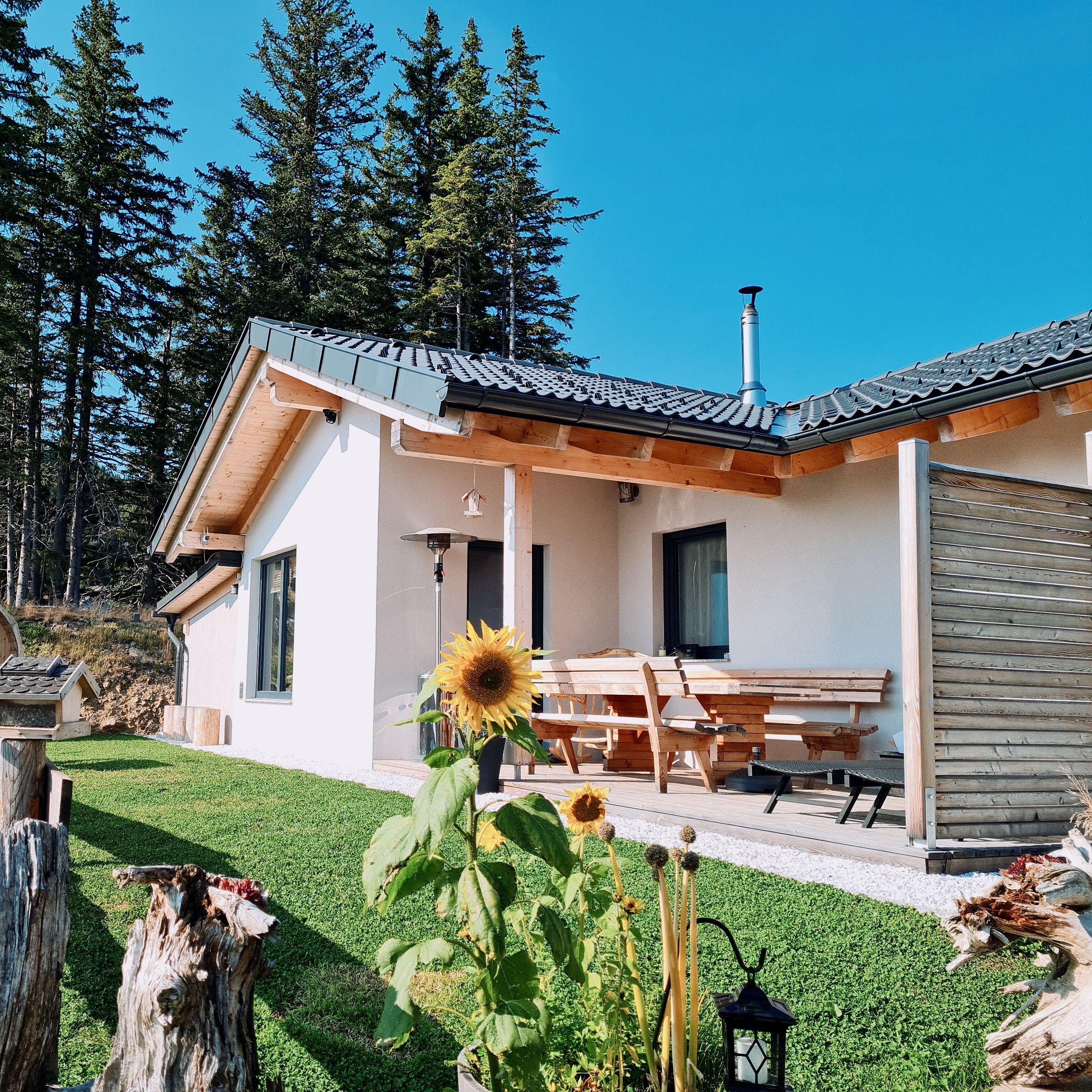 Der Außenbereich des Hauses lädt zum Entspannen und Genießen der frischen Bergluft ein. Eine schöne Terrasse mit einem malerischen Garten, der ausschließlich Ihnen zur Verfügung steht, ist der ideale Ort, um sich zurückzulehnen und die Ruhe der Umgebung zu genießen. Für ein unvergleichliches Wellness-Erlebnis können Sie die private Fasssauna nutzen oder gemütliche Abende an der Feuerschale verbringen.