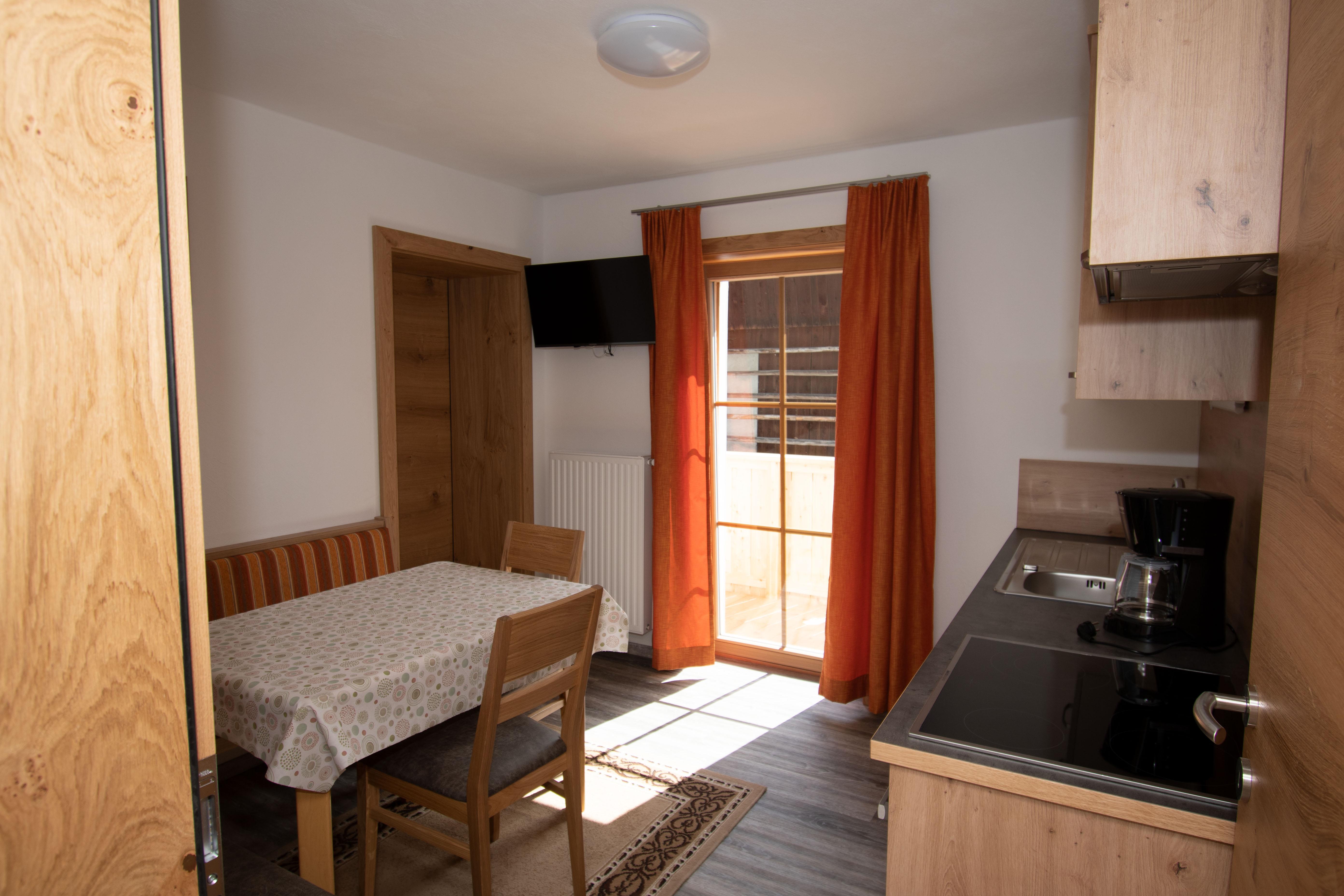 Wohnraum Der Wohnraum bildet das Zentrum der Ferienwohnung. Hier kann gemeinsam auf der gemütlichen Couch entspannt werden. Ein Fernseher mit Digital-TV erlaubt den Zugriff auf viele Sender und Anschlüsse für Spielkonsolen. Die großen Fenster bieten einen super Blick auf die umliegende Bergwelt und versorgen die Wohnung mit stehts viel Licht. Damit findet jeder in seinem Zimmer einen Rückzugort und der Wohnraum bildet einen sozialen Treffpunkt.