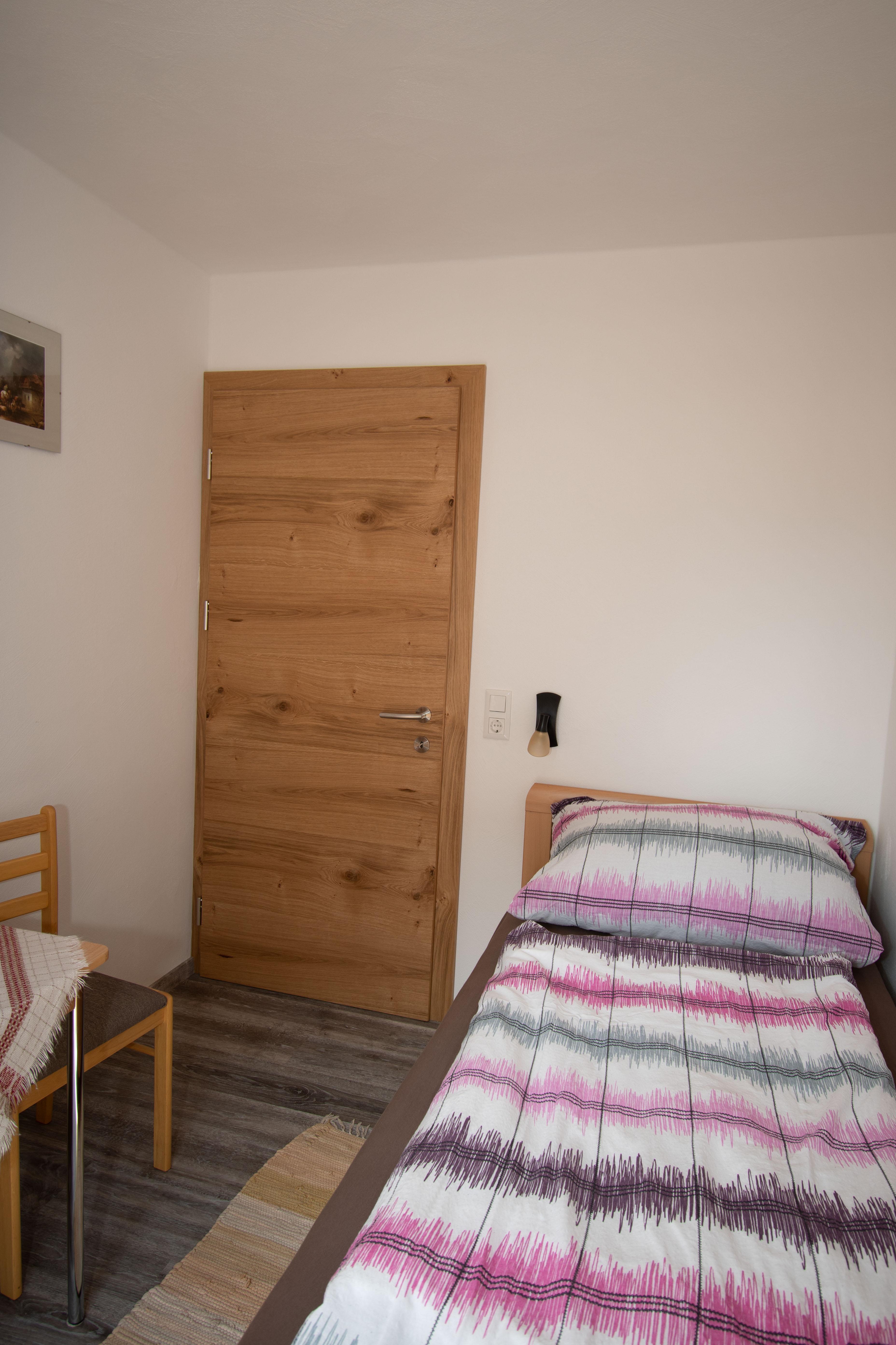 Einzel-Zimmer Das Einzelzimmer bietet sich gut für den Anführer der Kinderbande oder das dritte Rad am Wagen einer Pärchengruppe an. Es umfasst die gleiche Ausstattung wie das Doppelzimmer und bietet zudem viel Stauraum in einem Schrank. Hier können z.B. Ausrüstungen für Bergsteiger, Ski-oder Snowboardsportler verstaut werden. Sollte man nur zu zweit sein, nutzt man das Zimmer als Gepäckraum.