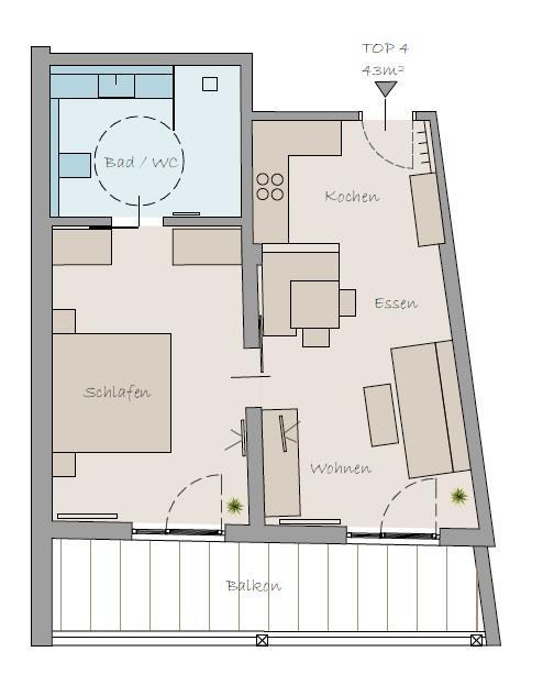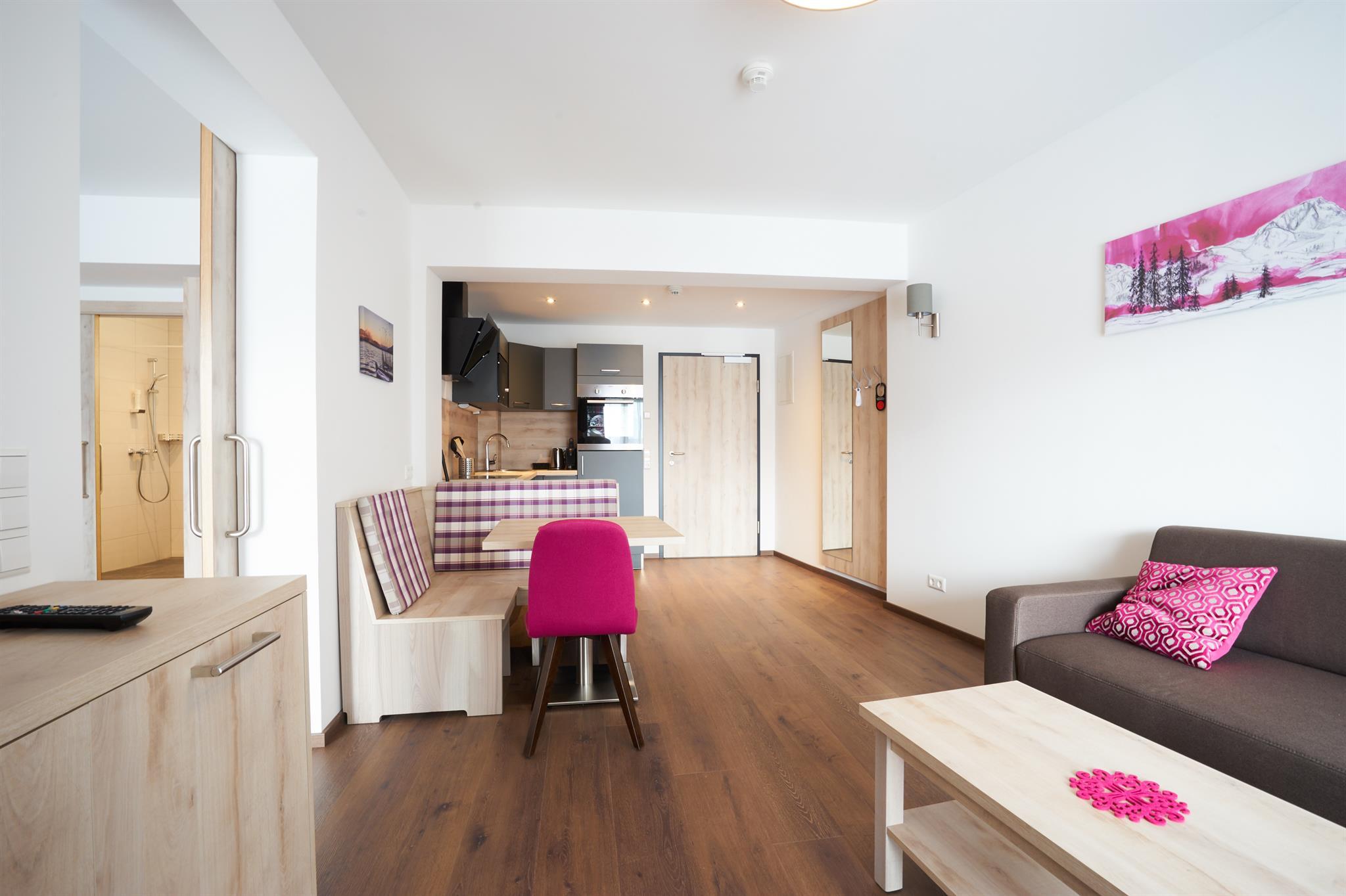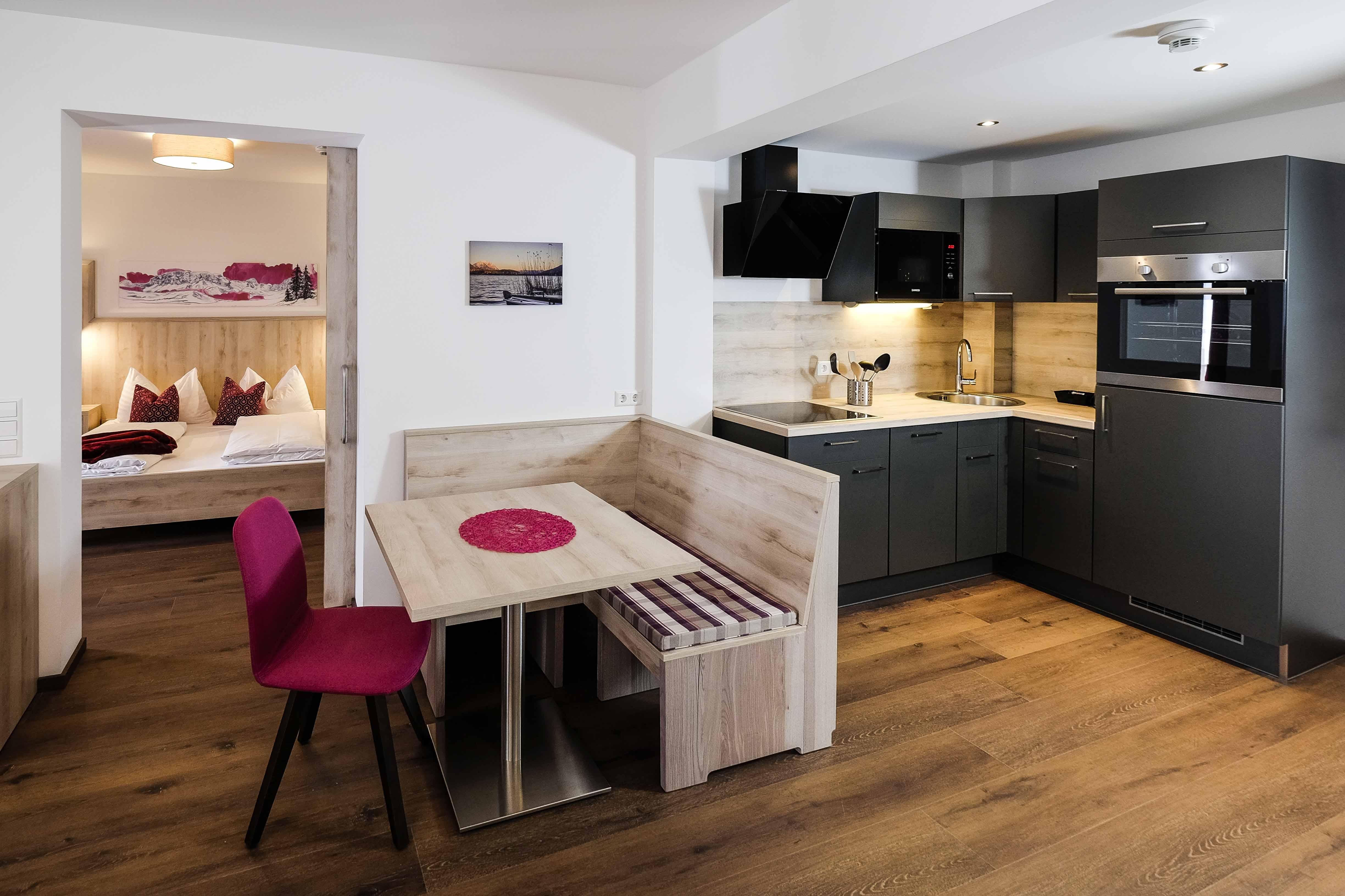 Doppelbett Wohnküche mit Essecke und Couch (als Zusatzbett nutzbar)