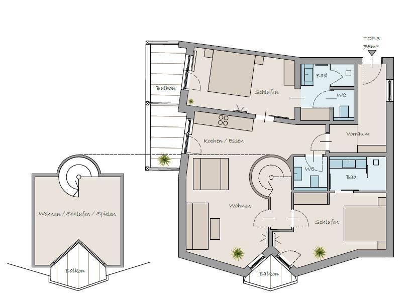 1 Dreibettzimmer (Kinder) mit Wendeltreppe , Balkon