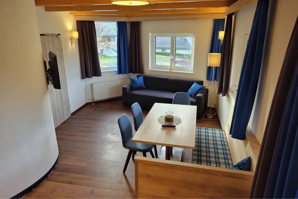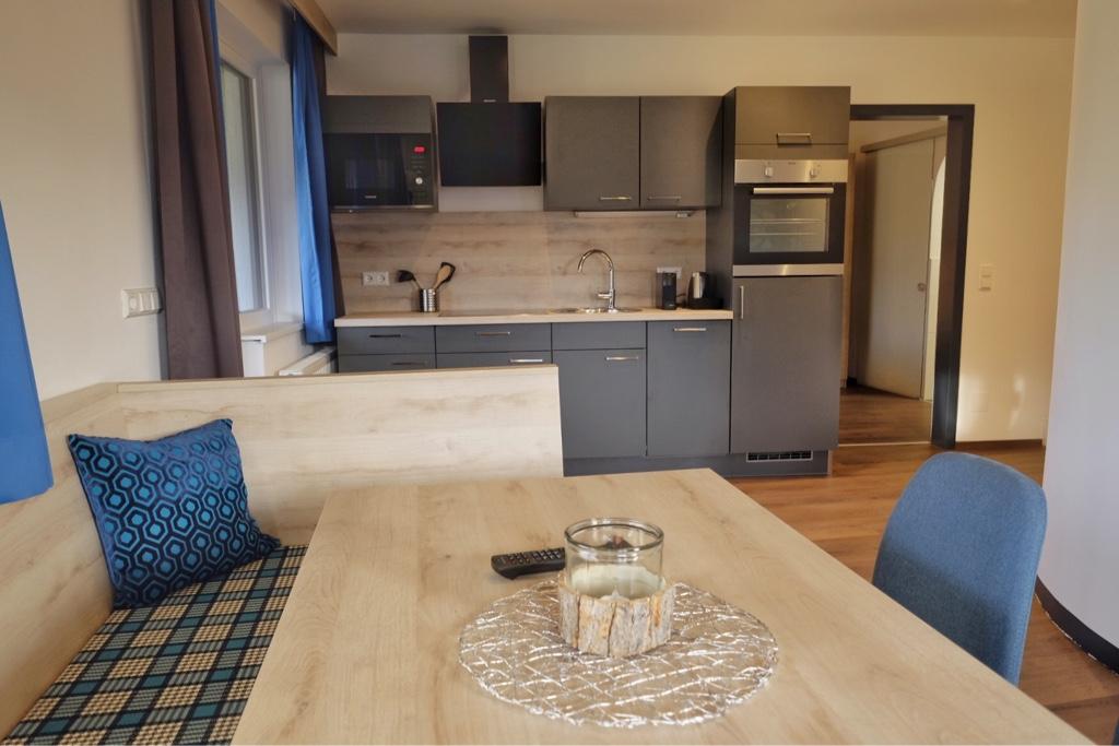 großzügige Wohnküche mit Flat Tv, freies Wlan im gesamten Hotel