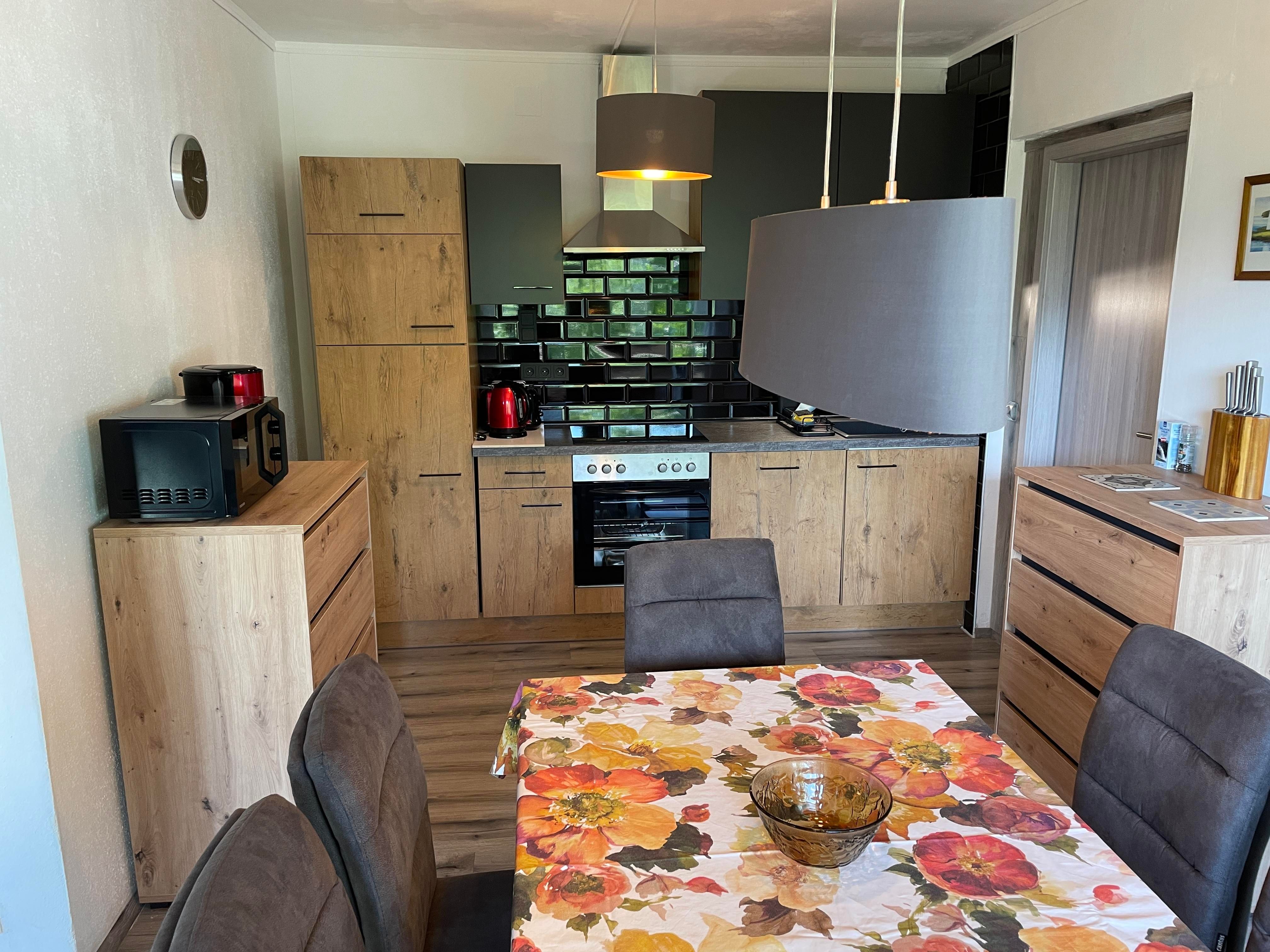 Appartement Wellington: es ist das unterste Appartement und verfügt über einen separaten Eingang. Es bietet zwei Schlafzimmer, ein Duschbad, einen Wohnraum mit Esstisch, Küchenzeile, Sofa, Fernseher und einen Holzofen. Die Küchenzeile ist voll ausgestattet mit Kühl-Gefrierkombination, Backofen, Toaster, Wasserkocher, Mikrowelle, Kaffeemaschine und Geschirrspüler. Durch den Wohnraum gelangt man in das zweite Schlafzimmer (zwei Einzelbetten) und von dort auf die Terrasse. Das Appartement ist zusätzlich zum separaten Eingang stufenlos durch den Ski- und Fahrradkeller zu erreichen. Es ist jedoch nicht behindertengerecht (steile Straße). Das gesamte Appartement ist mit Laminat/Fliesen ausgestattet.