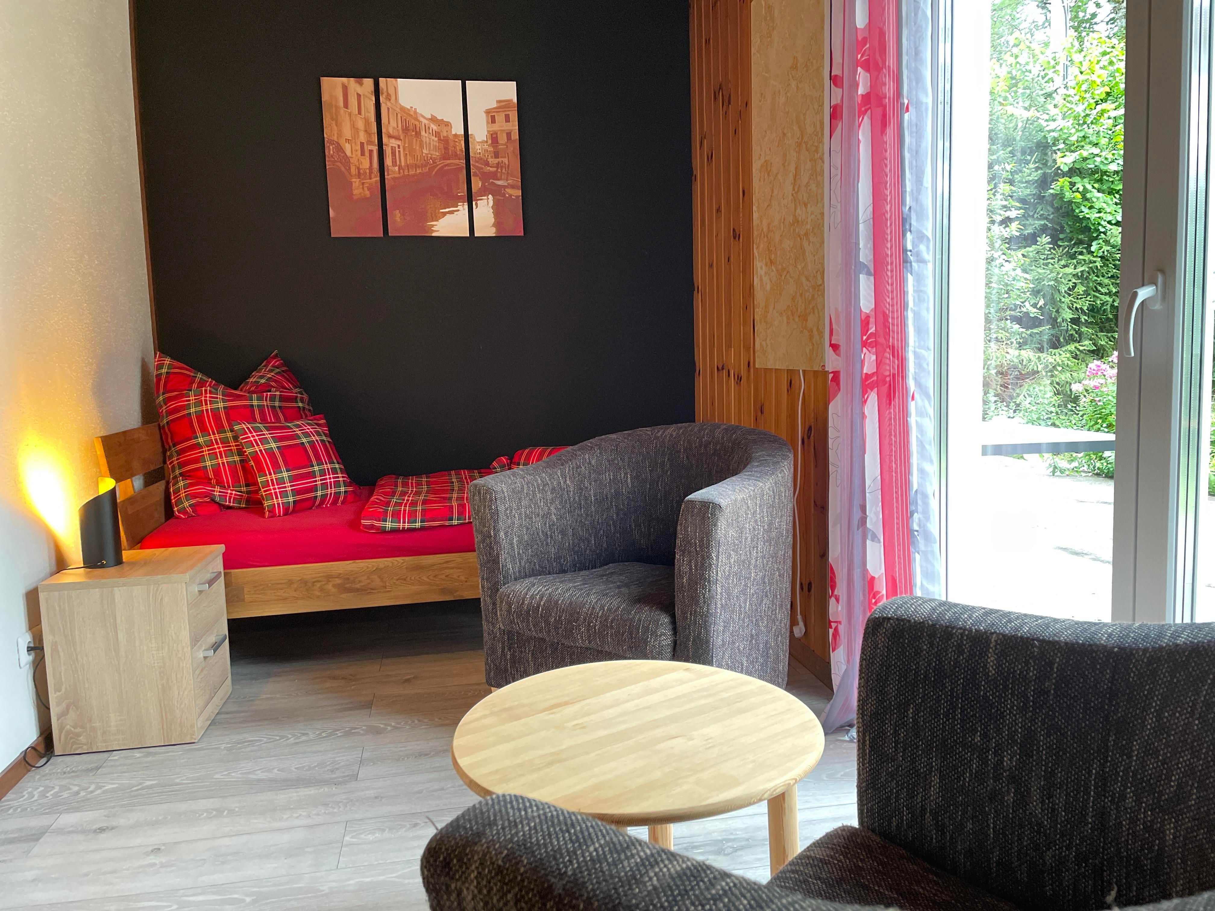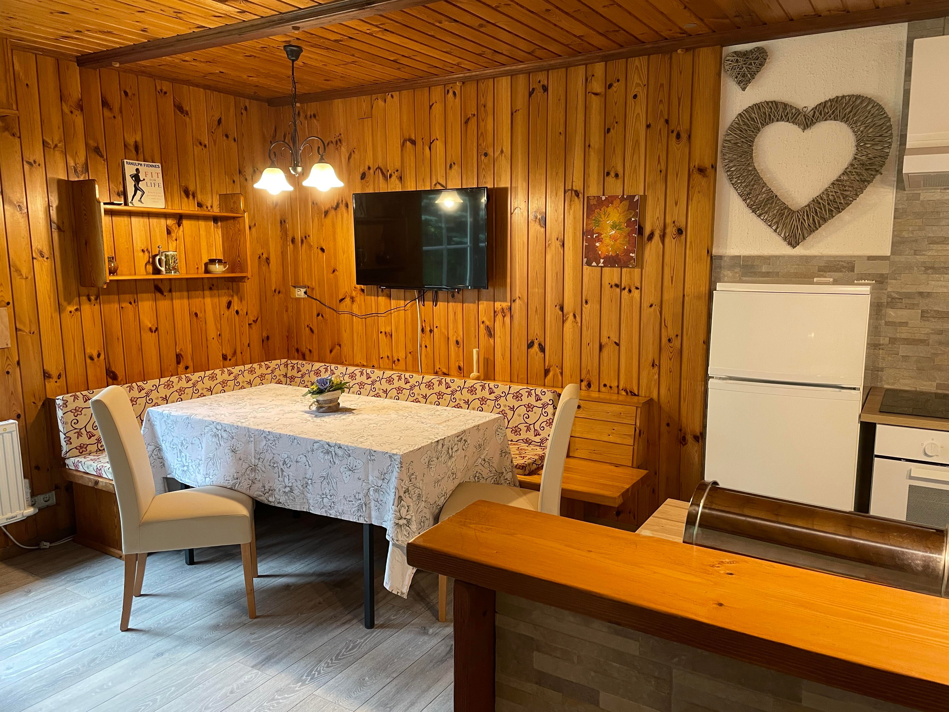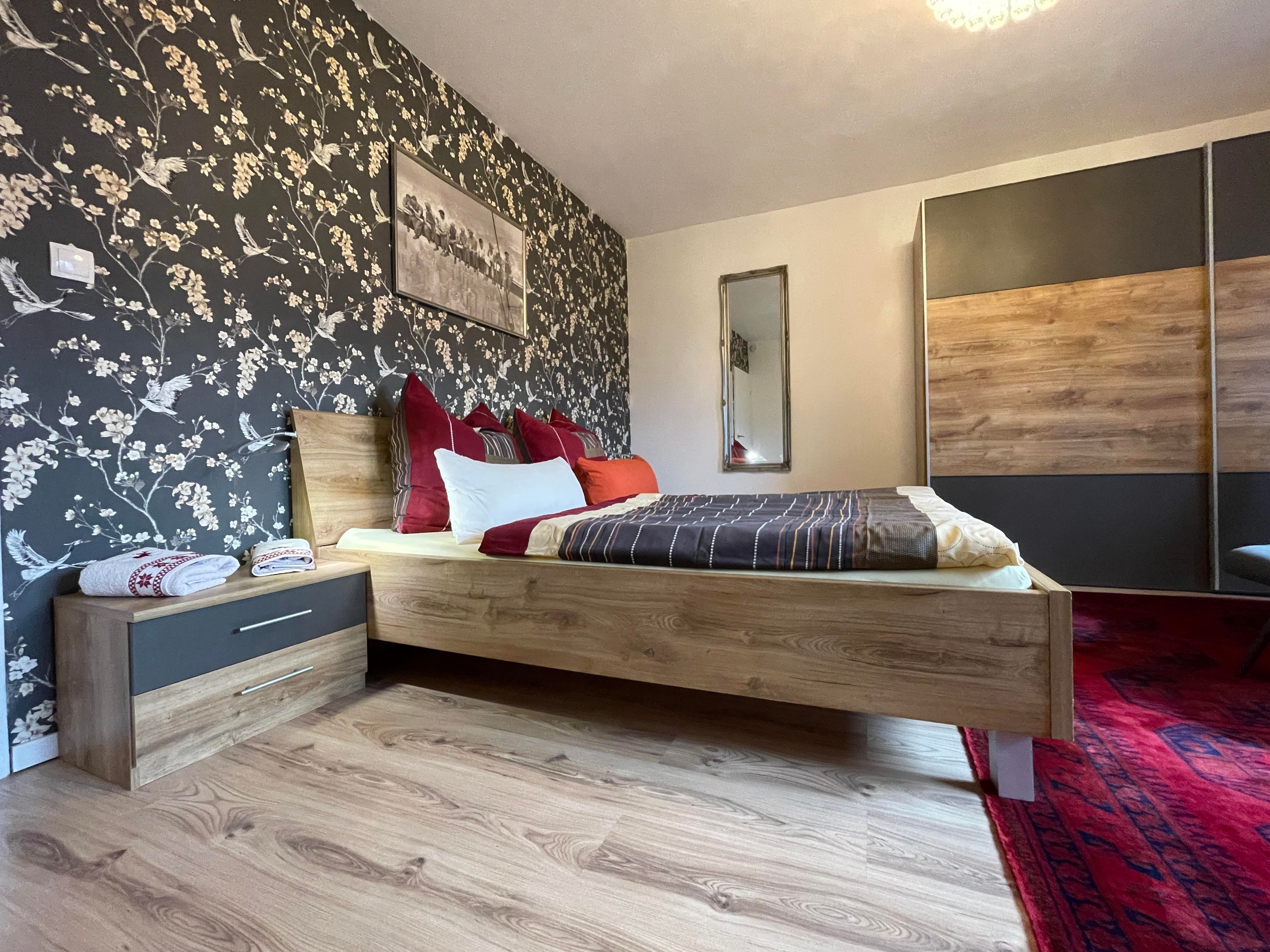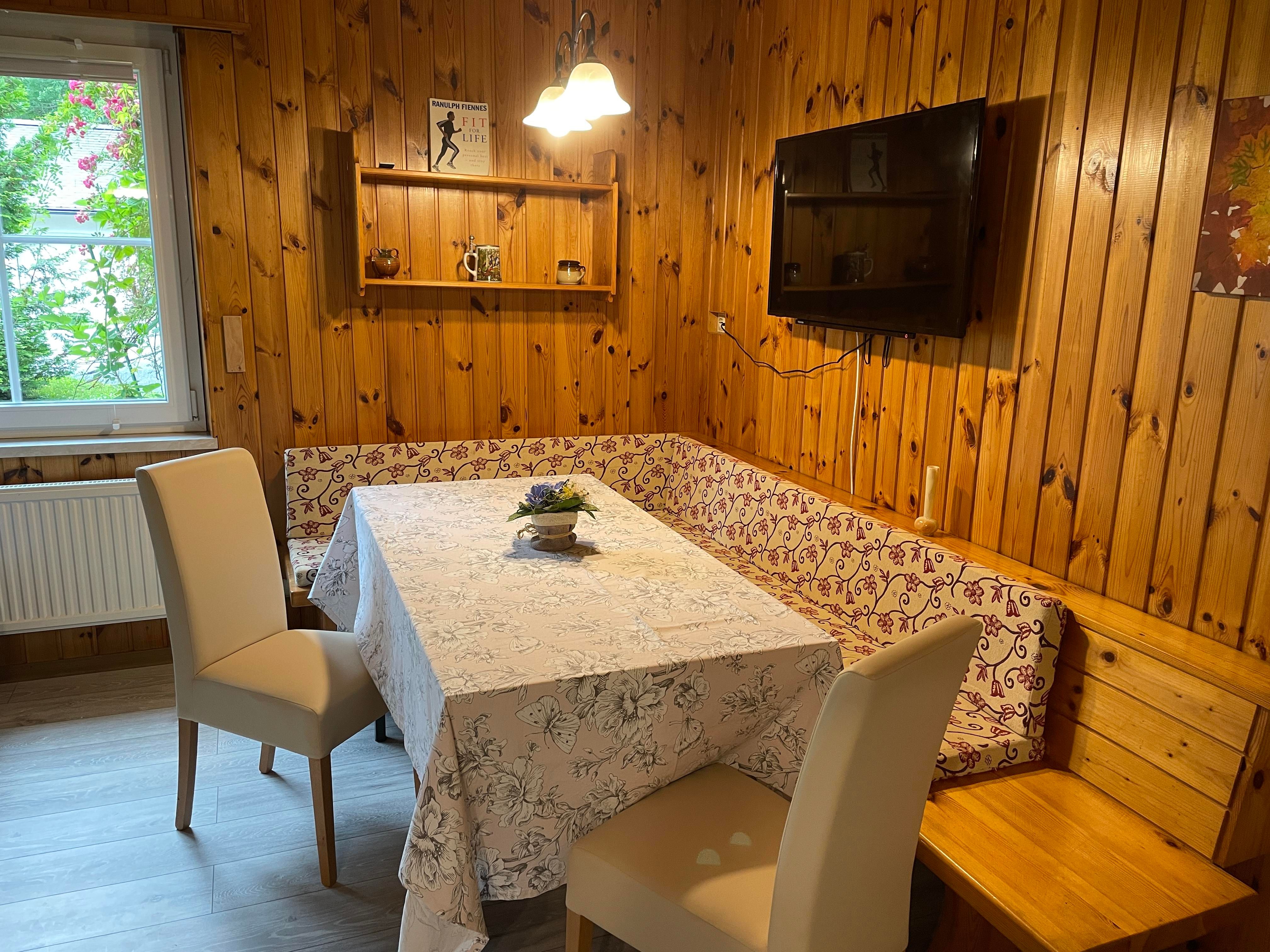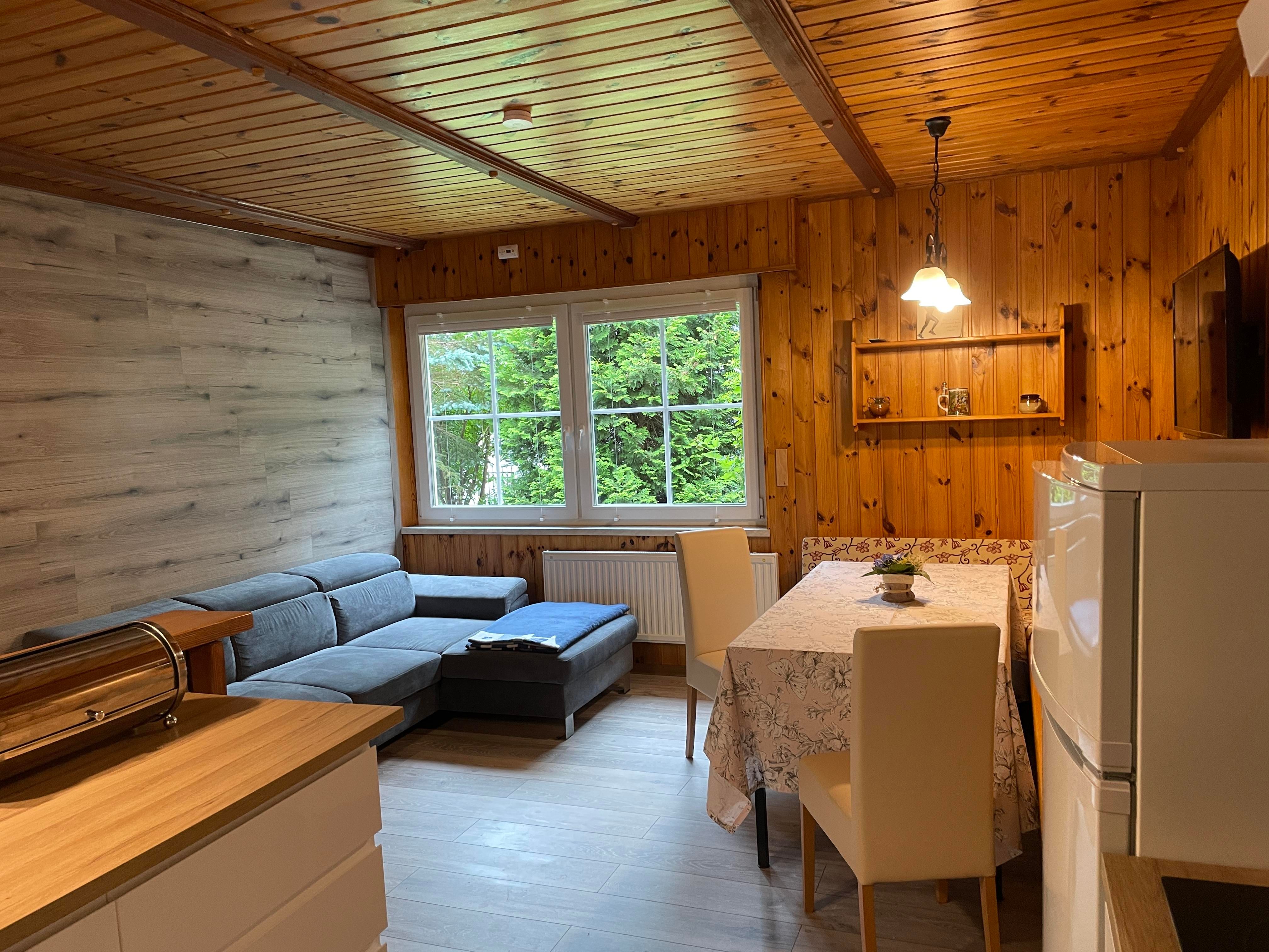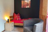 Appartement Wellington: es ist das unterste Appartement und verfügt über einen separaten Eingang. Es bietet zwei Schlafzimmer, ein Duschbad, einen Wohnraum mit Esstisch, Küchenzeile, Sofa, Fernseher und einen Holzofen. Die Küchenzeile ist voll ausgestattet mit Kühl-Gefrierkombination, Backofen, Toaster, Wasserkocher, Mikrowelle, Kaffeemaschine und Geschirrspüler. Durch den Wohnraum gelangt man in das zweite Schlafzimmer (zwei Einzelbetten) und von dort auf die Terrasse. Das Appartement ist zusätzlich zum separaten Eingang stufenlos durch den Ski- und Fahrradkeller zu erreichen. Es ist jedoch nicht behindertengerecht (steile Straße). Das gesamte Appartement ist mit Laminat/Fliesen ausgestattet.