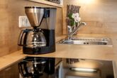 • Komplett ausgestattete Küche m. Ceranfeld, Backrohr, Kühlschrank m. kl. Gefrierfach, Geschirrspüler, Mikrowelle, Toaster