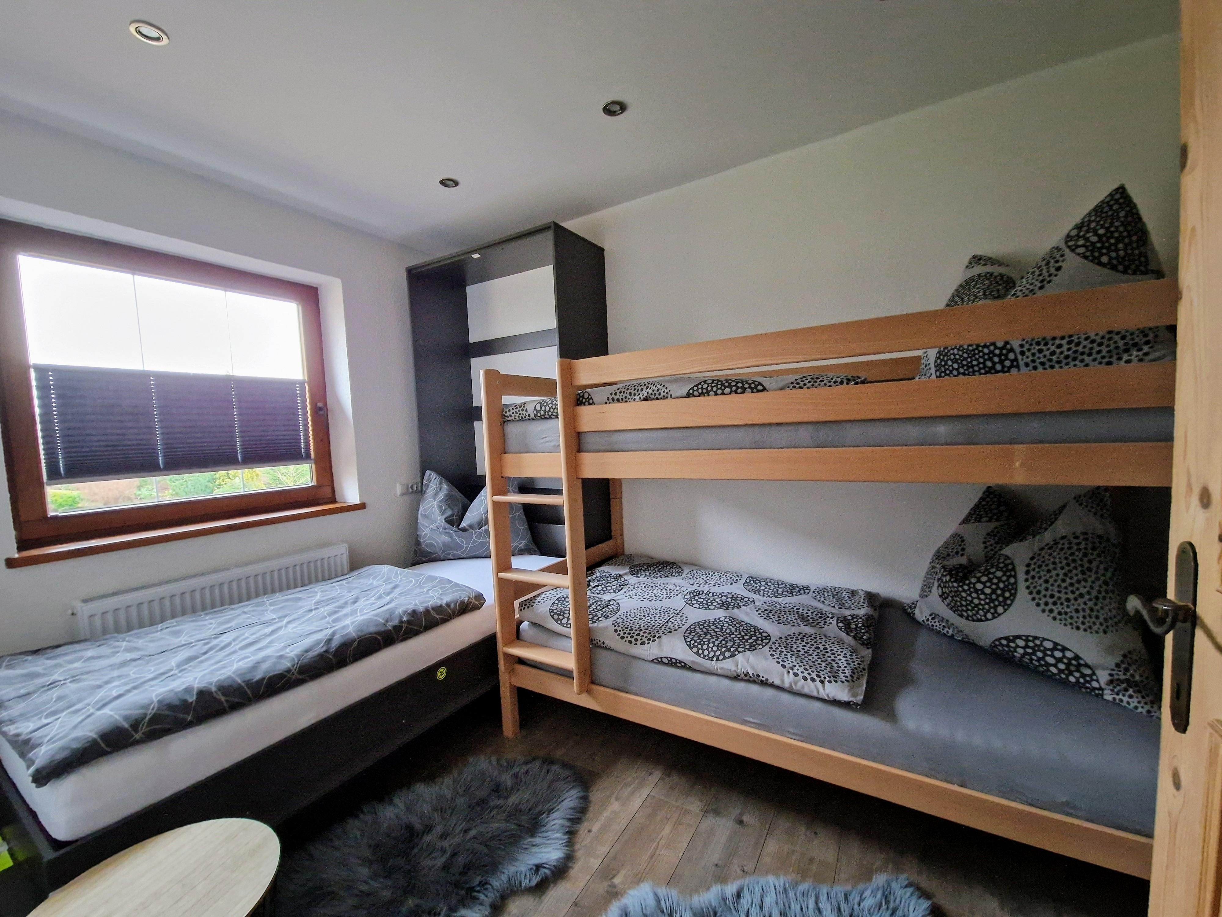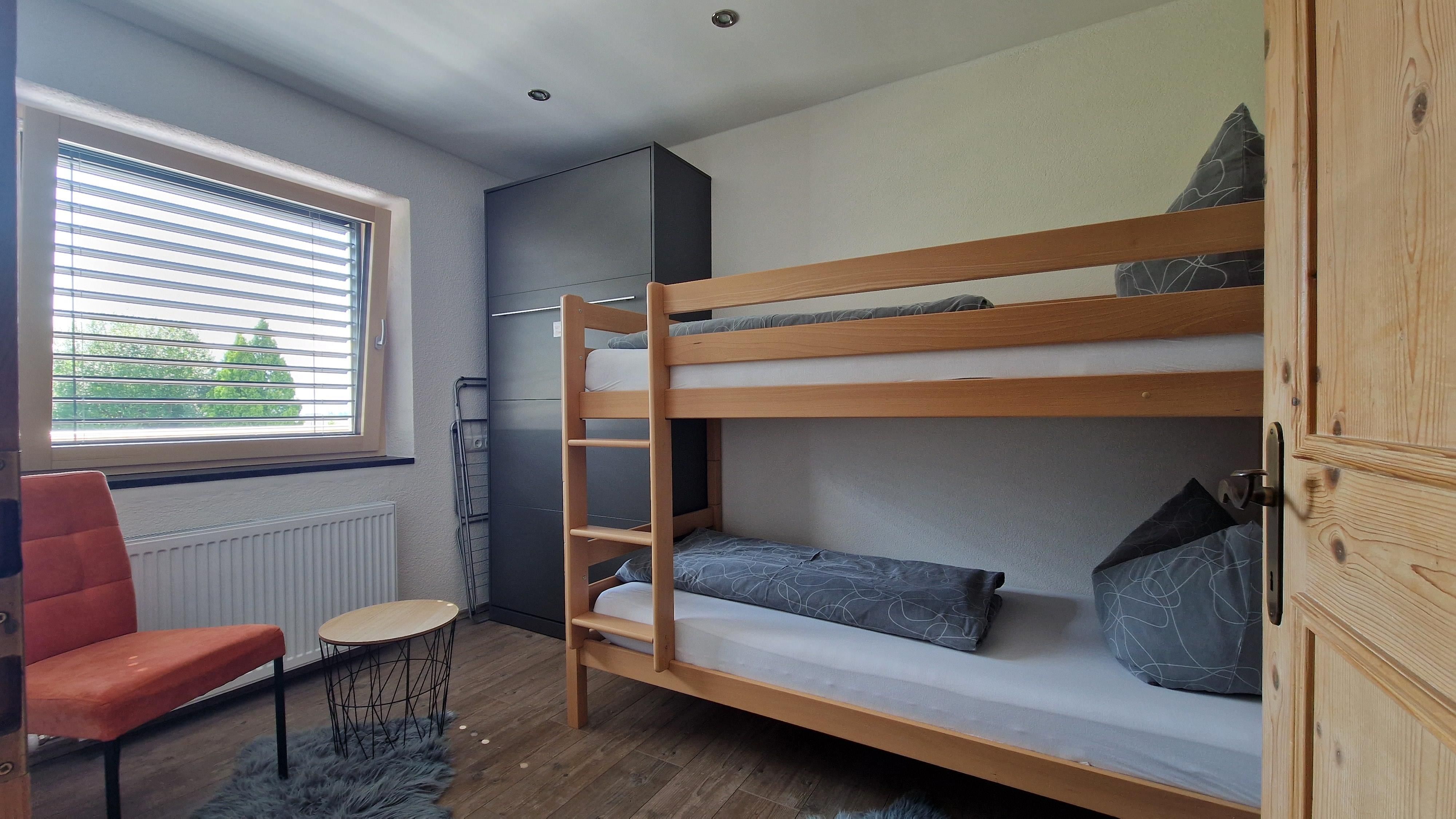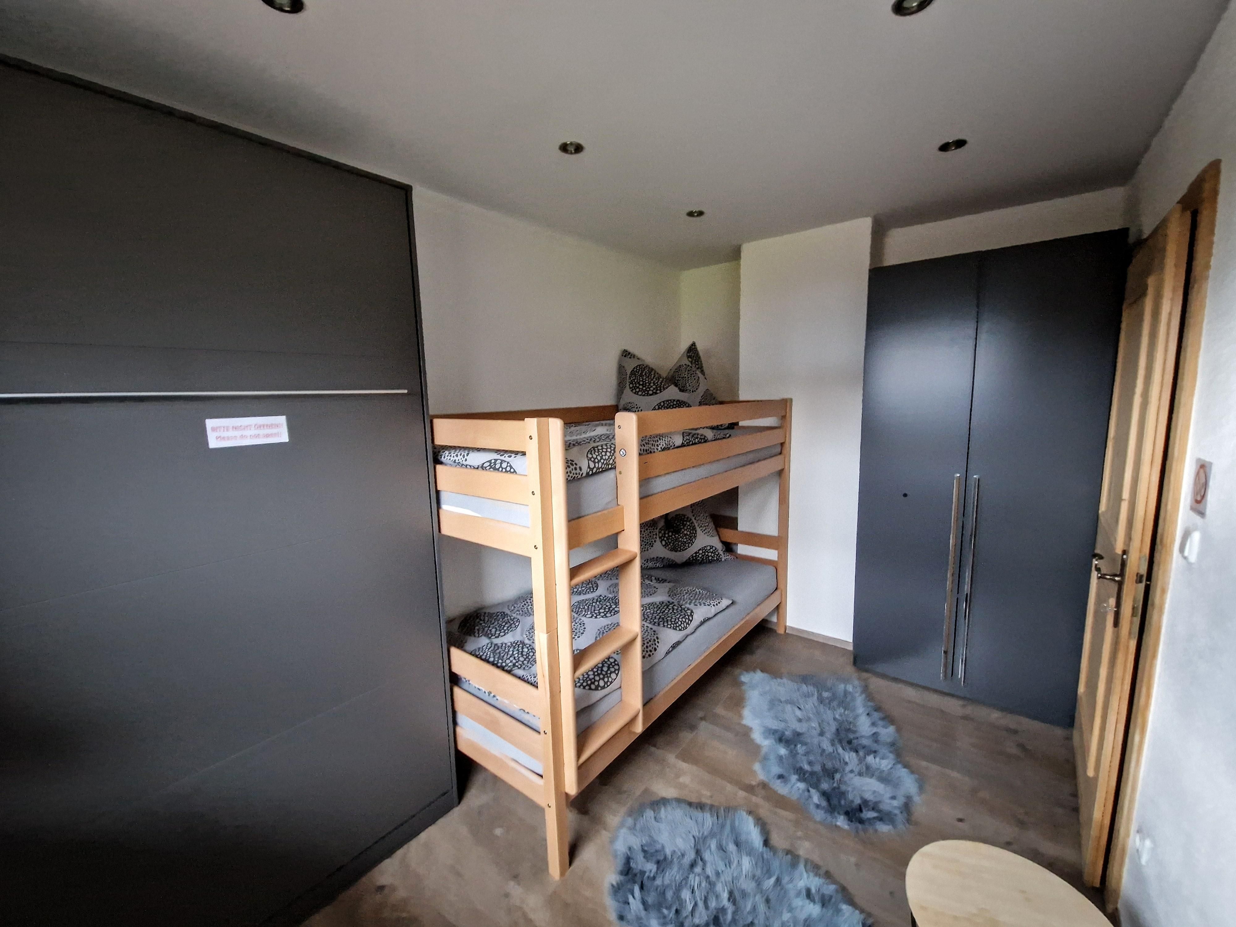 Die Wohnung umfasst großzügige 65m², dazu gehört ein Schlafzimmer mit Doppelbett, ein Seperates Kinderzimmer mit einem Hochbett und einem zusätzlichen Schrankbett, eine komplett ausgestattete Wohnküche mit einem ausziehbaren Schlafsofa sowie ein Badezimmer.