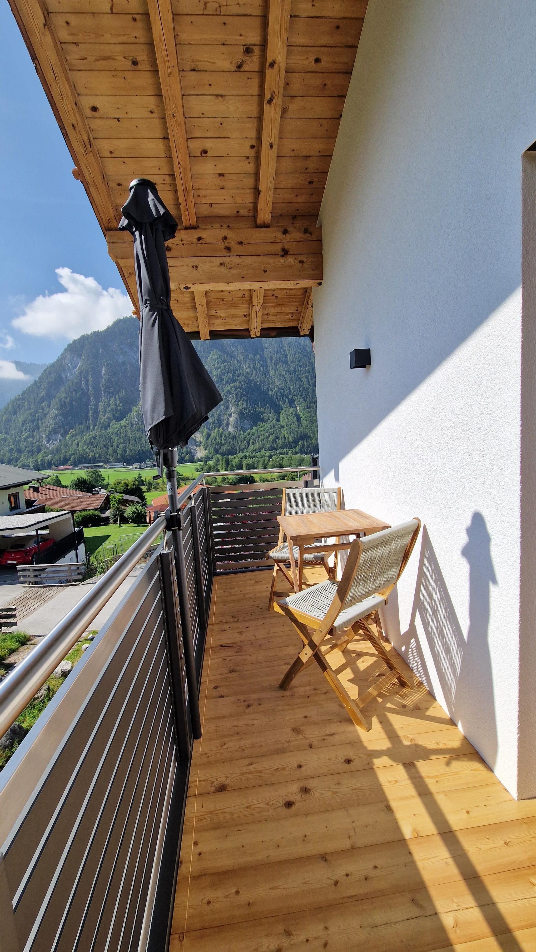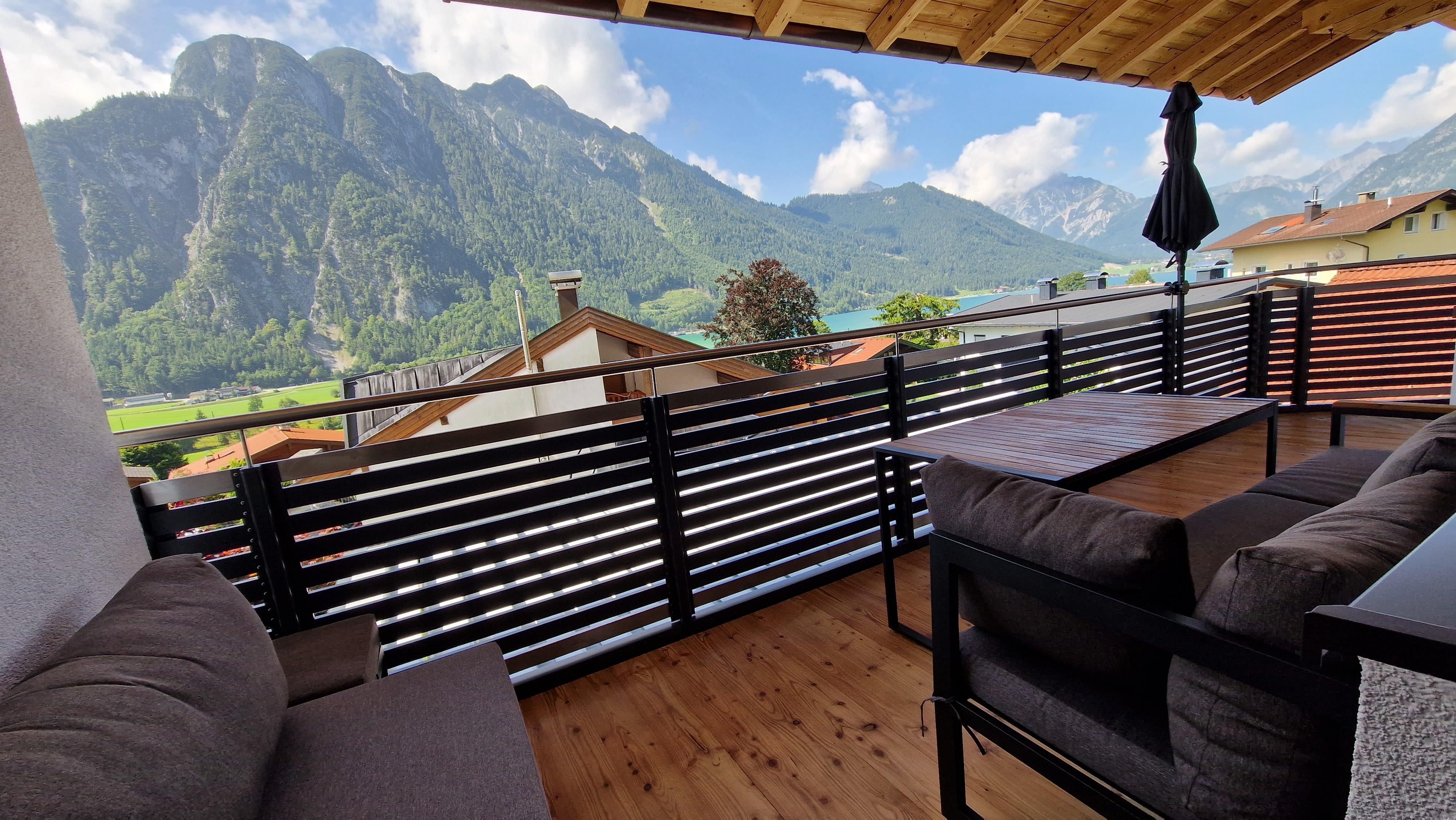Der großzügige Balkon mit Blick auf den wunderschönen Achensee, lädt zum Entspannen und Verweilen ein.